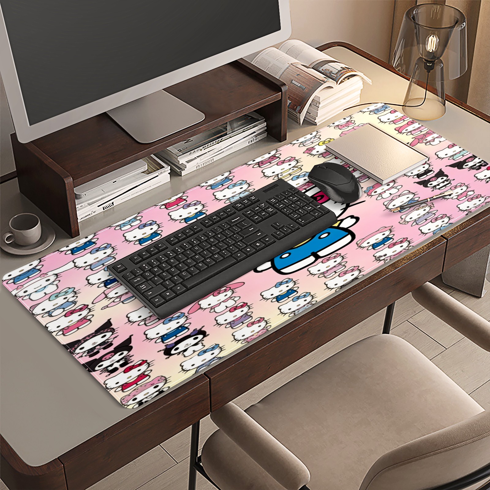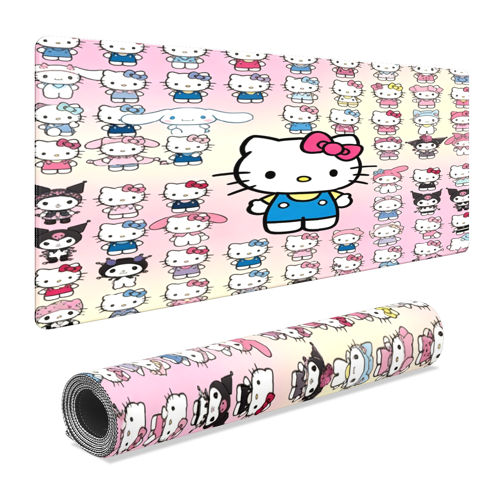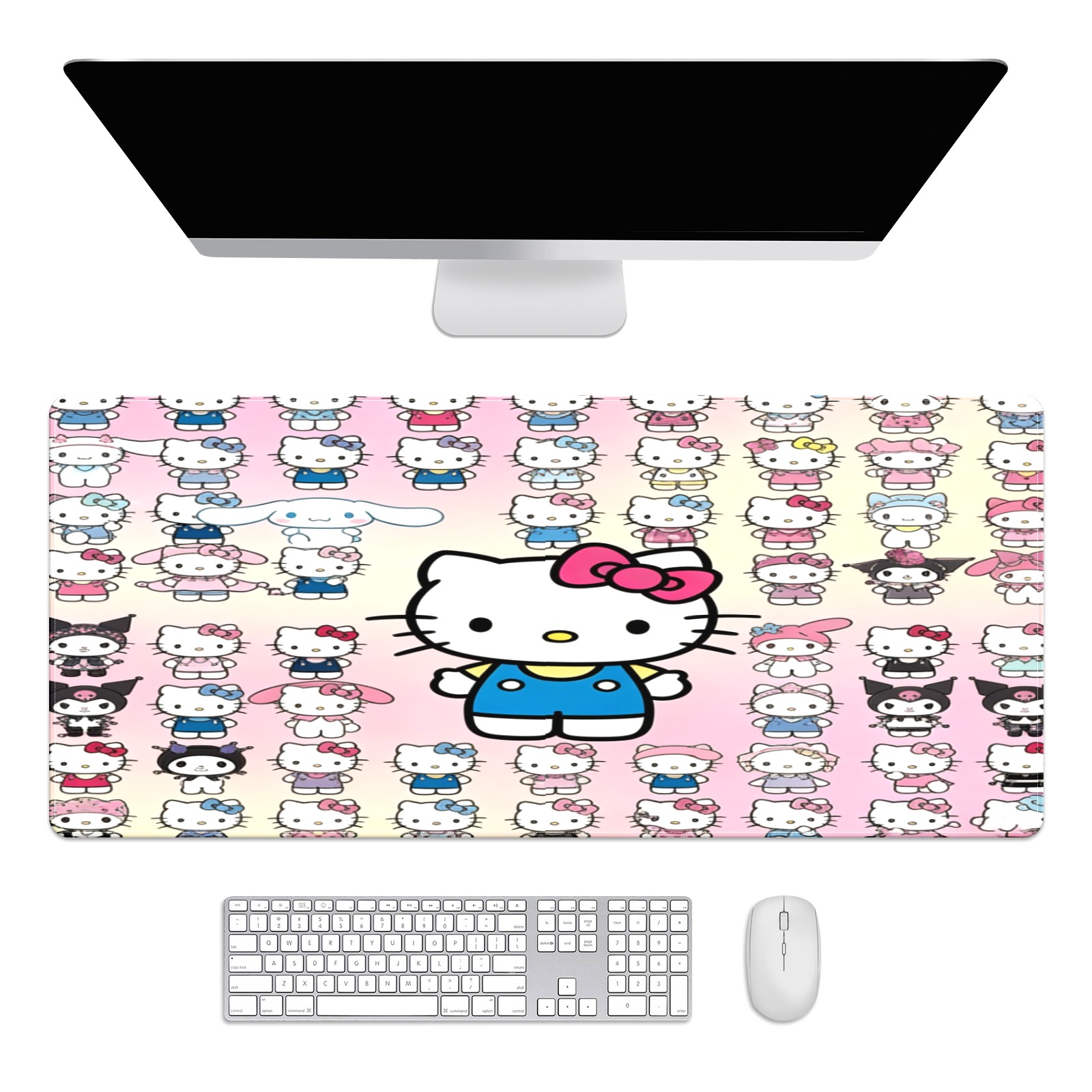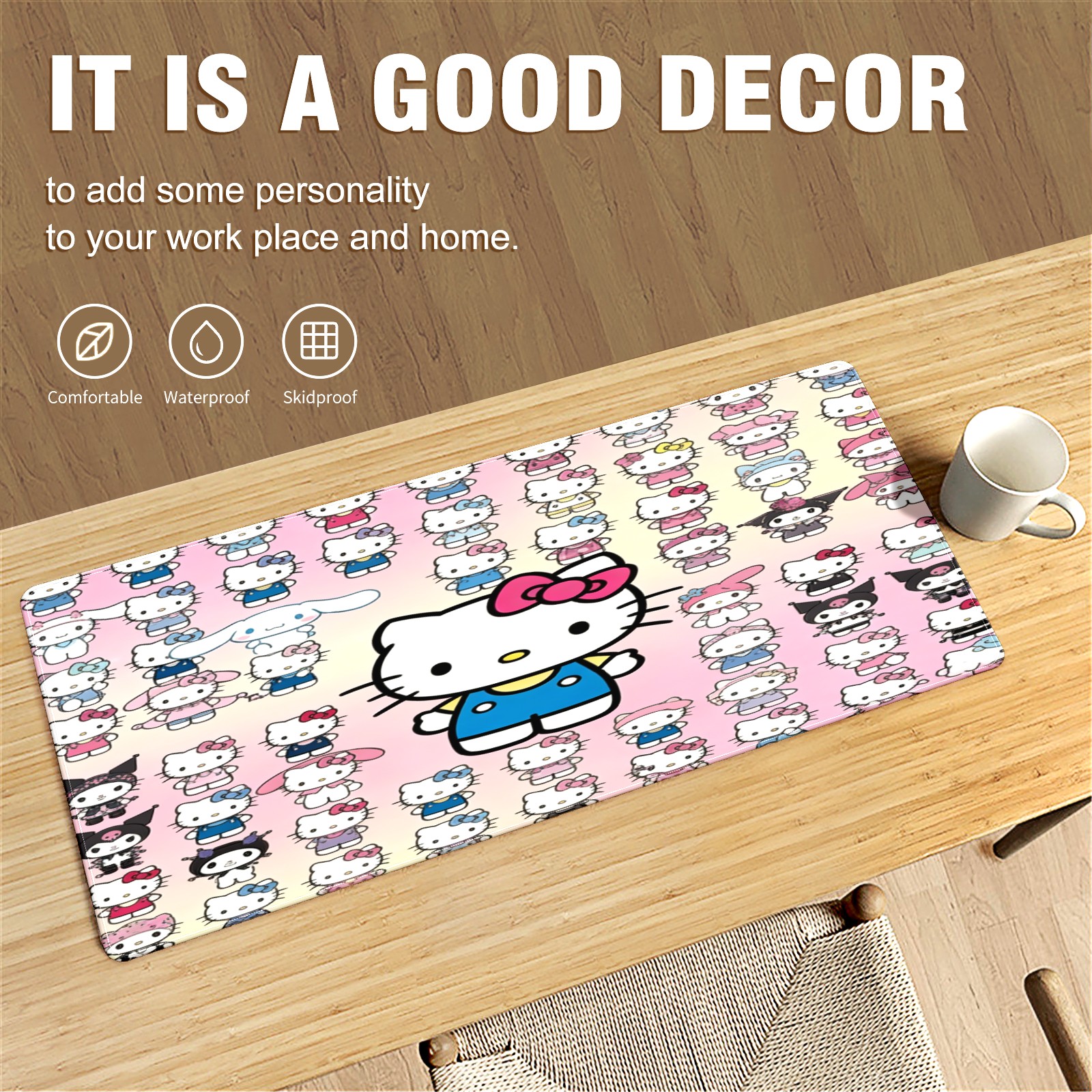 Large Gaming Mouse Pad (90x40cm), Extended Waterproof Desk Mat with Non-Slip Rubber Base, Hello Kitty Pink for Gamers, Office & Home