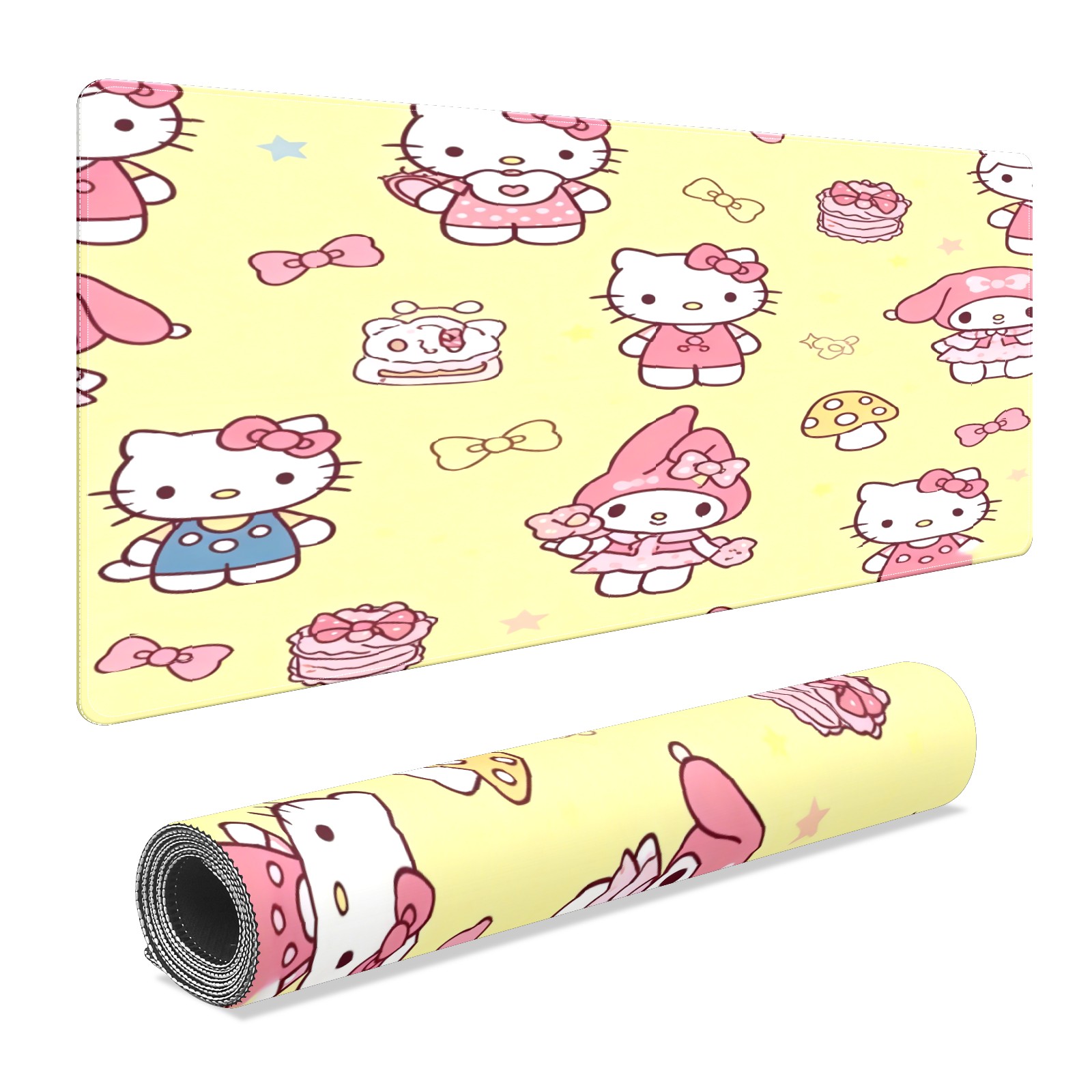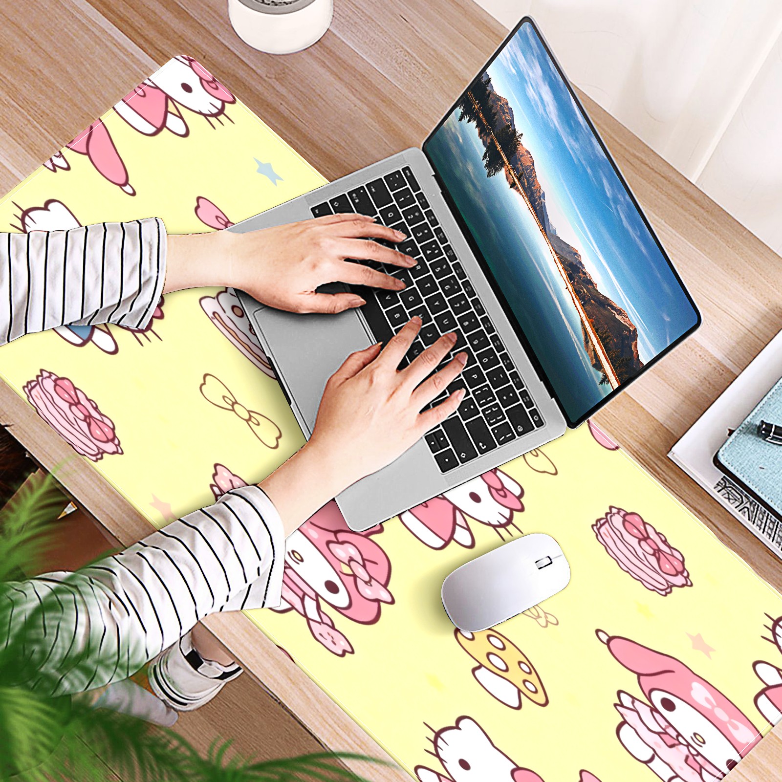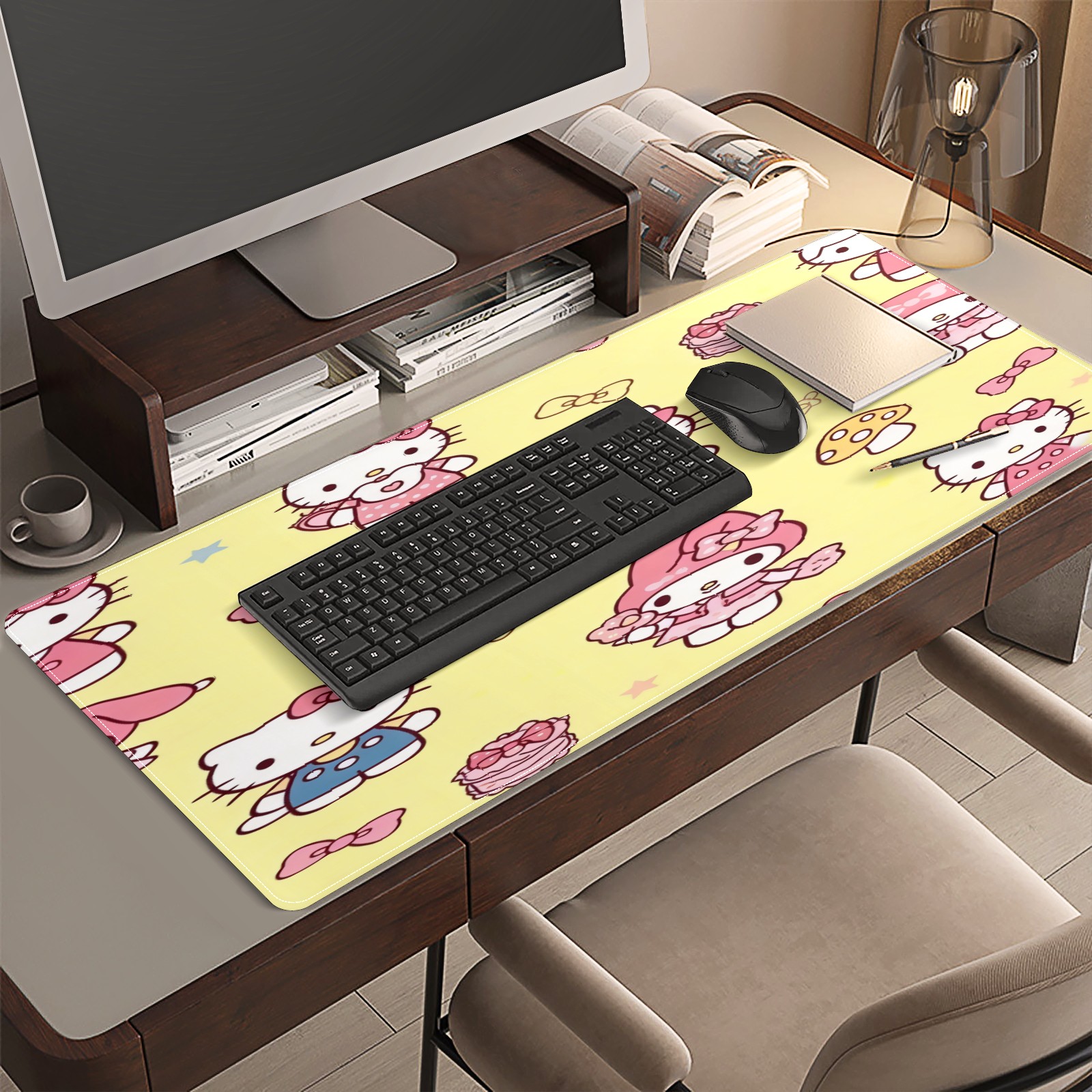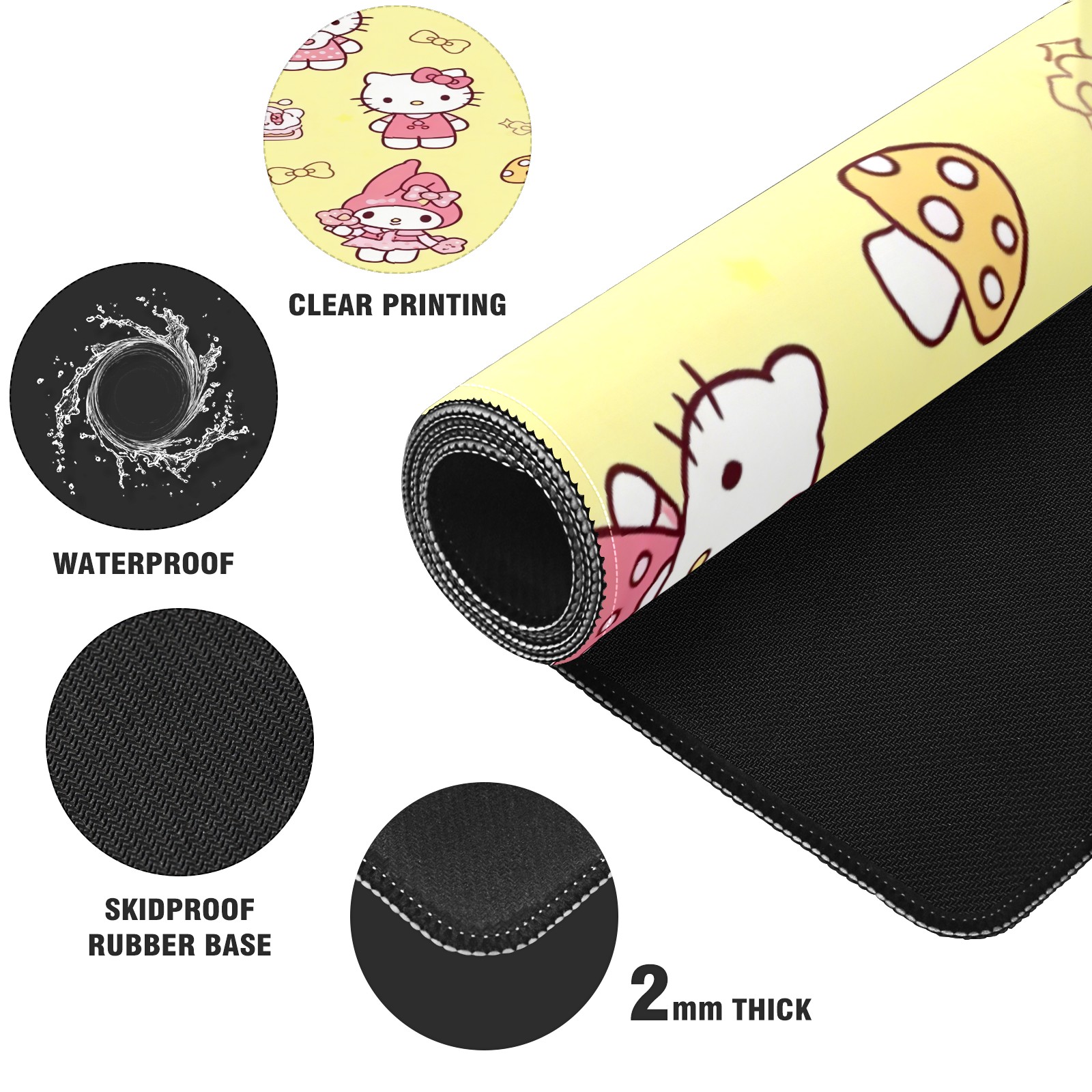 Large Gaming Mouse Pad (90x40cm), Extended Waterproof Desk Mat with Non-Slip Rubber Base, Bright Cat Yellow for Gamers, Office & Home