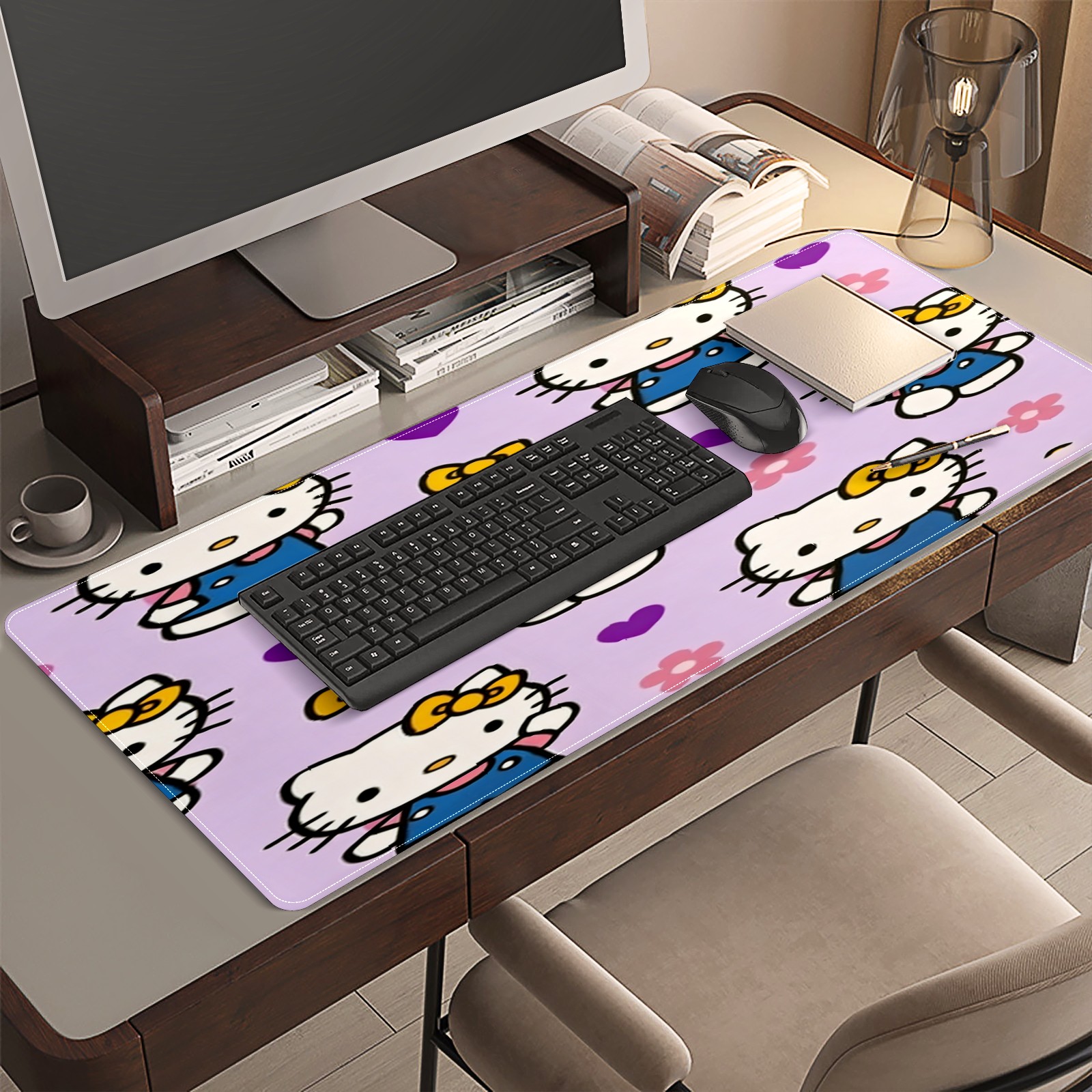 Large Gaming Mouse Pad (90x40cm), Extended Waterproof Desk Mat with Non-Slip Rubber Base, Elegant Cat Purple for Gamers, Office & Home