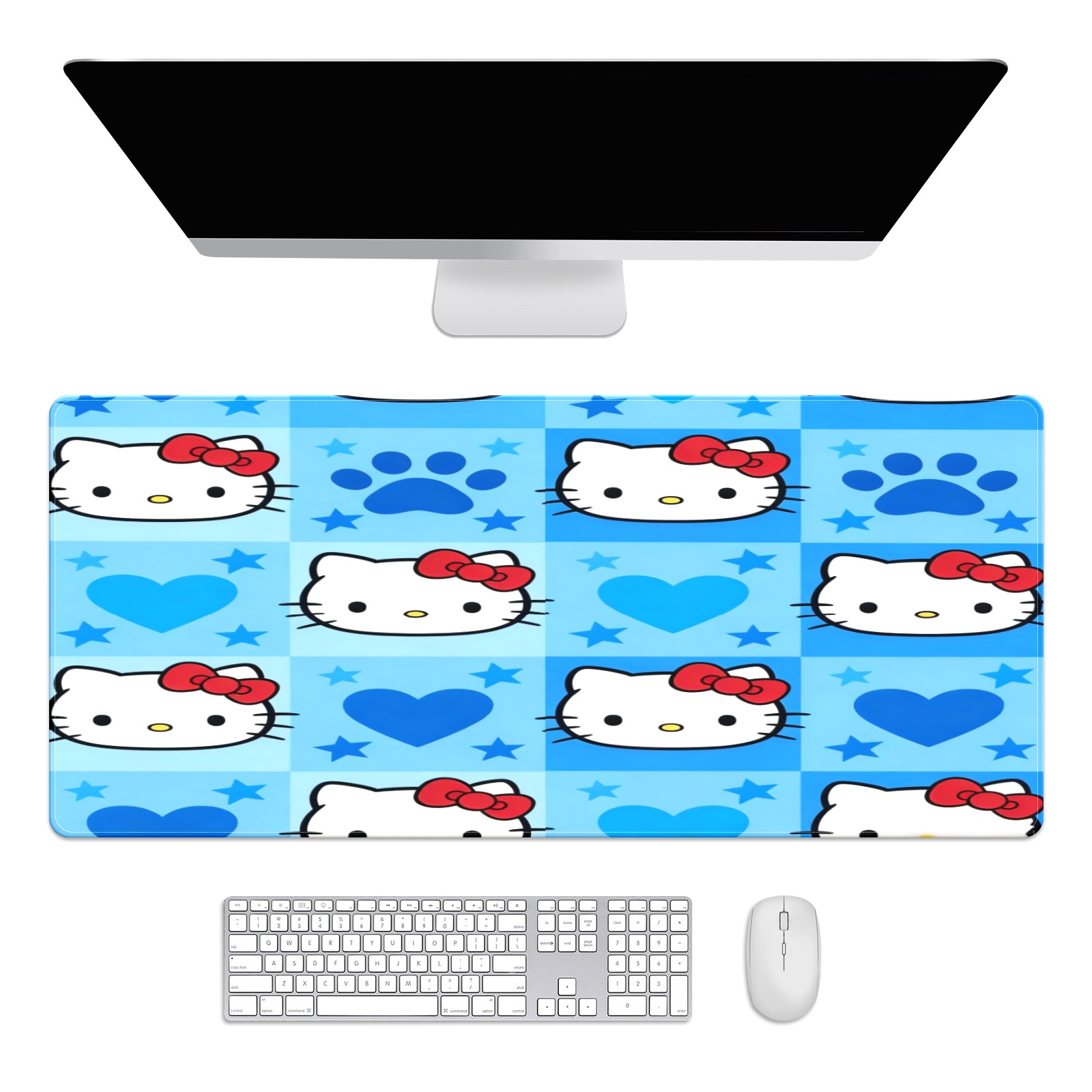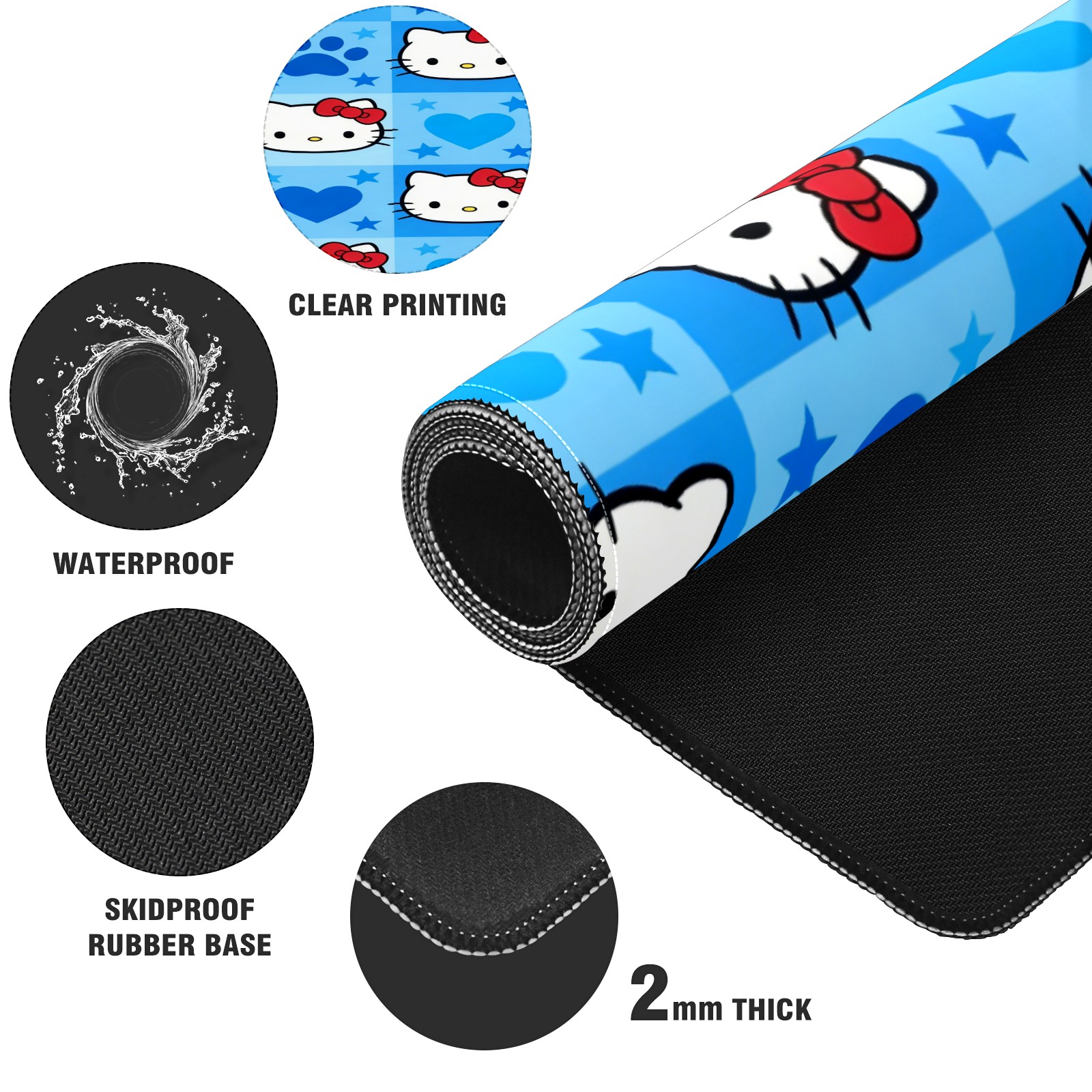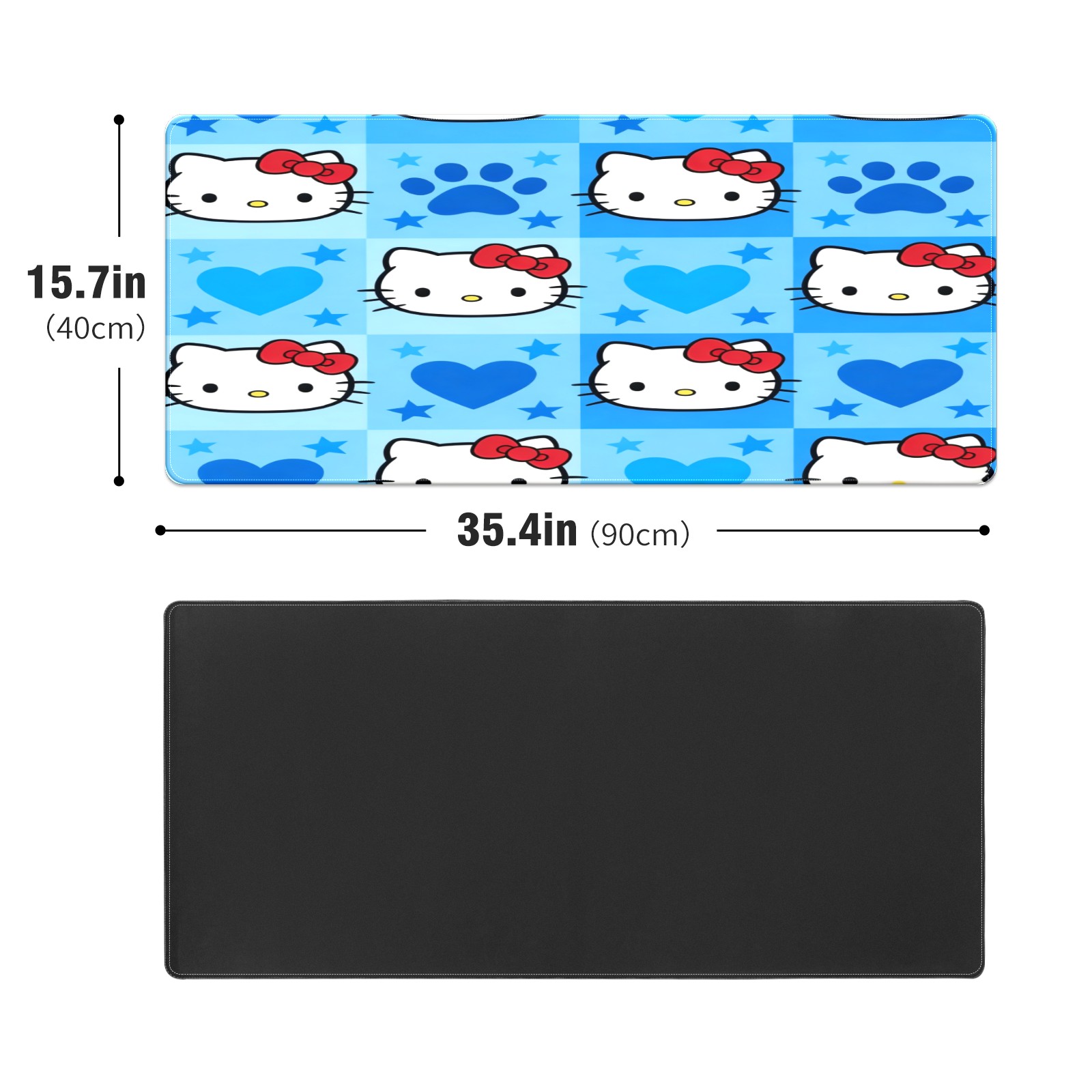 Large Gaming Mouse Pad (90x40cm), Extended Waterproof Desk Mat with Non-Slip Rubber Base, Dynamic Hello Kitty Blue for Gamers, Office & Home