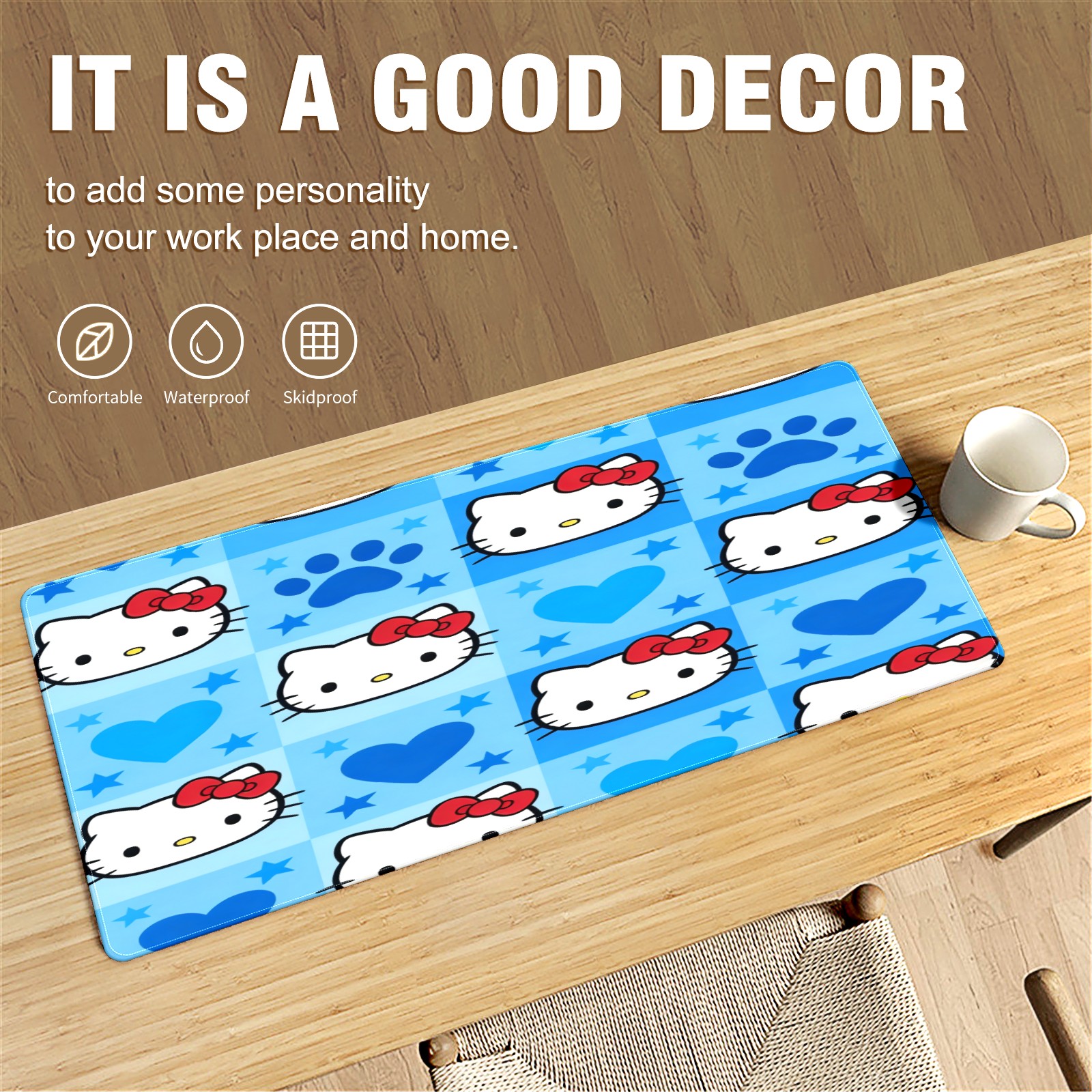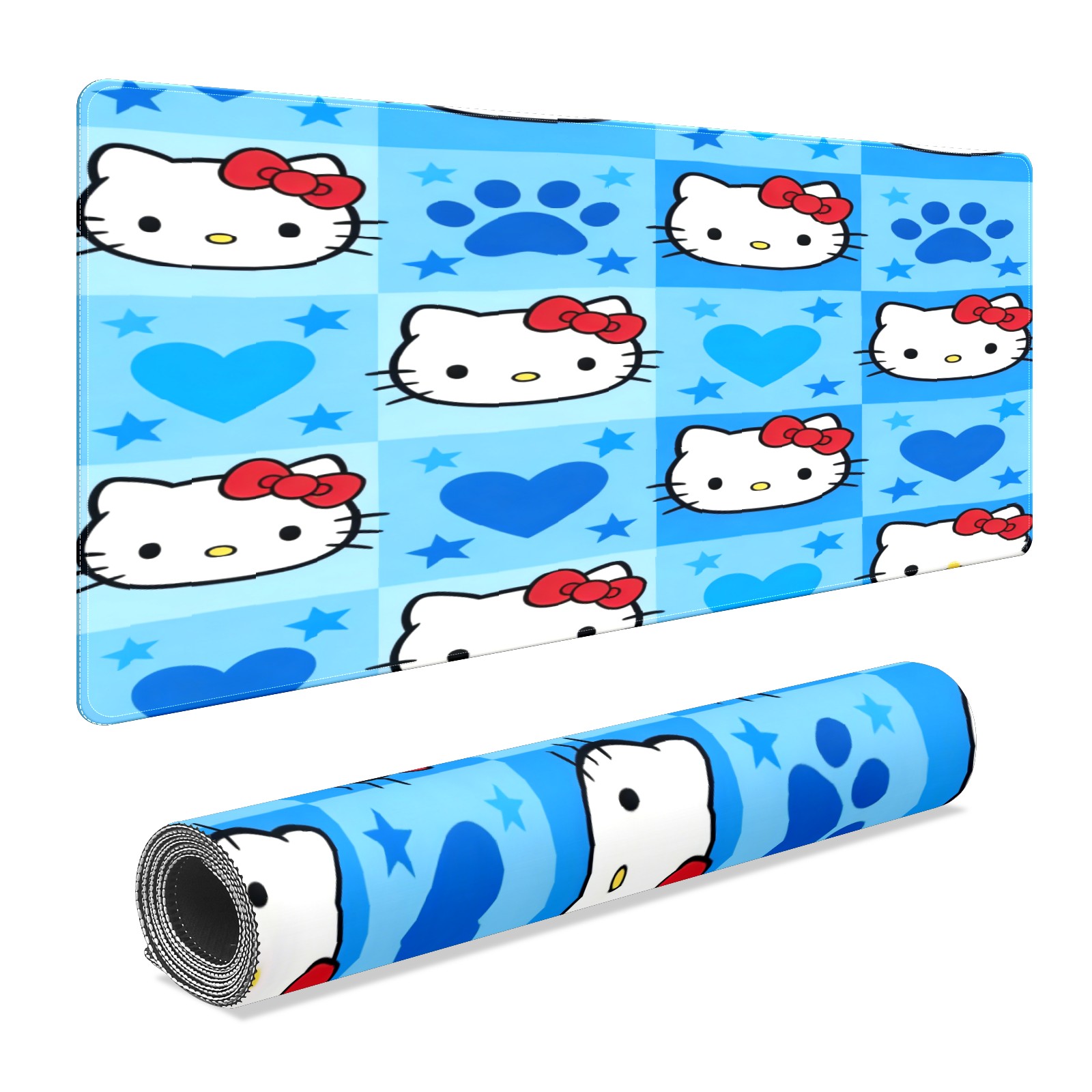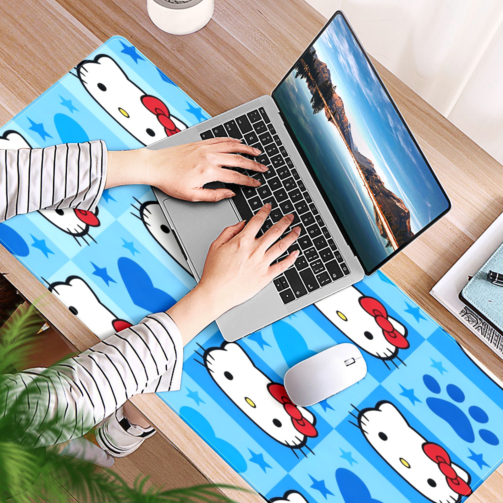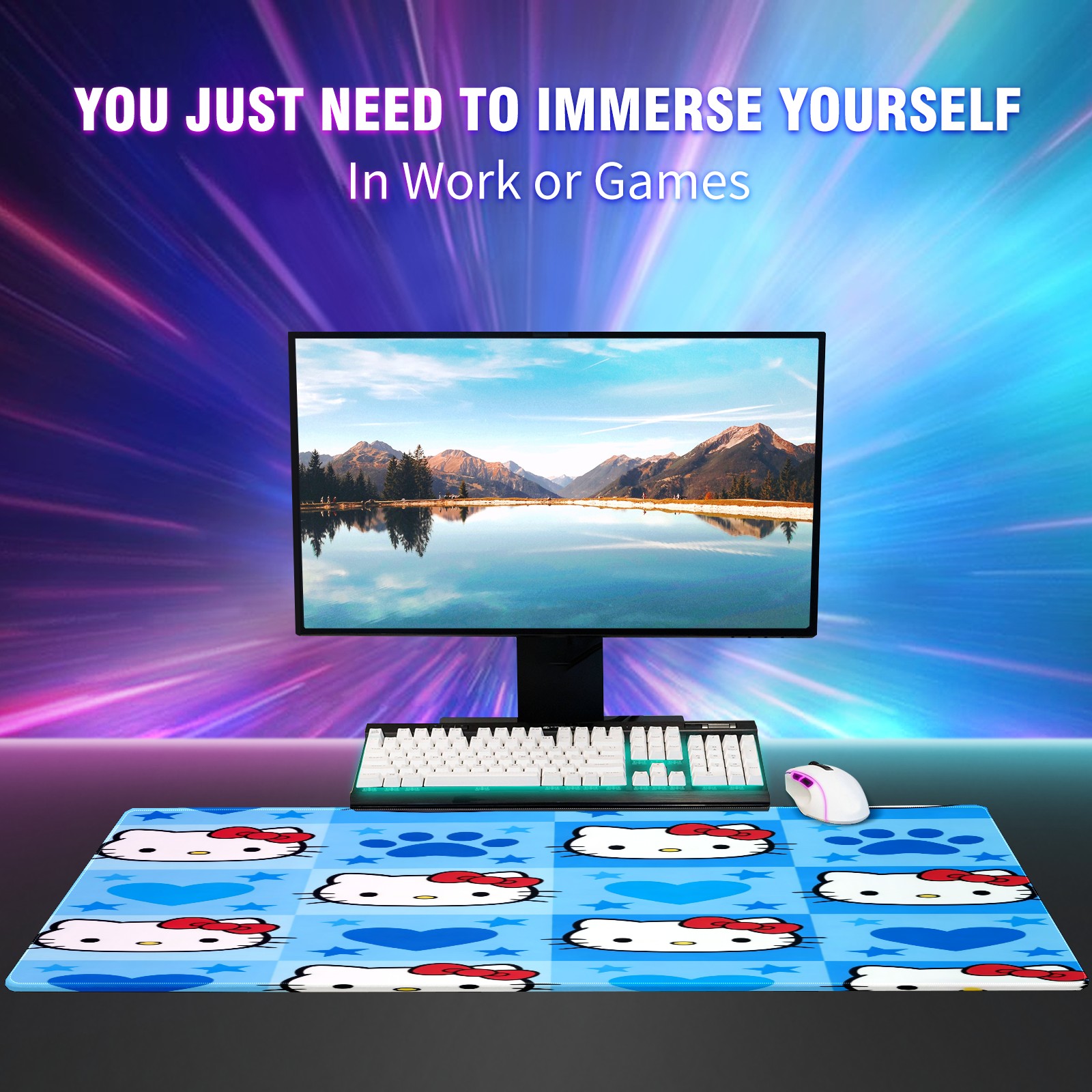 Large Gaming Mouse Pad (90x40cm), Extended Waterproof Desk Mat with Non-Slip Rubber Base, Dynamic Hello Kitty Blue for Gamers, Office & Home