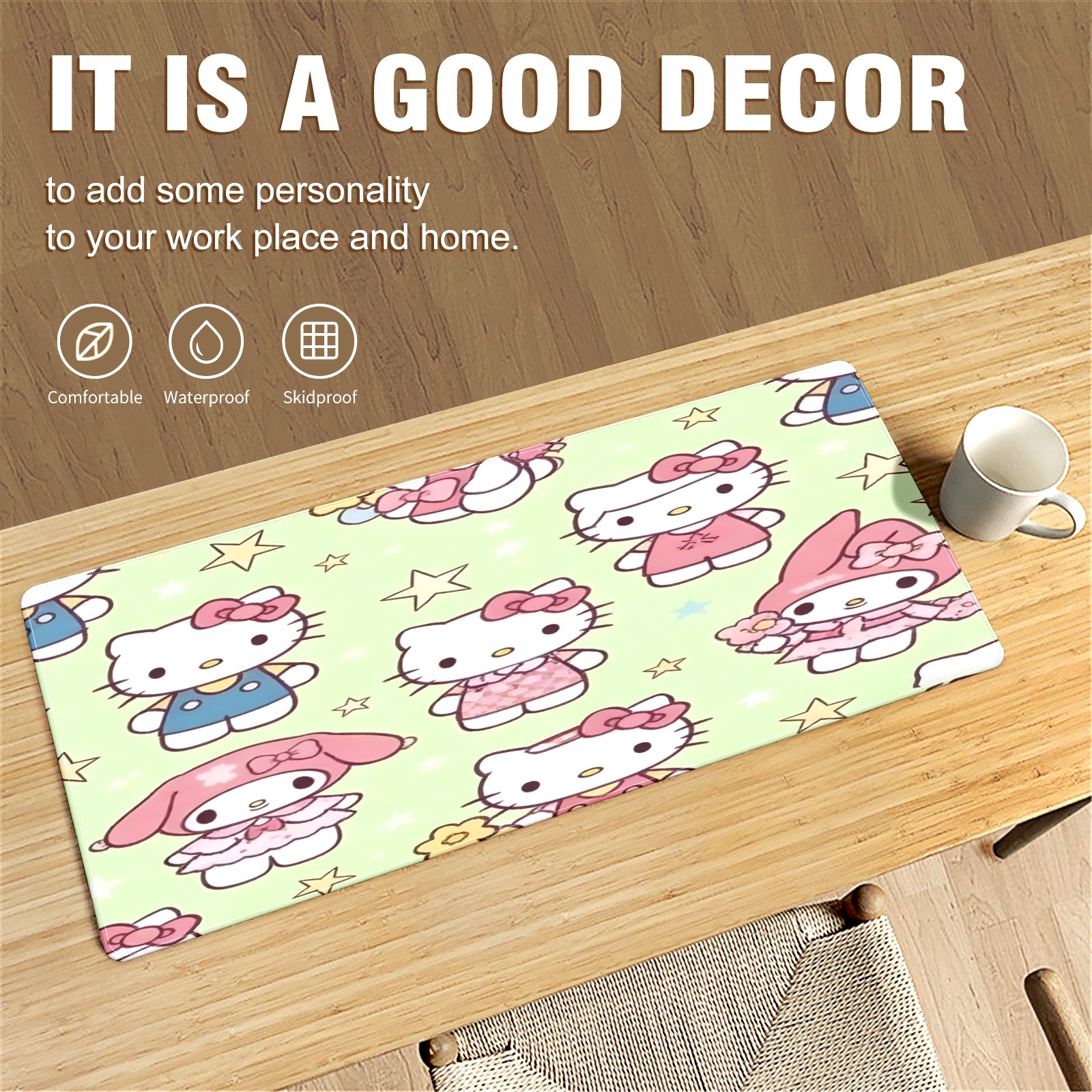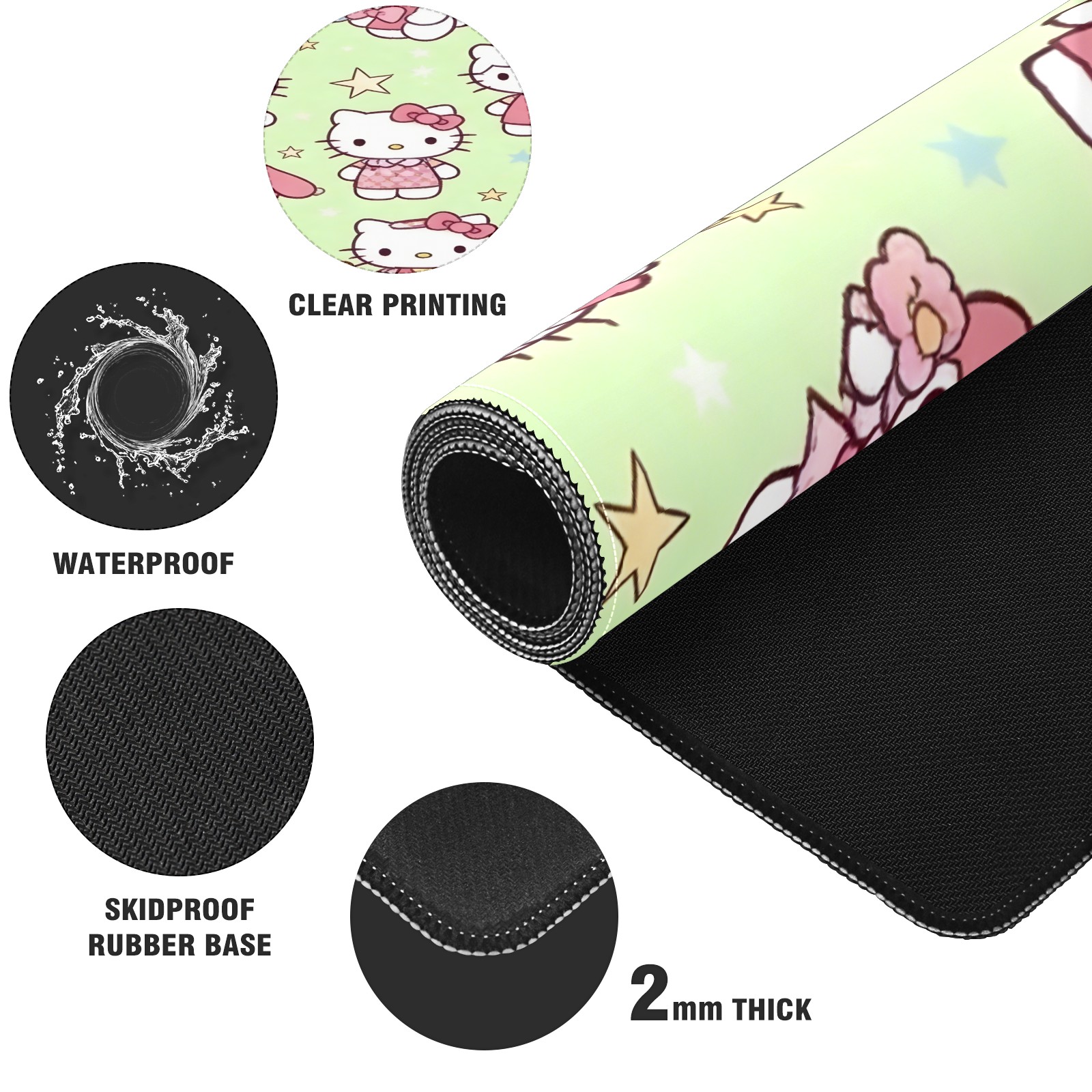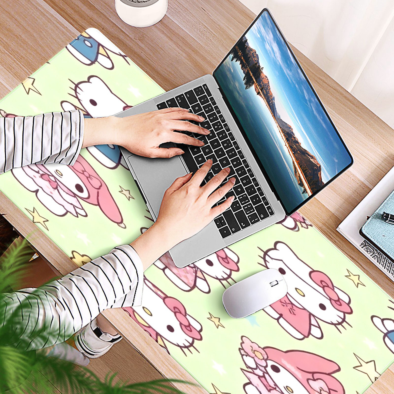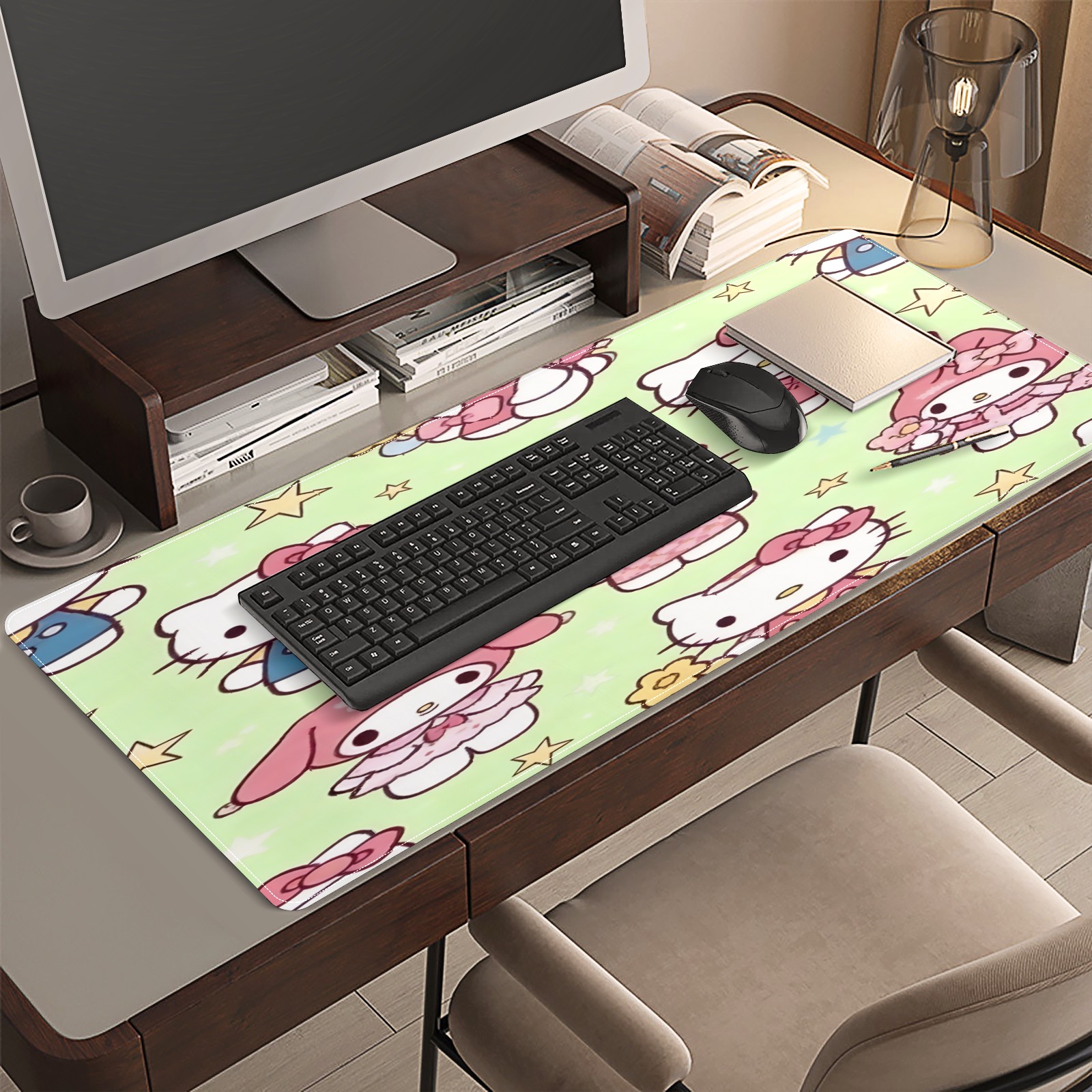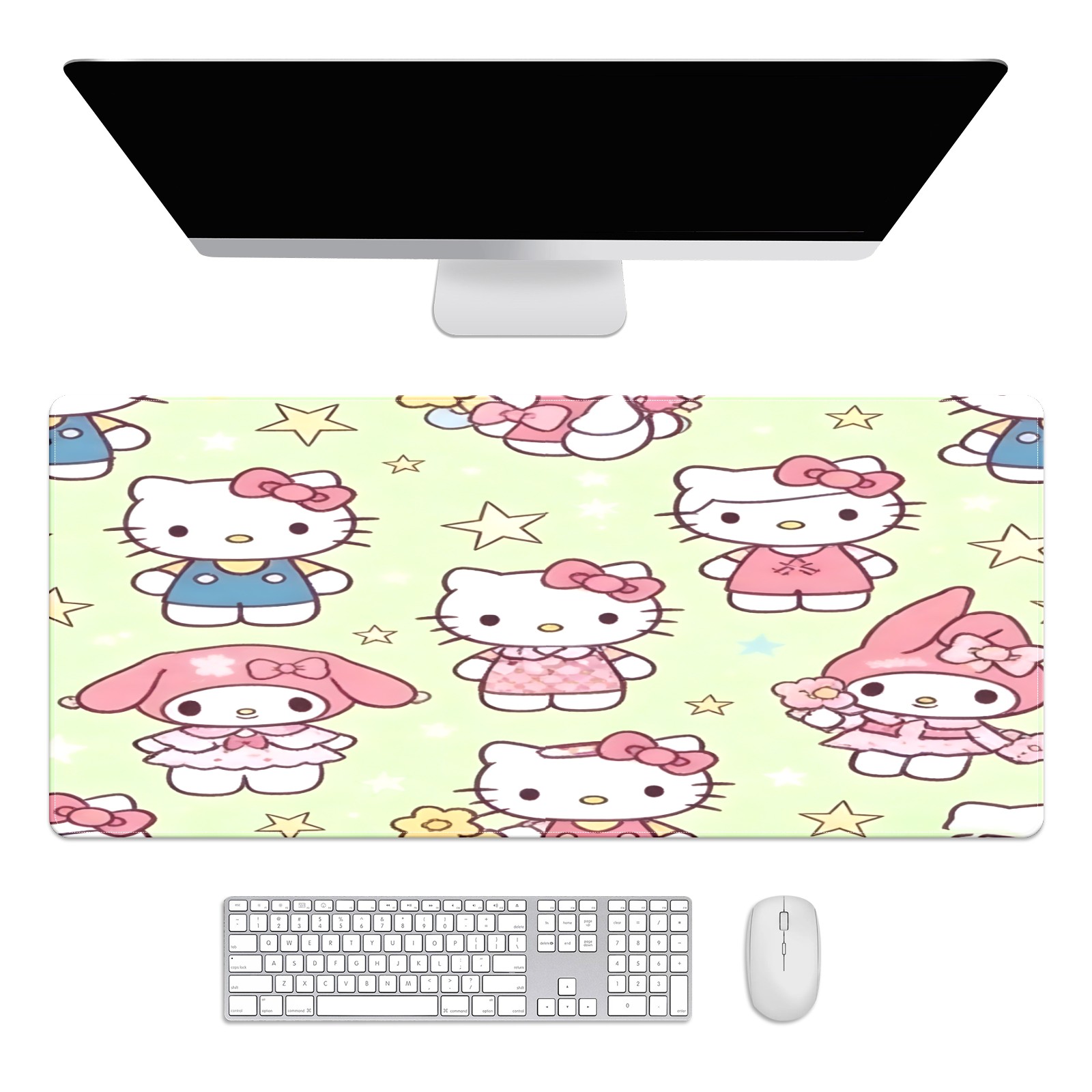 Large Gaming Mouse Pad (90x40cm), Extended Waterproof Desk Mat with Non-Slip Rubber Base, Sweet Cat Pink for Gamers, Office & Home