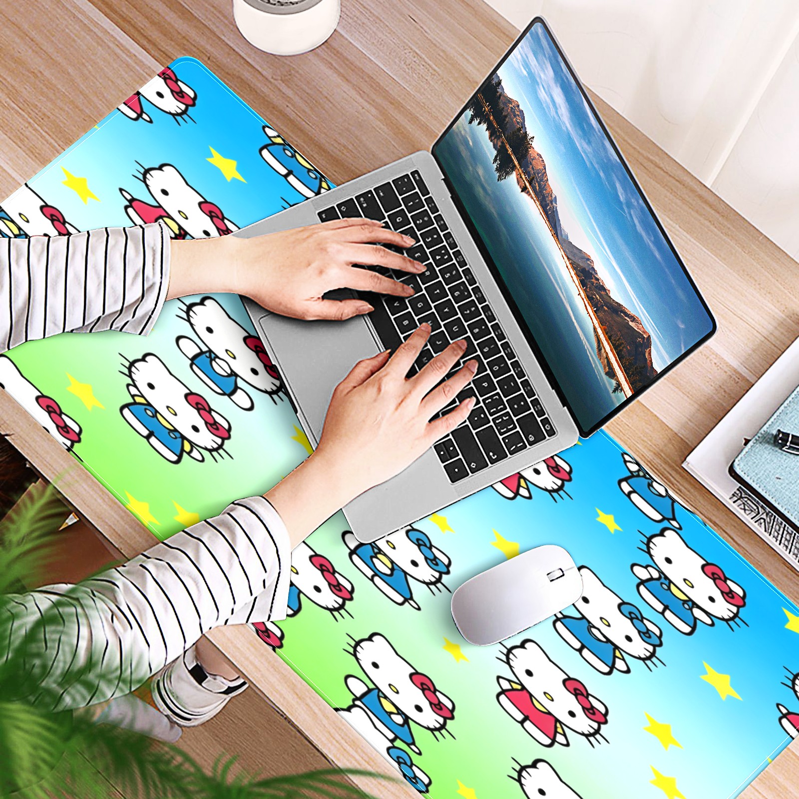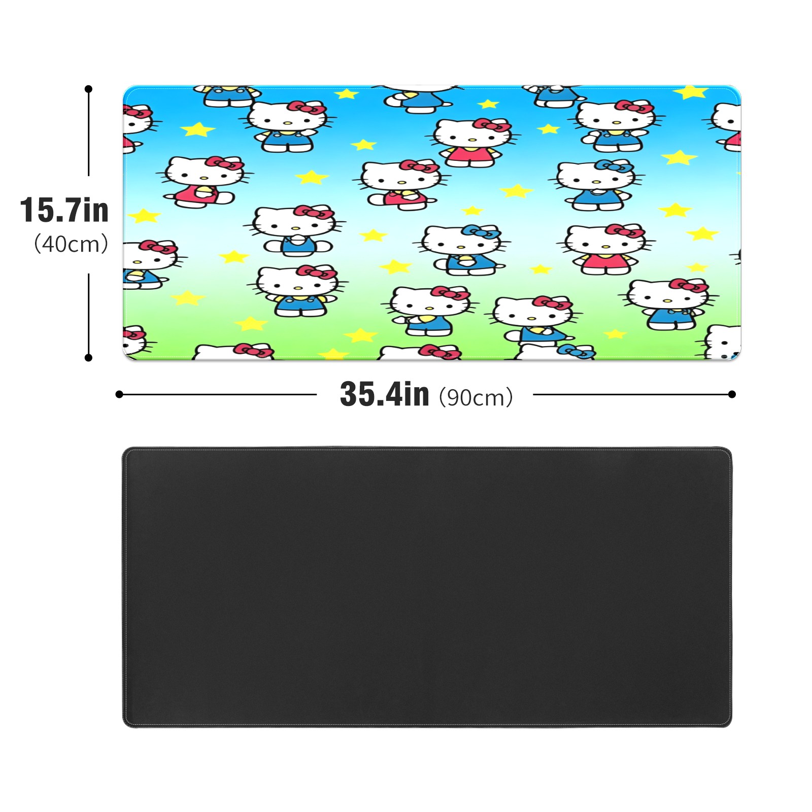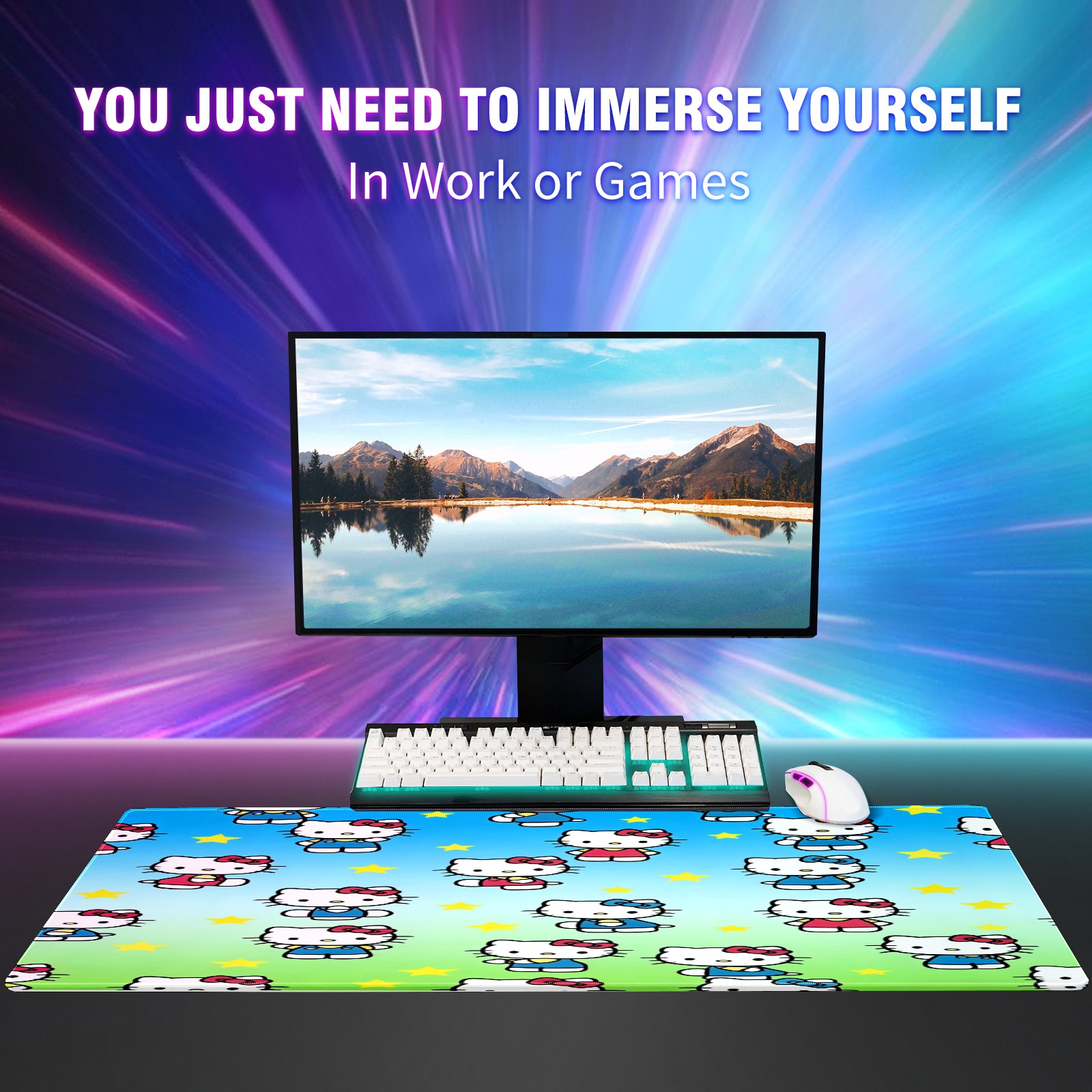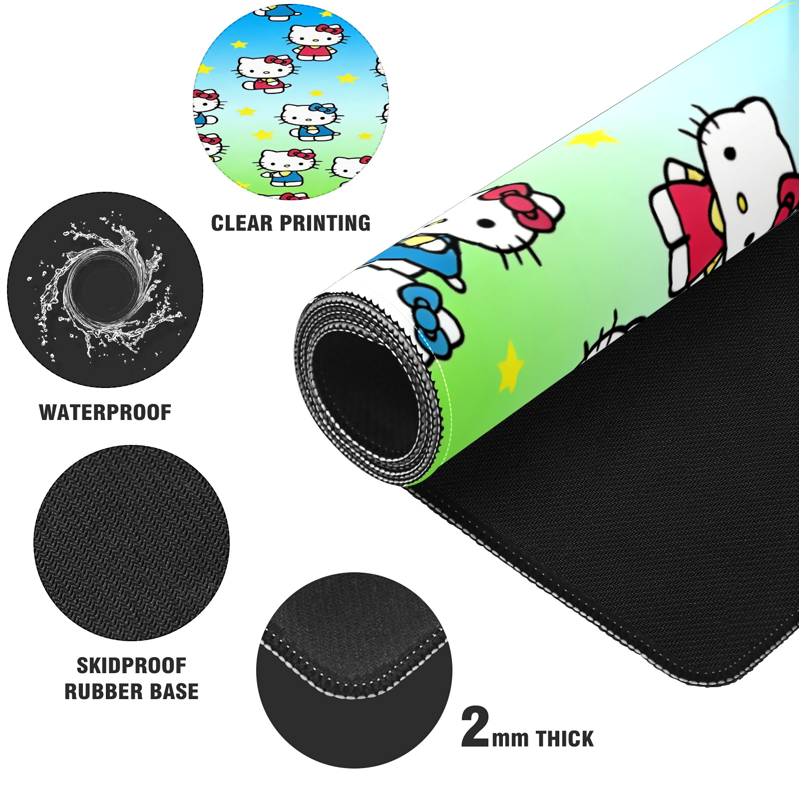 Large Gaming Mouse Pad (90x40cm), Extended Waterproof Desk Mat with Non-Slip Rubber Base, Hello Kitty Green for Gamers, Office & Home