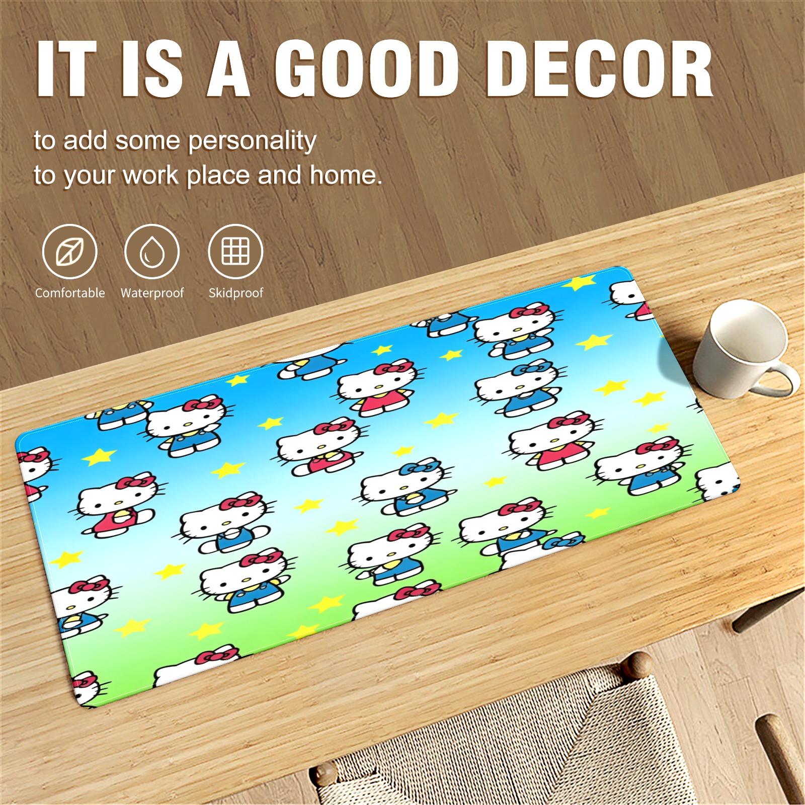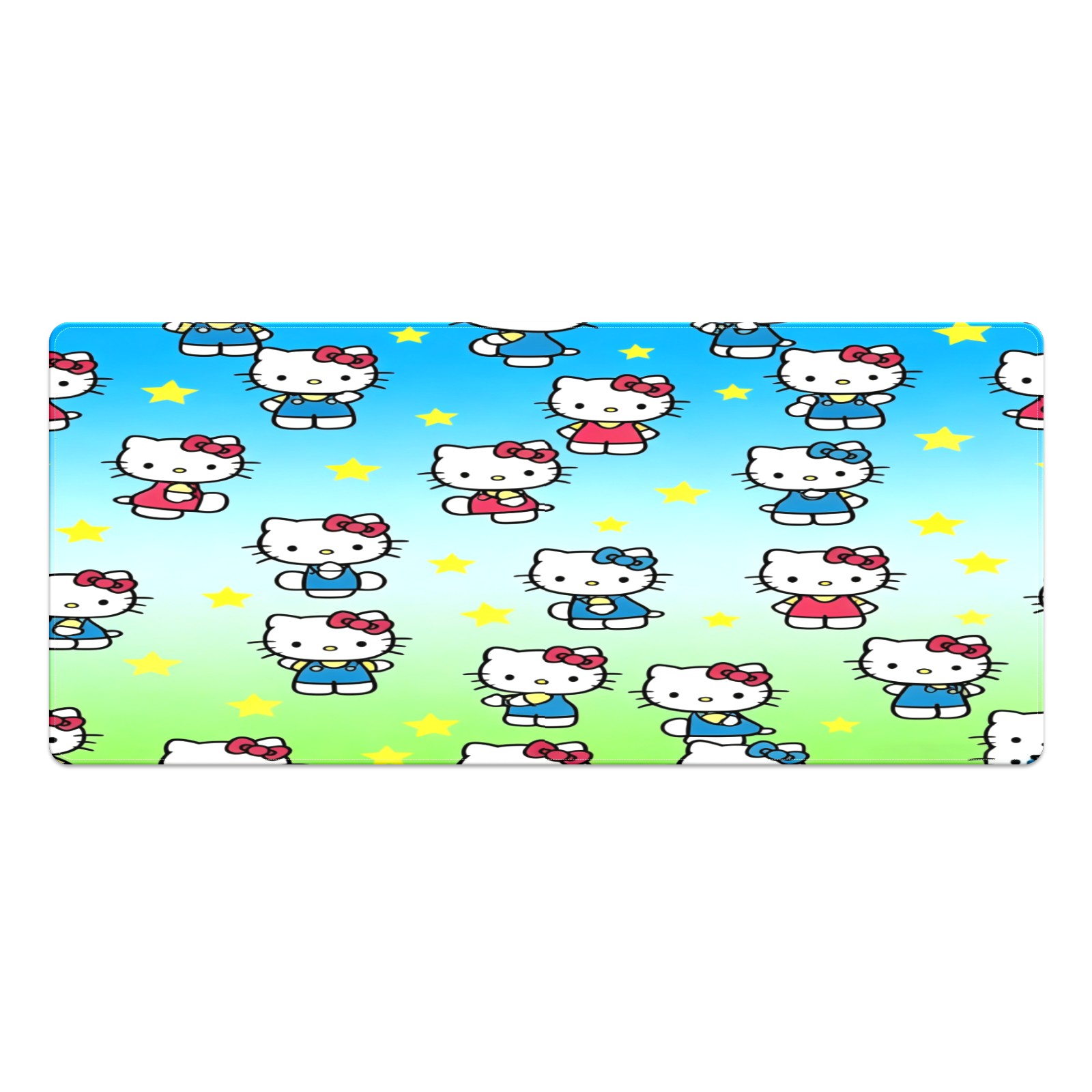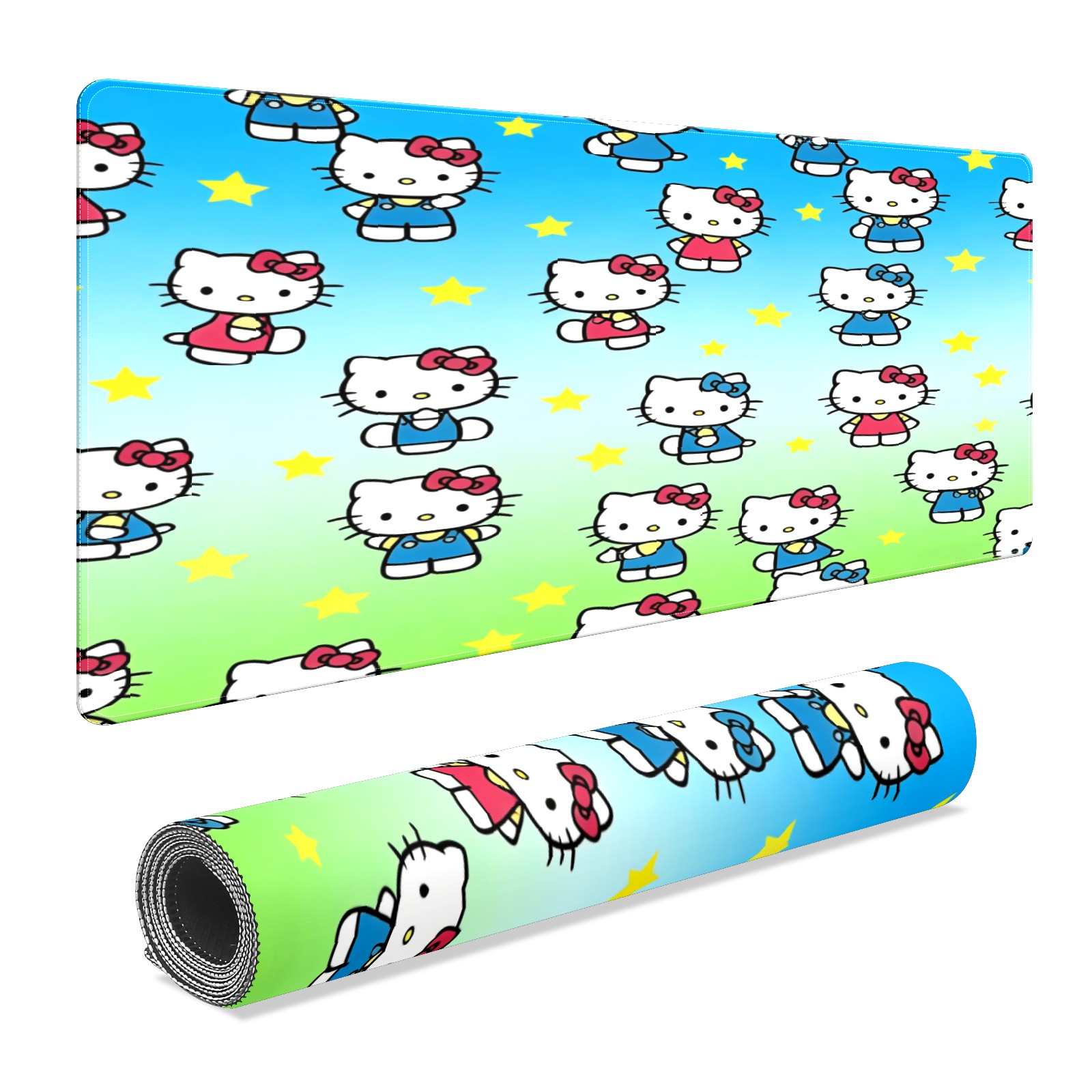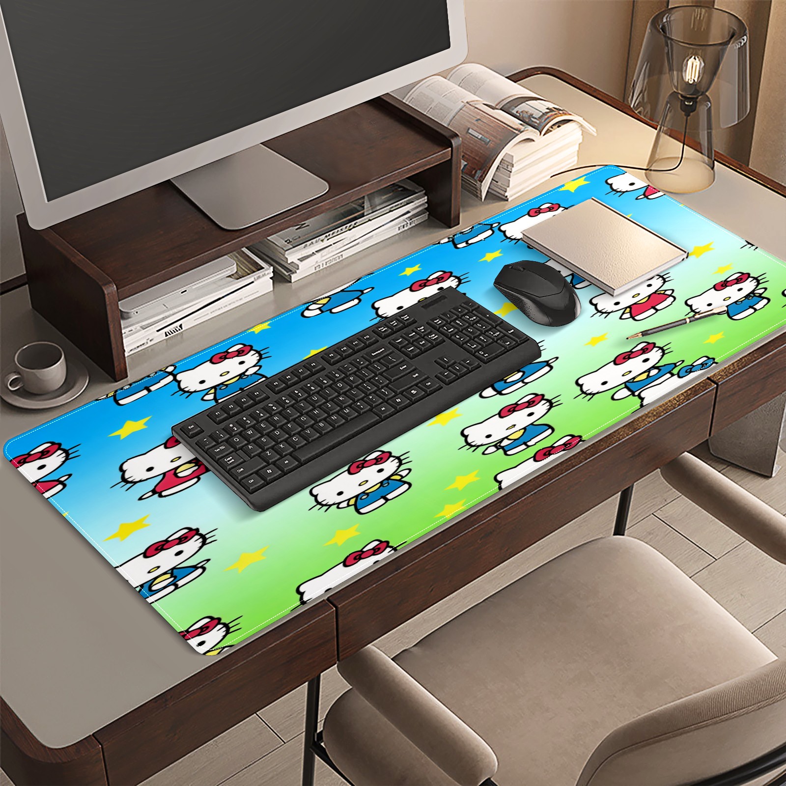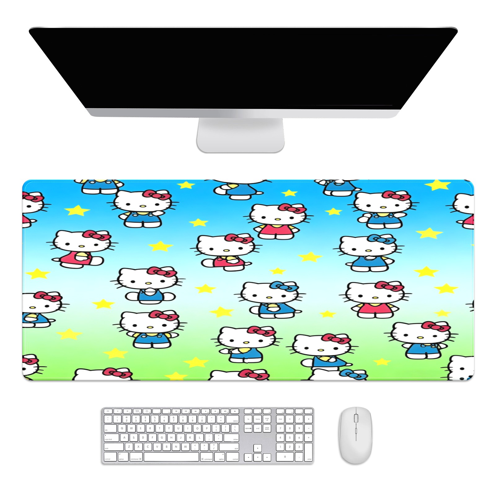 Large Gaming Mouse Pad (90x40cm), Extended Waterproof Desk Mat with Non-Slip Rubber Base, Hello Kitty Green for Gamers, Office & Home