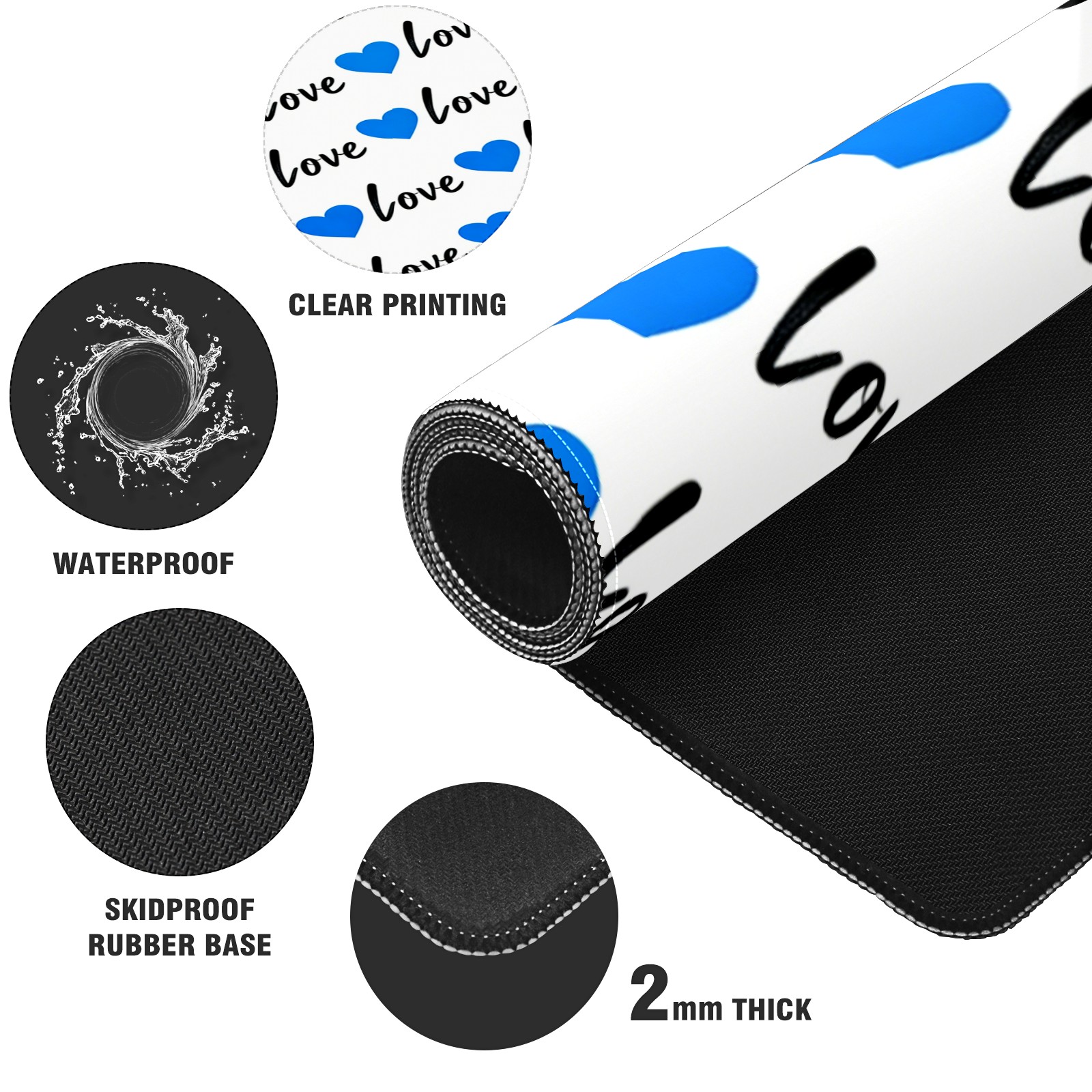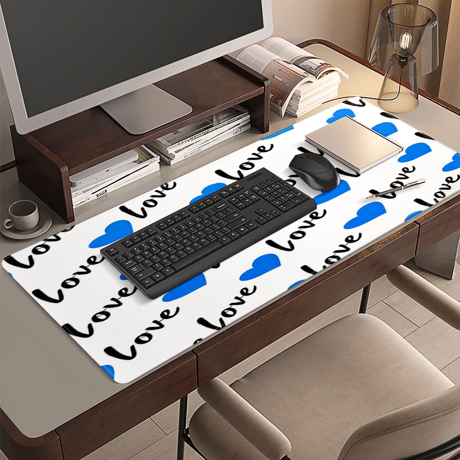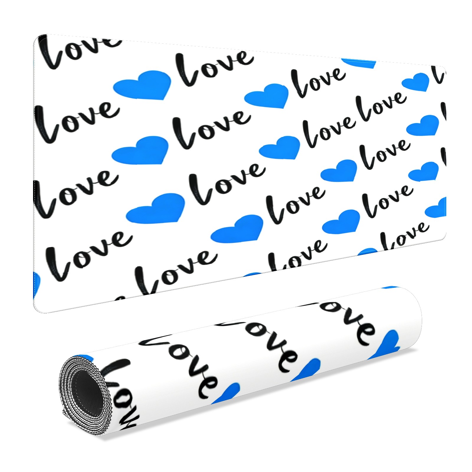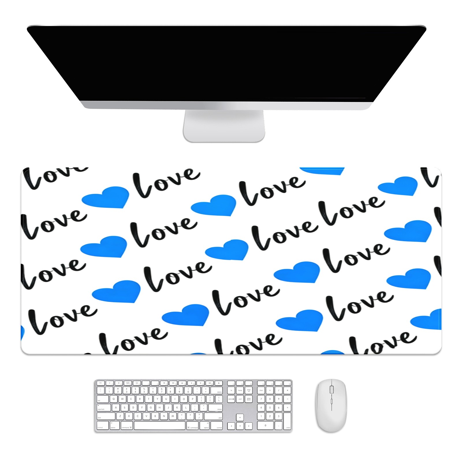 Large Gaming Mouse Pad (90x40cm), Extended Waterproof Desk Mat with Non-Slip Rubber Base, LOVE Text White for Gamers, Office & Home