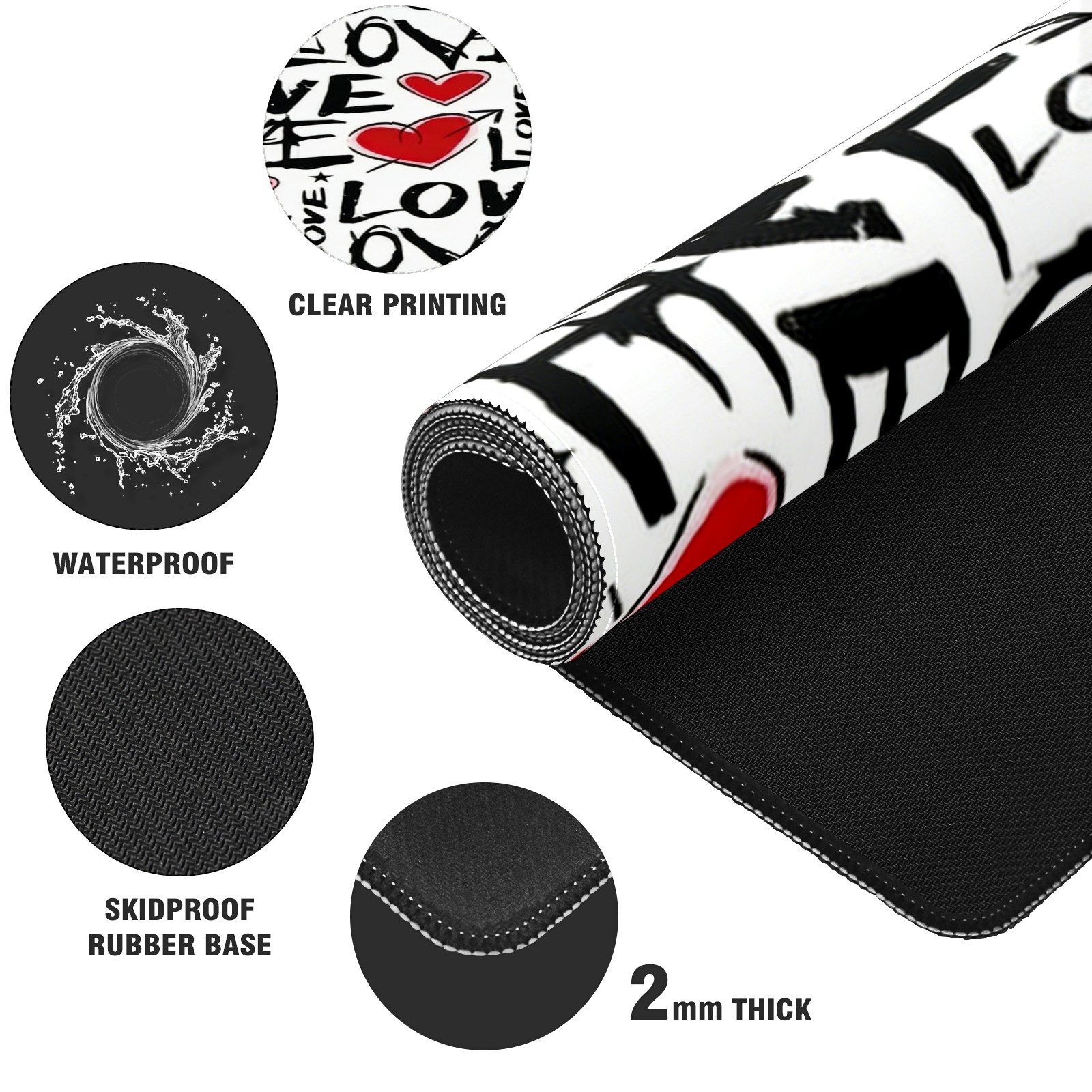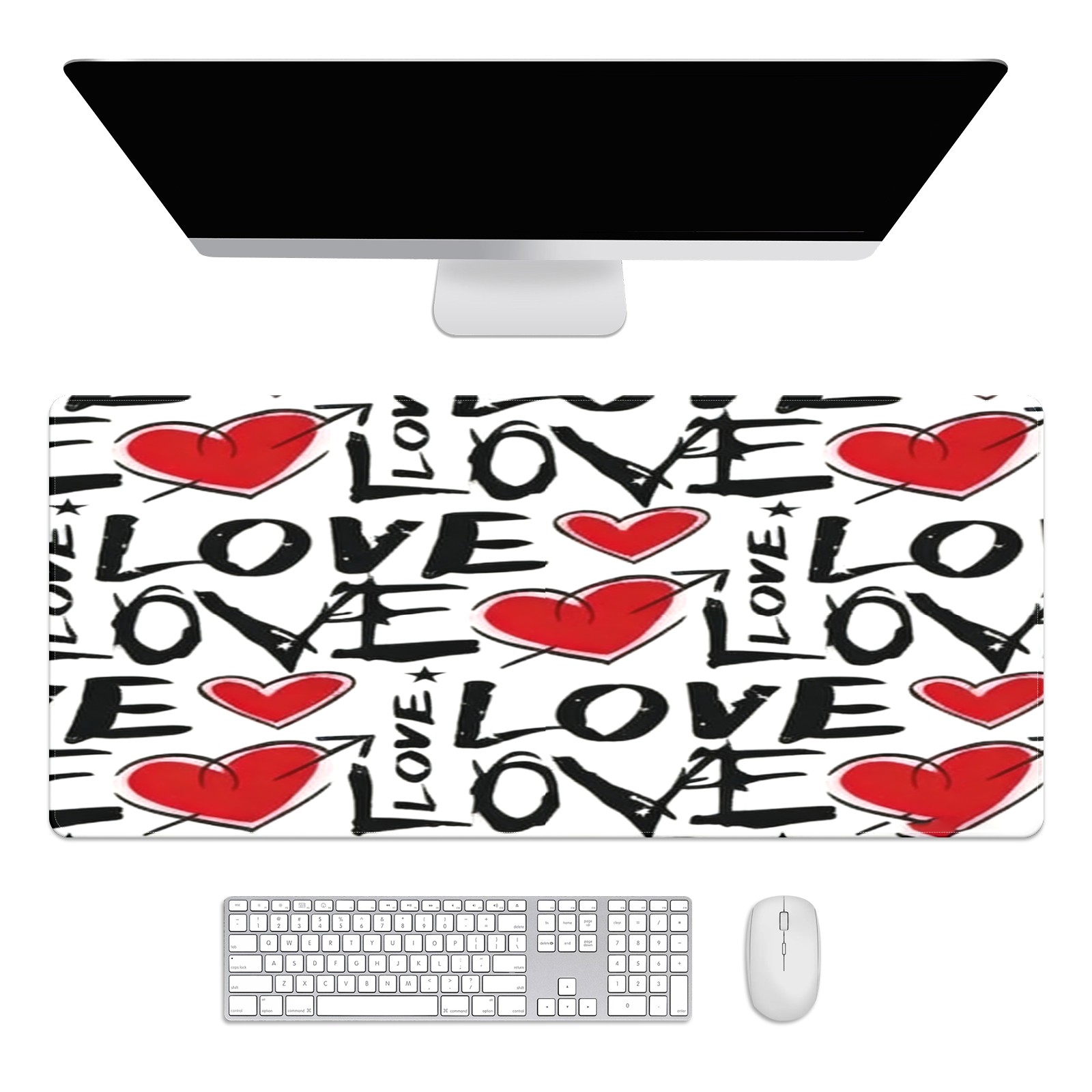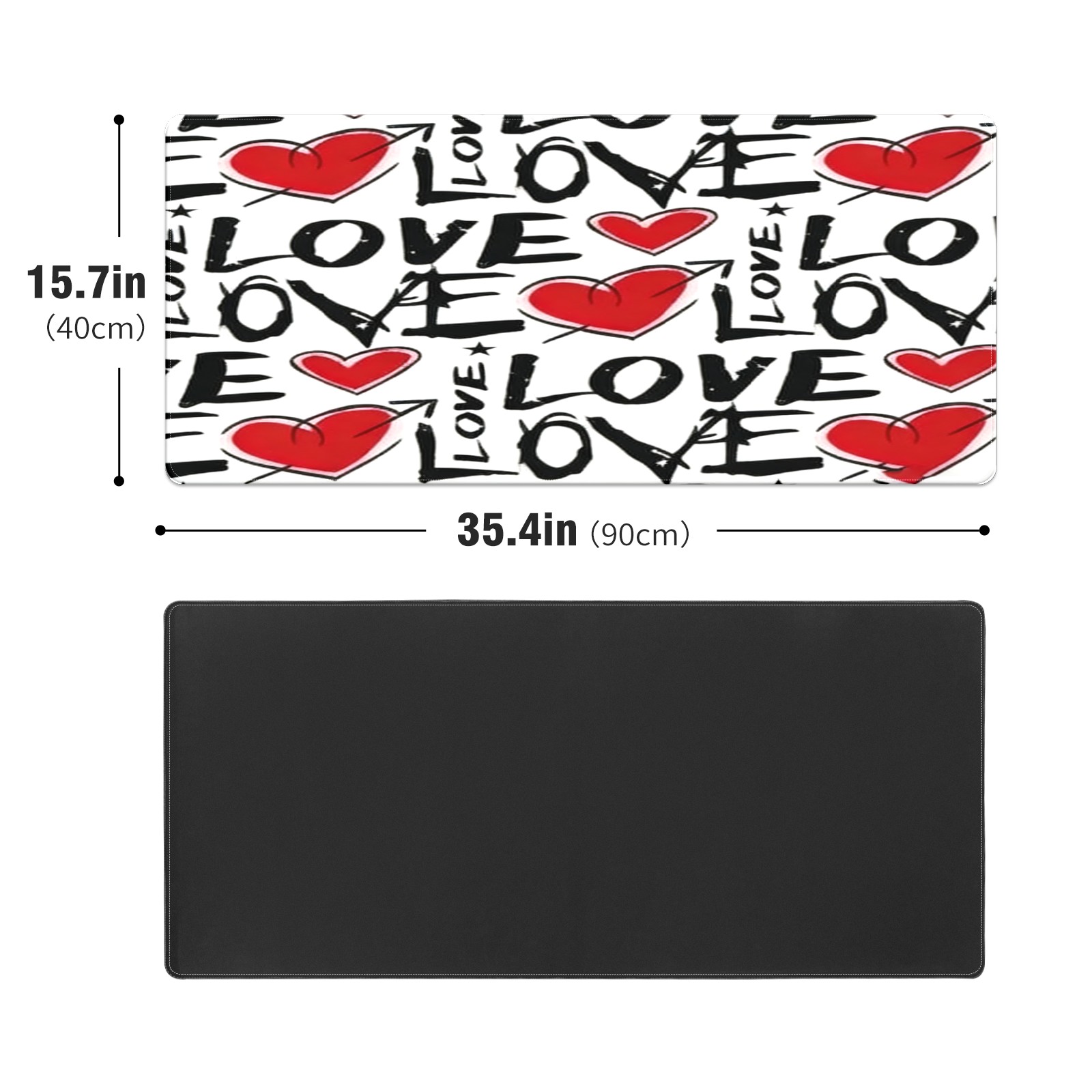 Large Gaming Mouse Pad (90x40cm), Extended Waterproof Desk Mat with Non-Slip Rubber Base, LOVE & Heart Red for Gamers, Office & Home