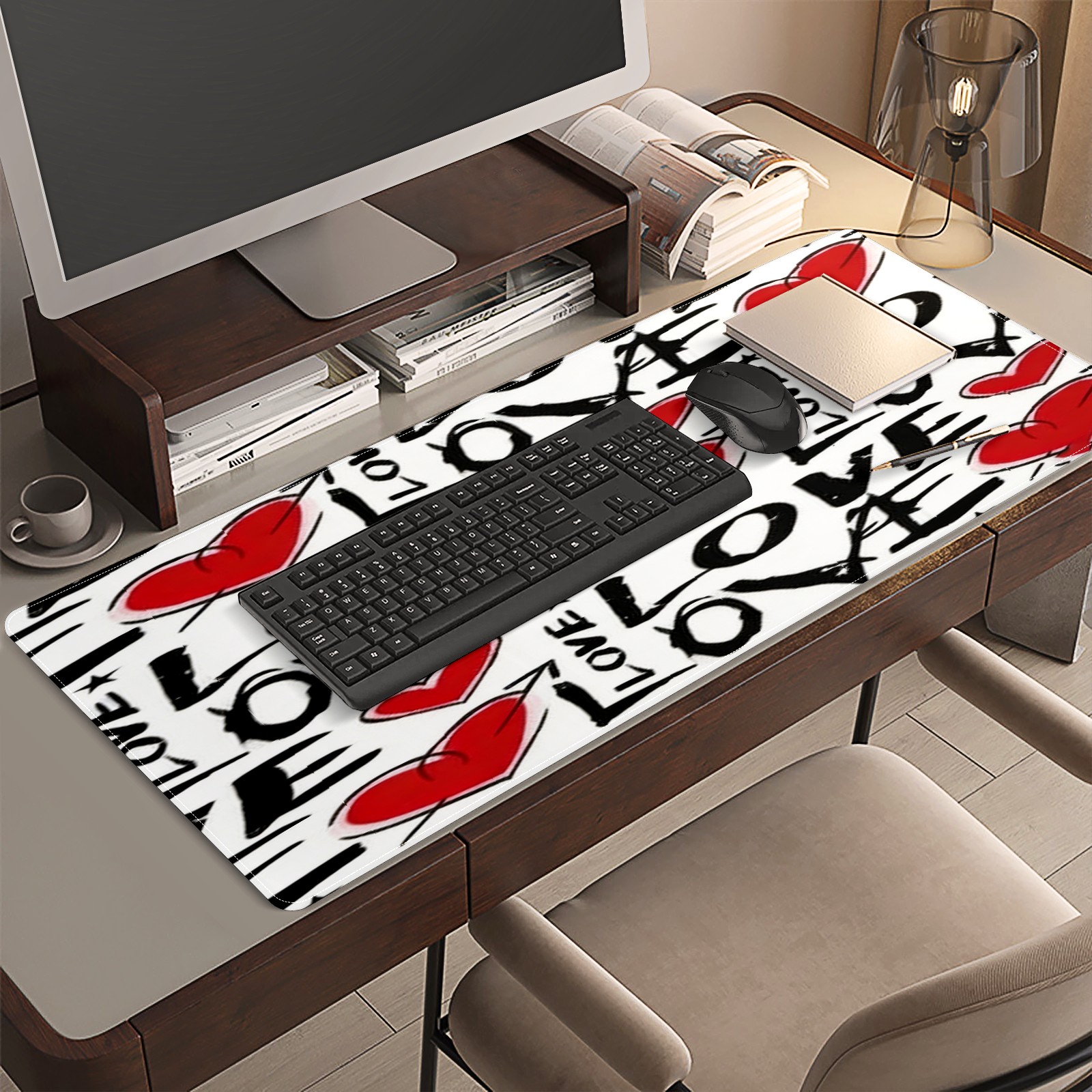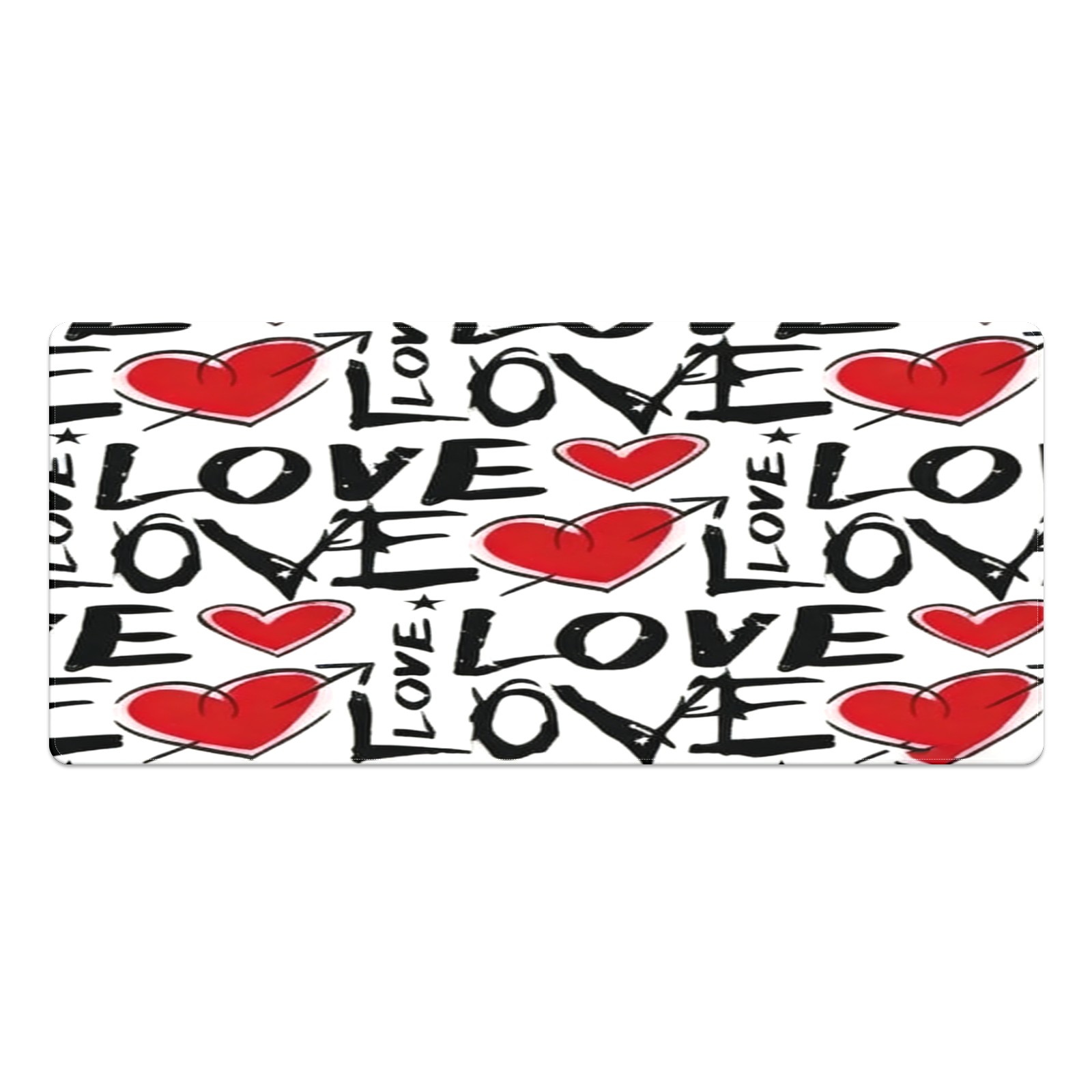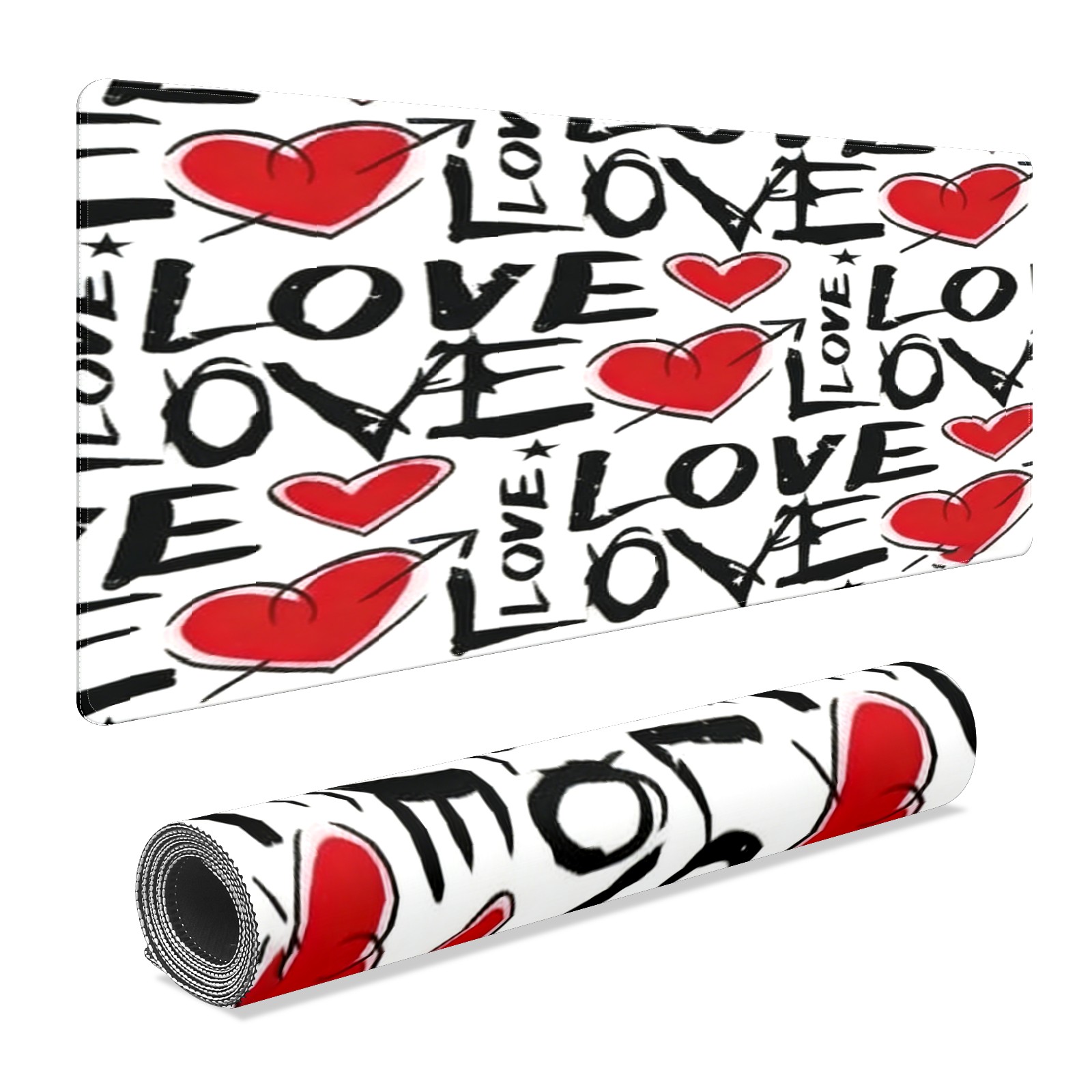 Large Gaming Mouse Pad (90x40cm), Extended Waterproof Desk Mat with Non-Slip Rubber Base, LOVE & Heart Red for Gamers, Office & Home
