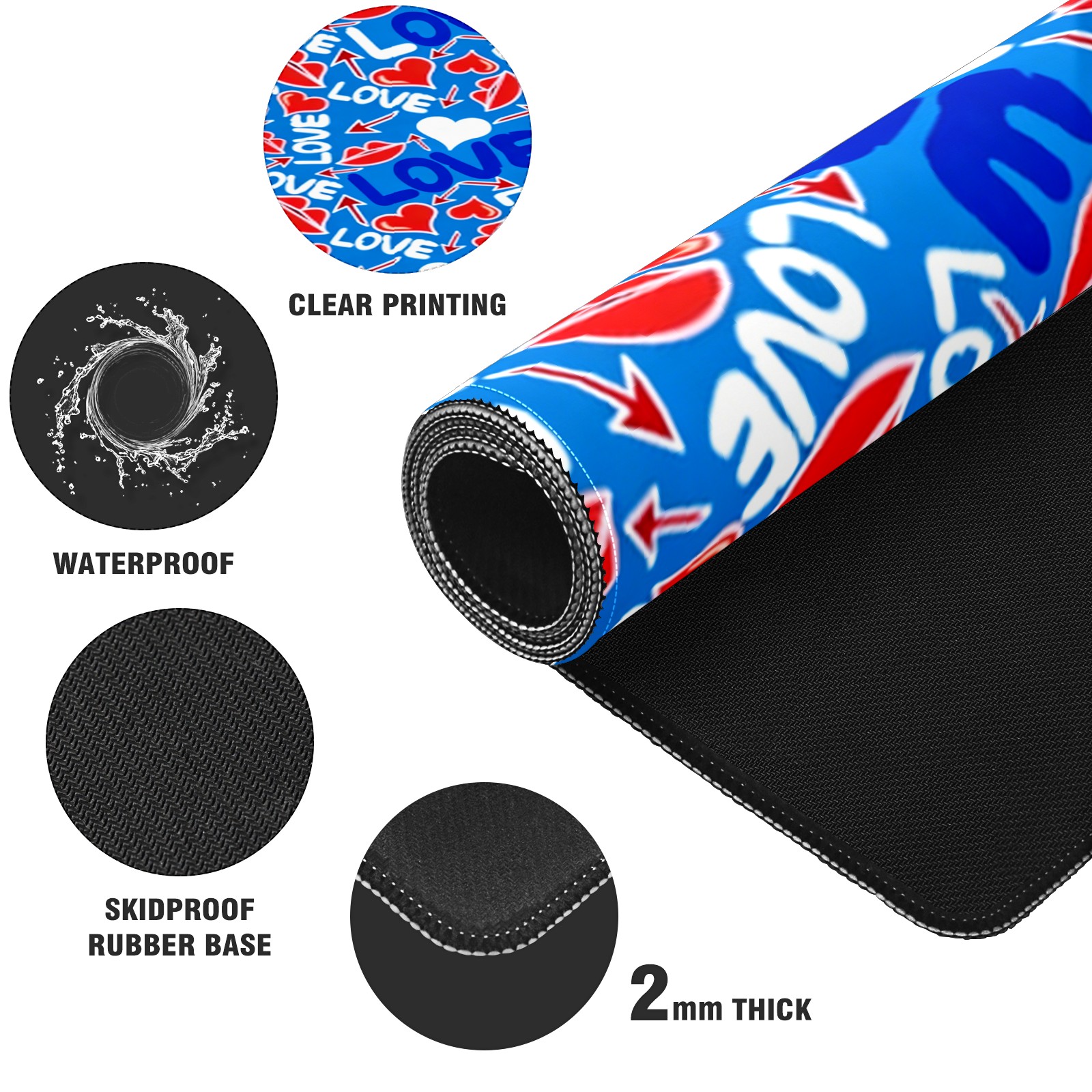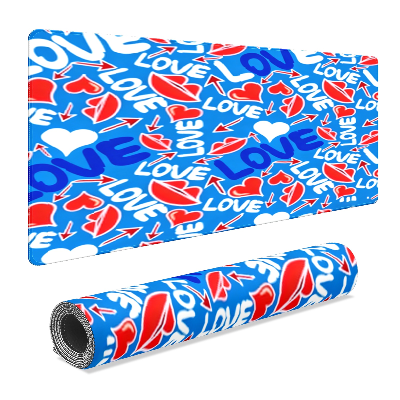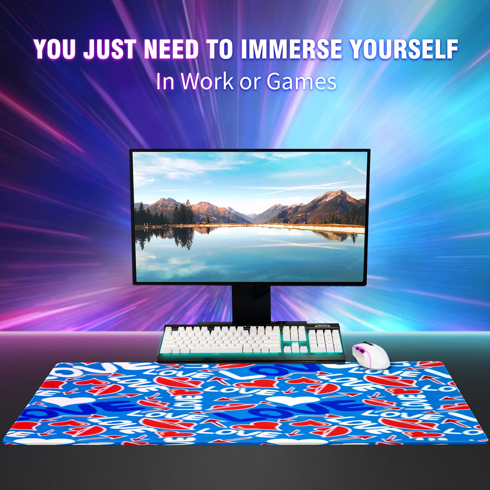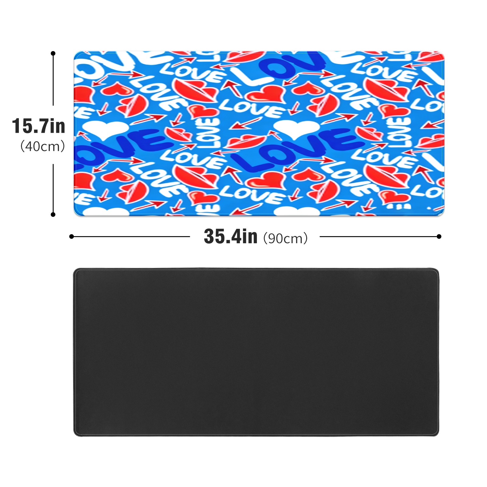Large Gaming Mouse Pad (90x40cm), Extended Waterproof Desk Mat with Non-Slip Rubber Base, LOVE & Heart Blue for Gamers, Office & Home