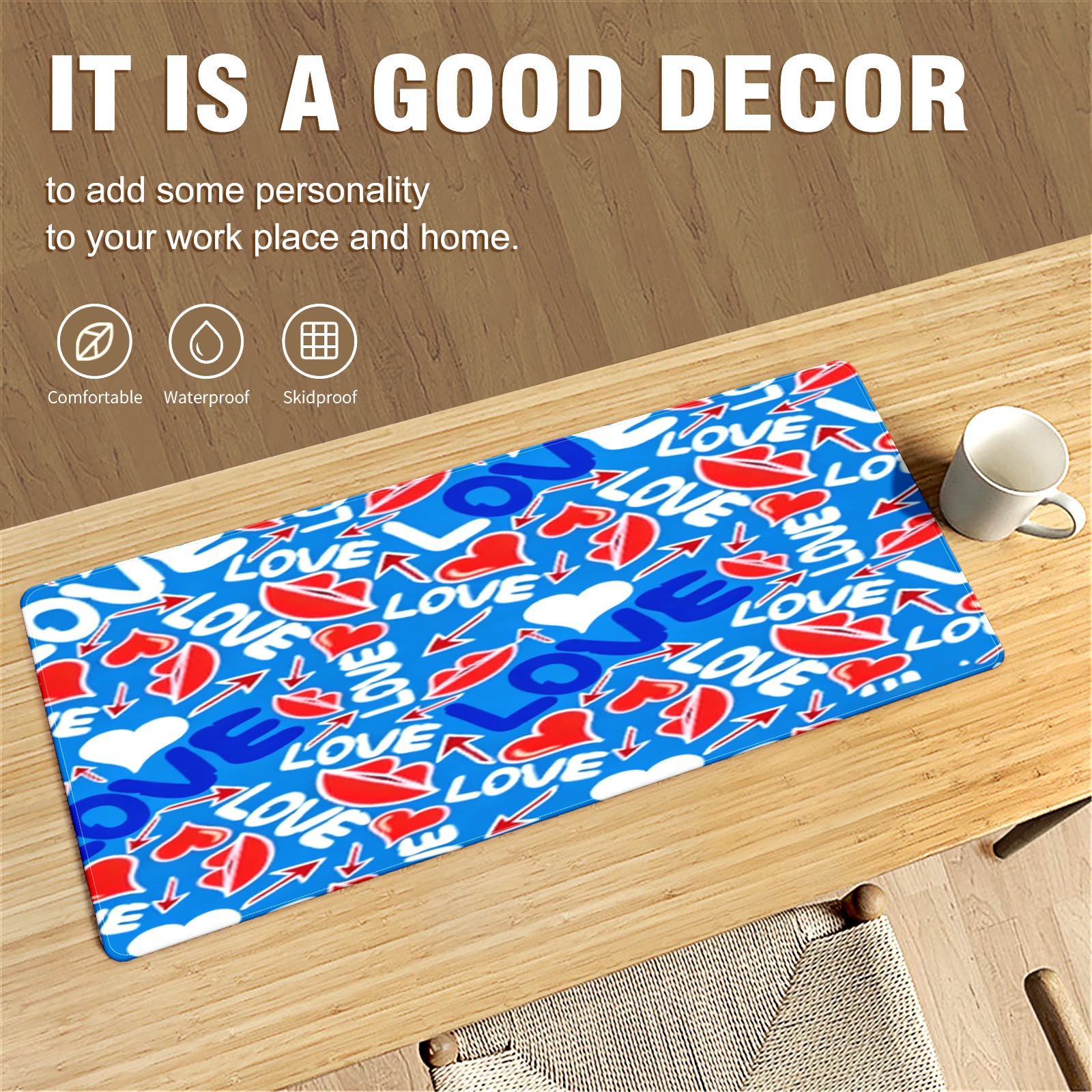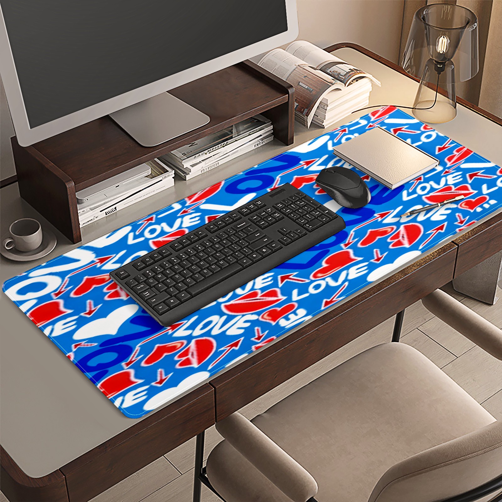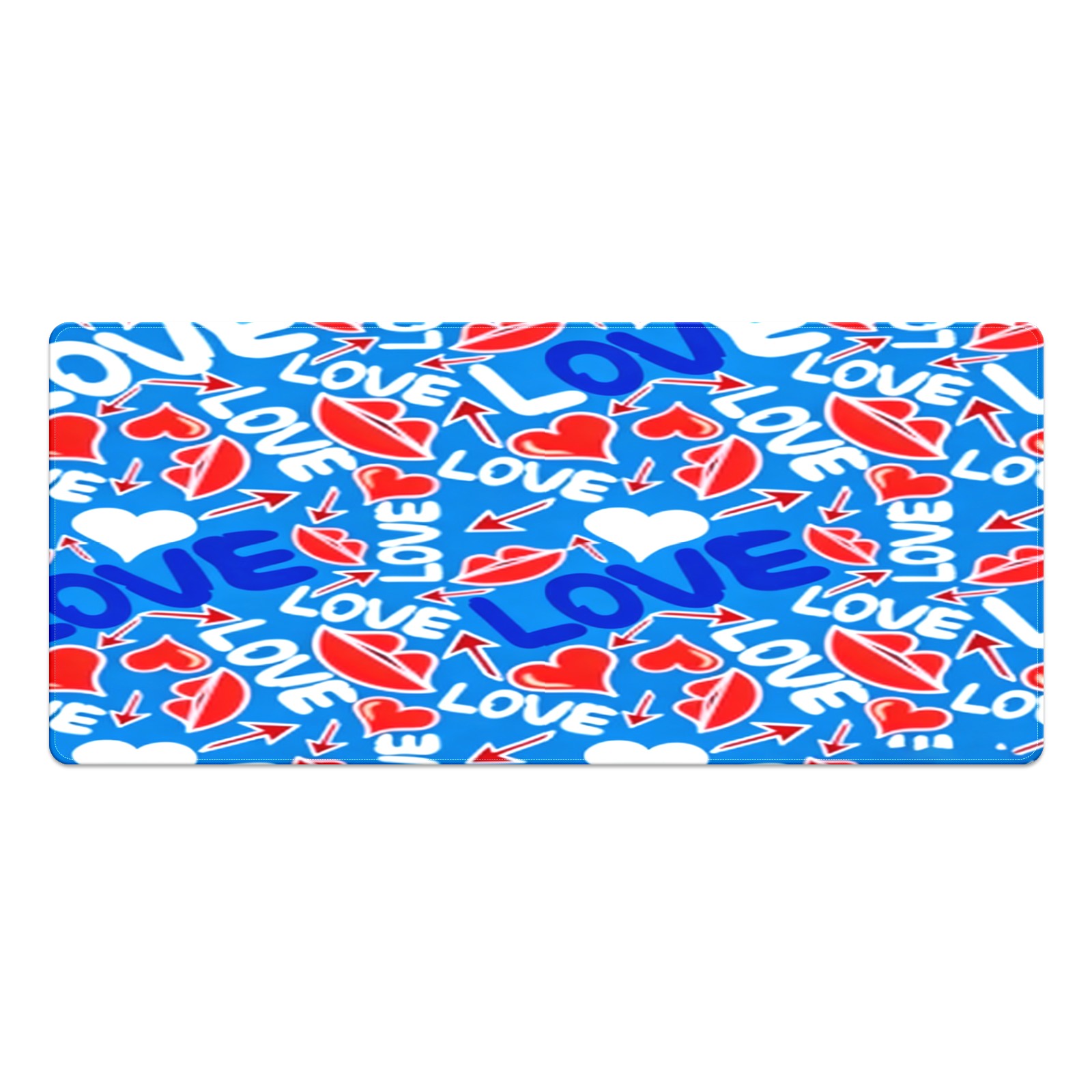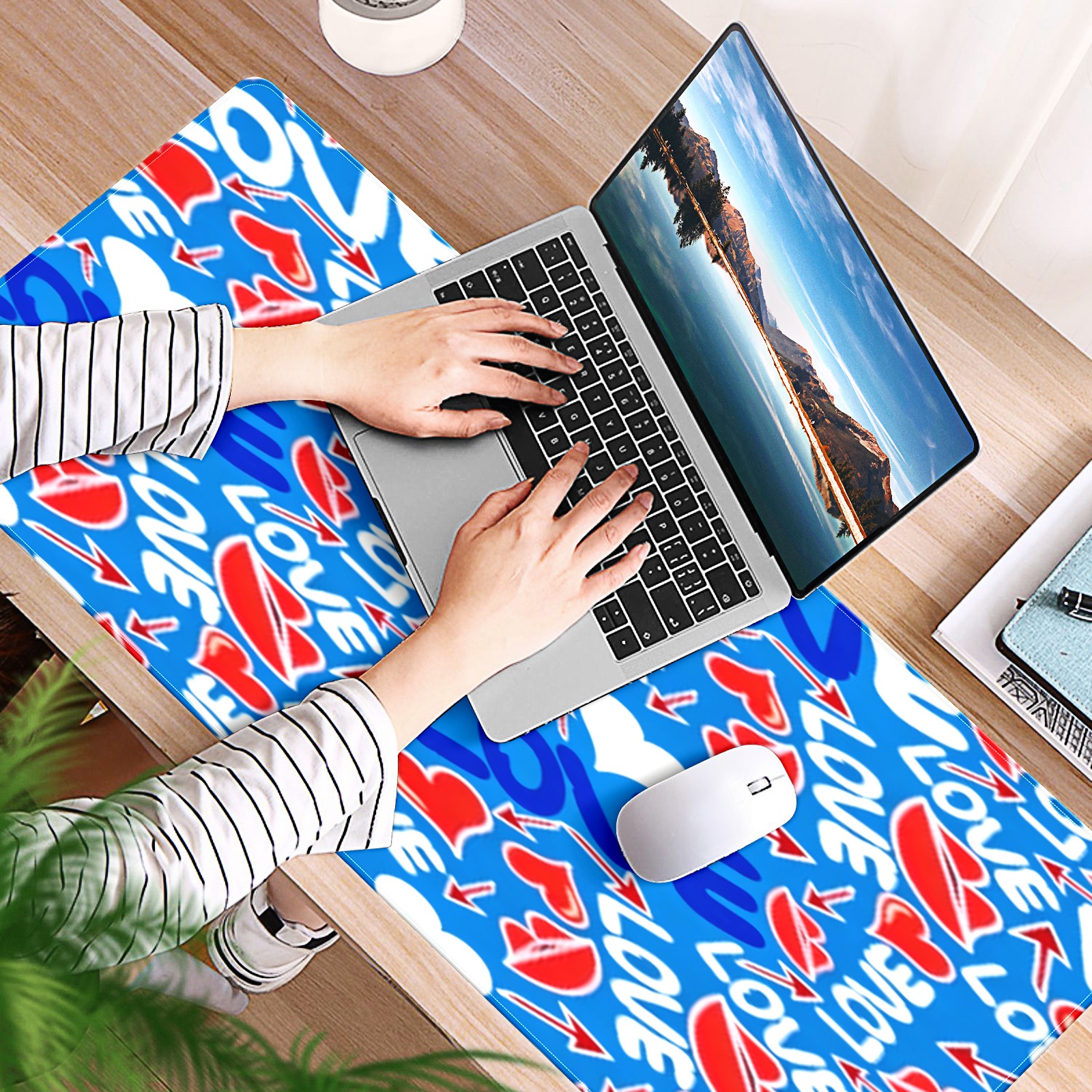 Large Gaming Mouse Pad (90x40cm), Extended Waterproof Desk Mat with Non-Slip Rubber Base, LOVE & Heart Blue for Gamers, Office & Home