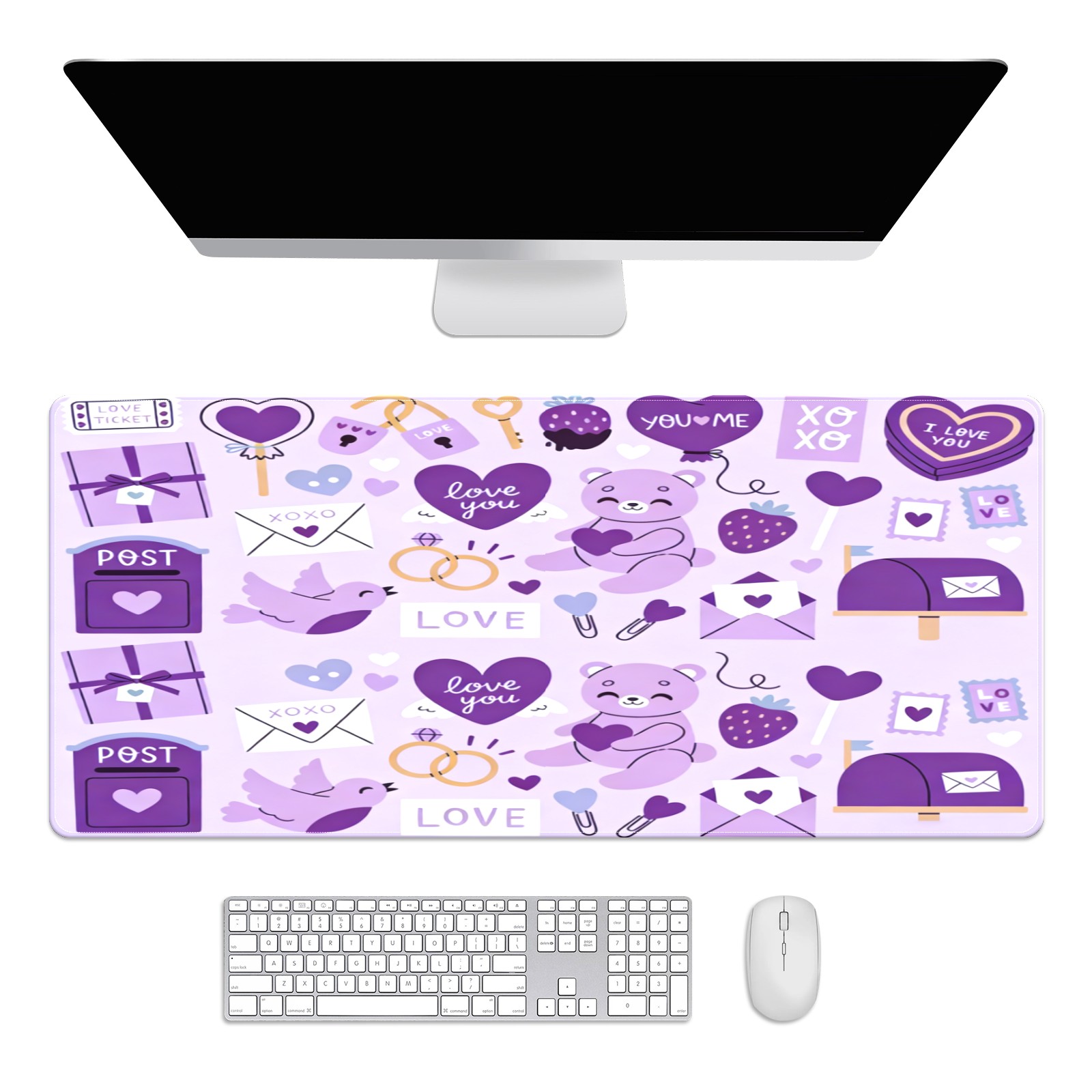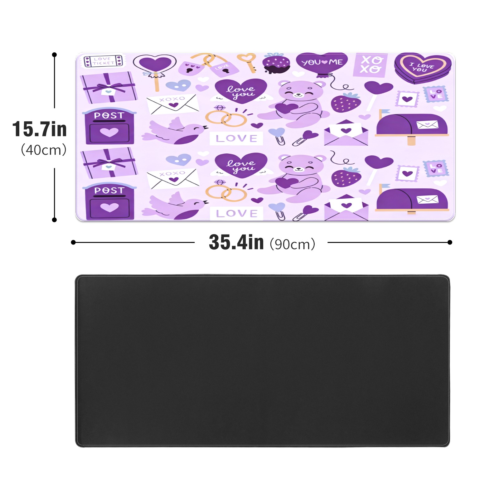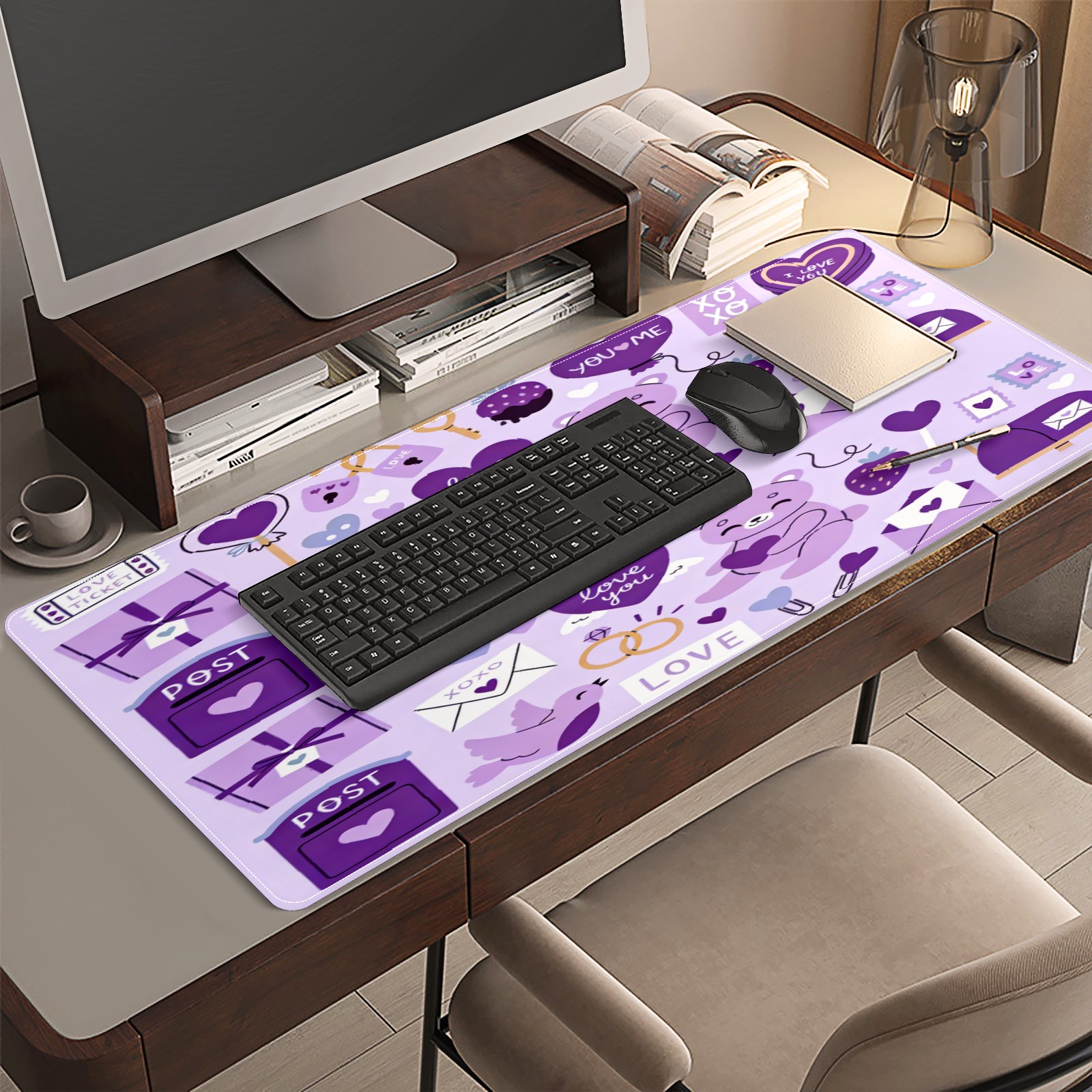 Large Gaming Mouse Pad (90x40cm), Extended Waterproof Desk Mat with Non-Slip Rubber Base, Gentle LOVE Purple for Gamers, Office & Home