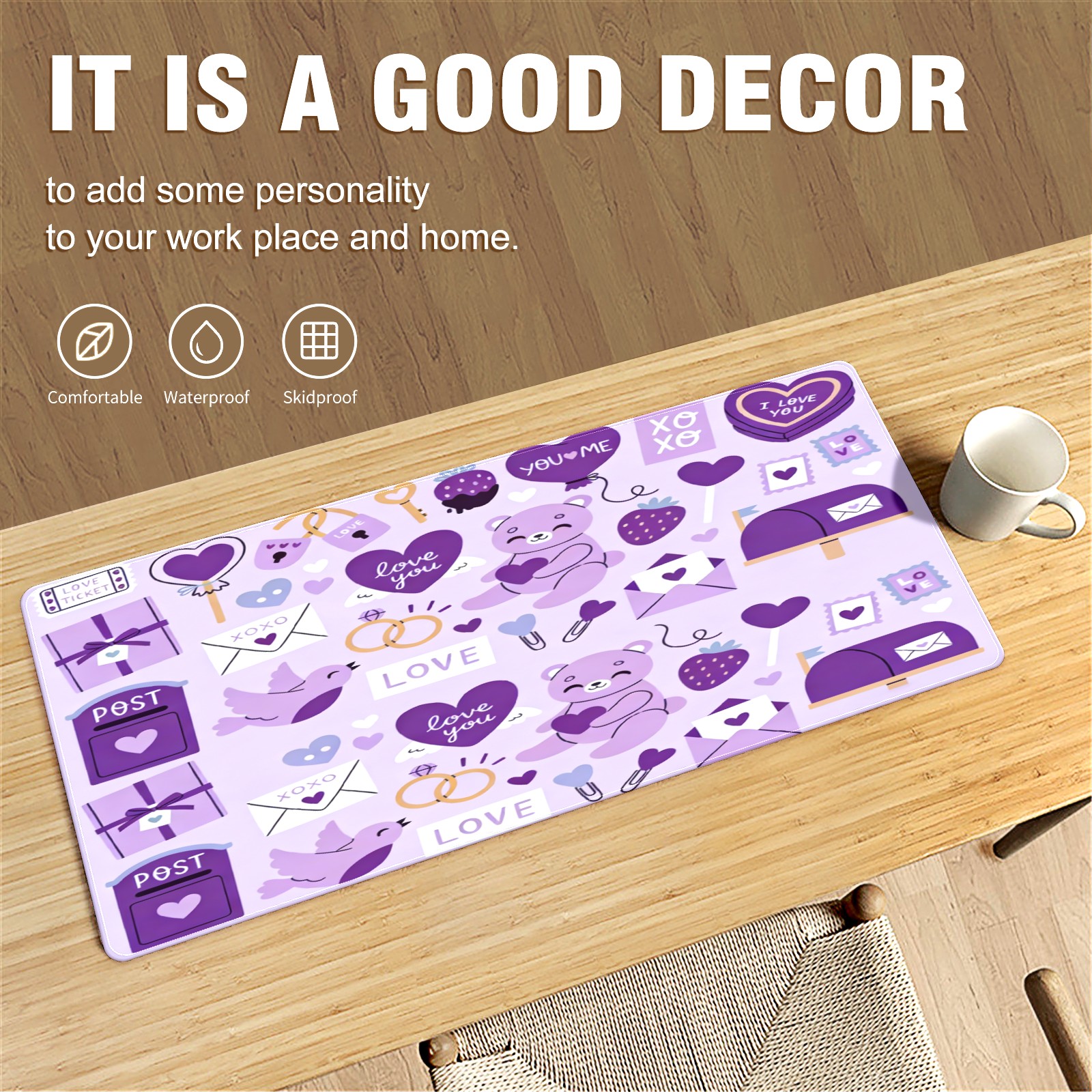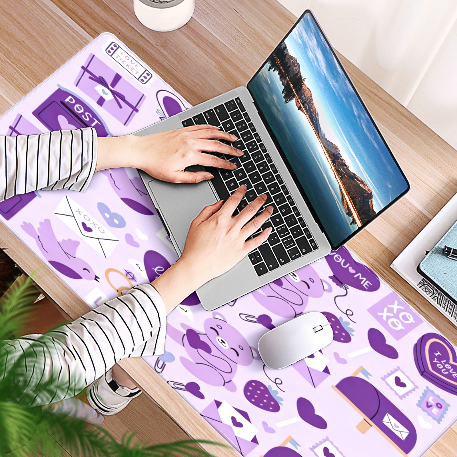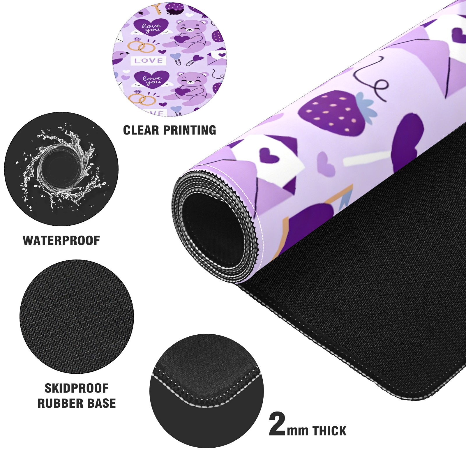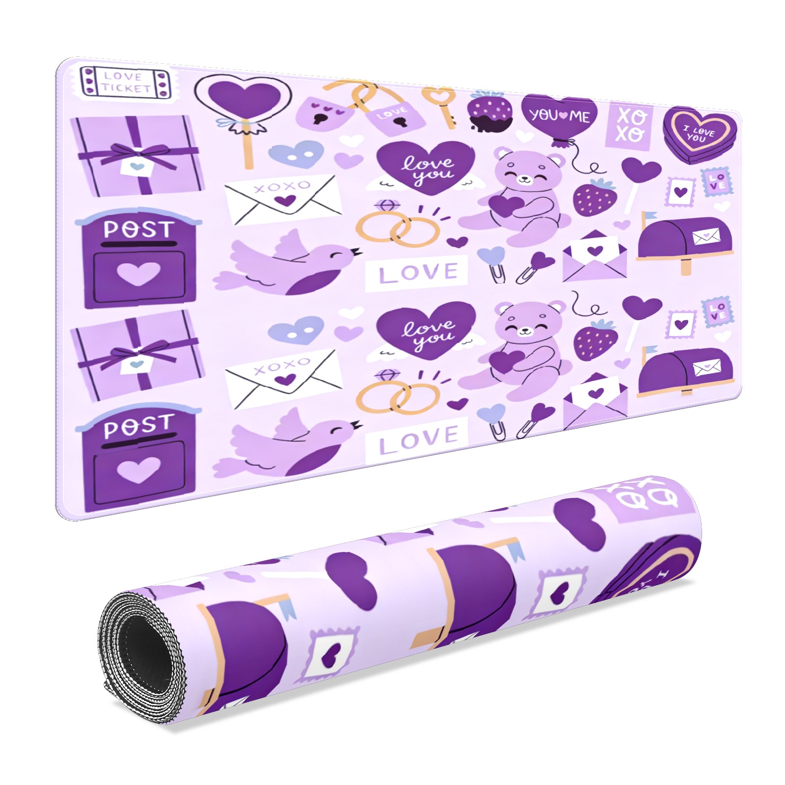 Large Gaming Mouse Pad (90x40cm), Extended Waterproof Desk Mat with Non-Slip Rubber Base, Gentle LOVE Purple for Gamers, Office & Home