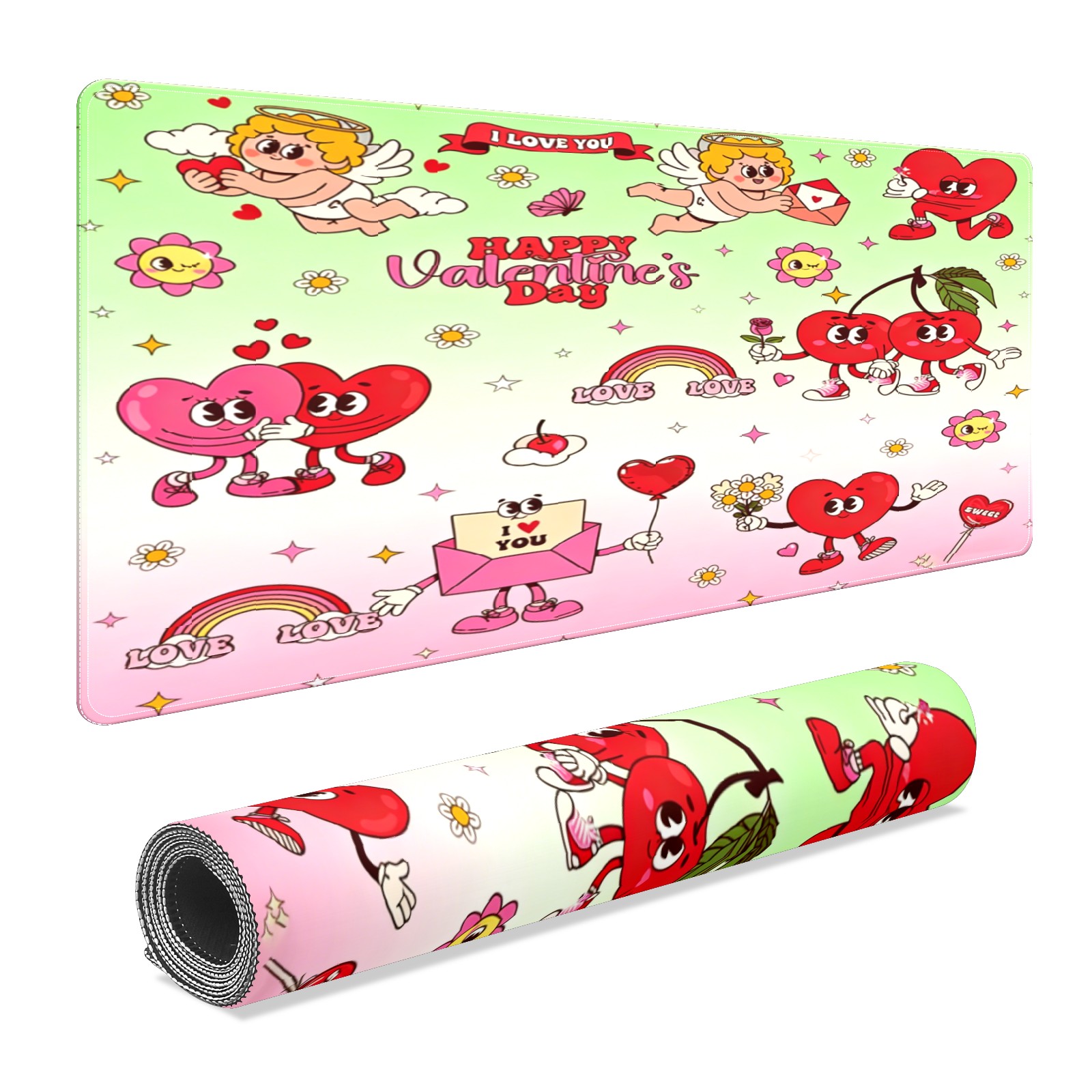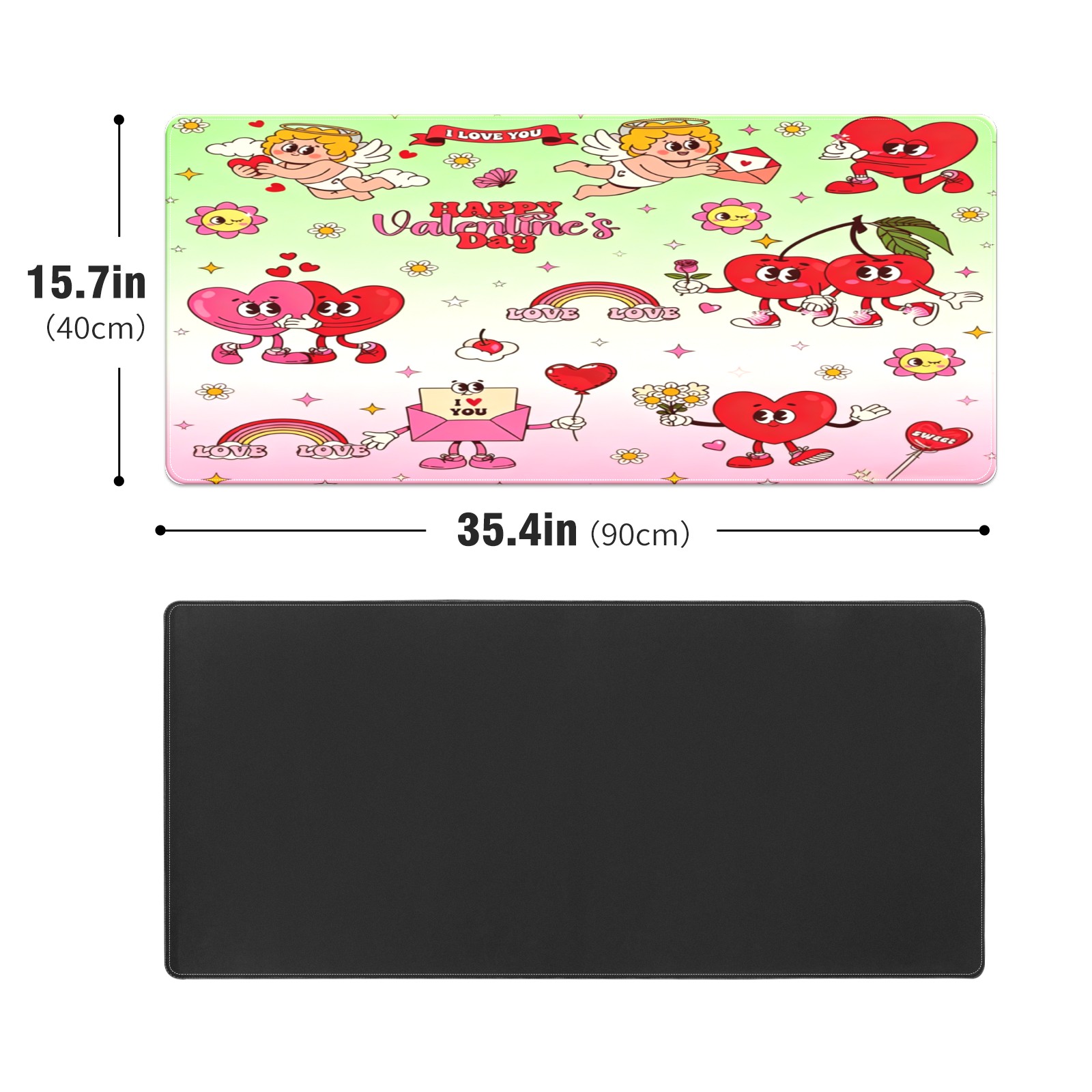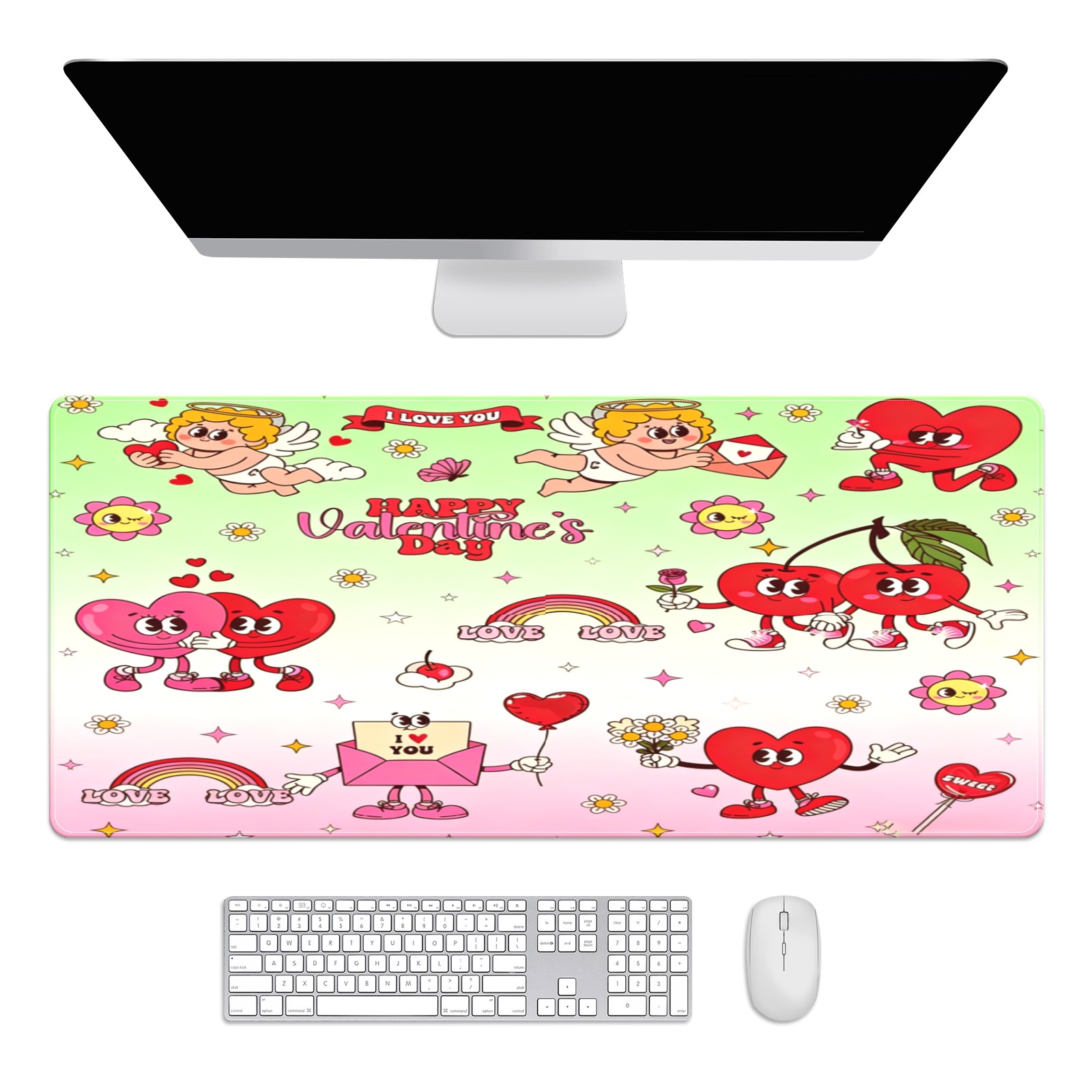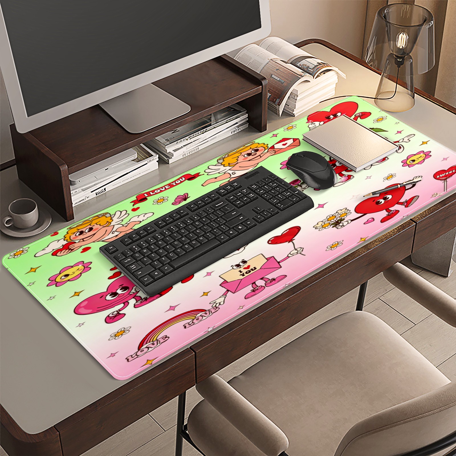Large Gaming Mouse Pad (90x40cm), Extended Waterproof Desk Mat with Non-Slip Rubber Base, Cupid & Heart Pink for Gamers, Office & Home