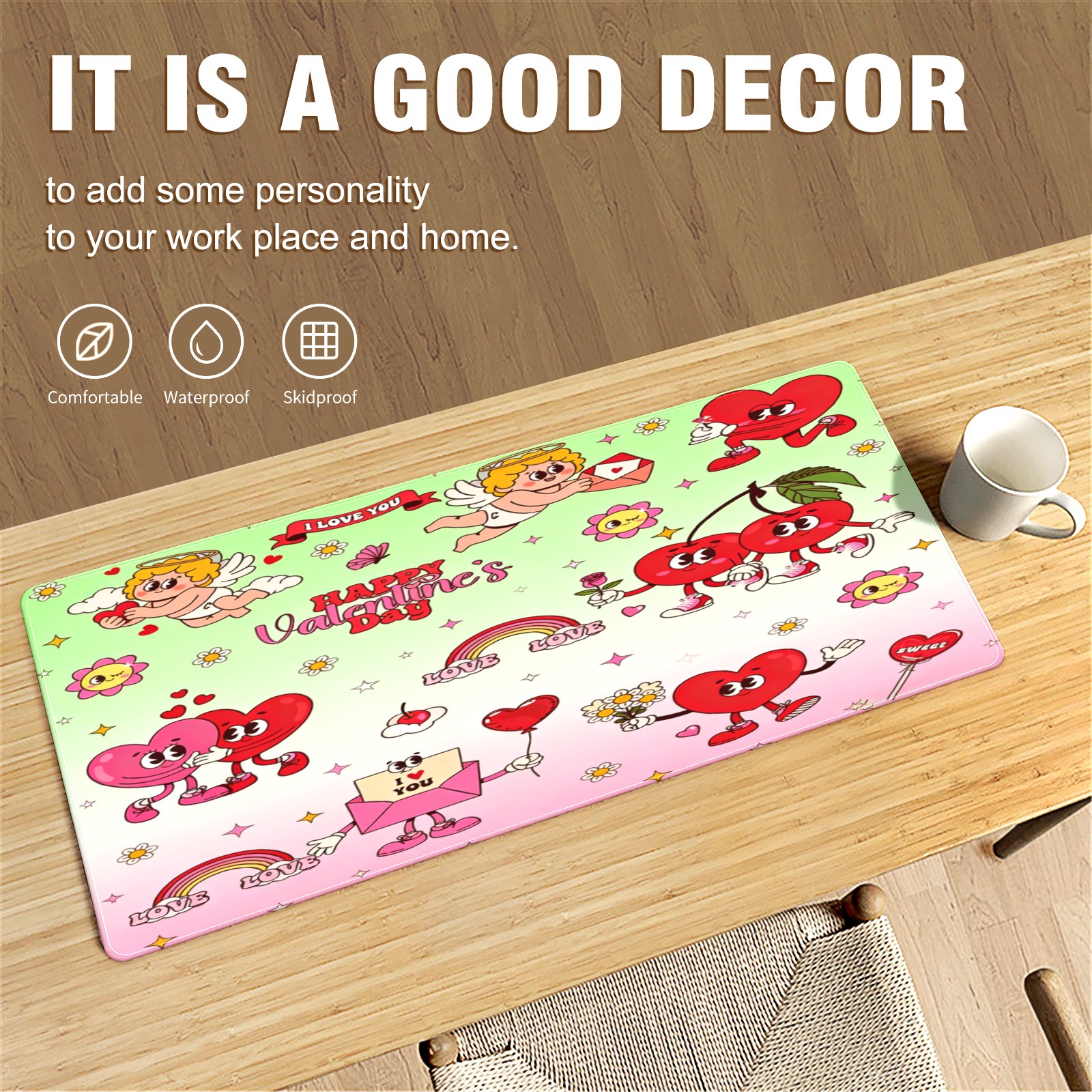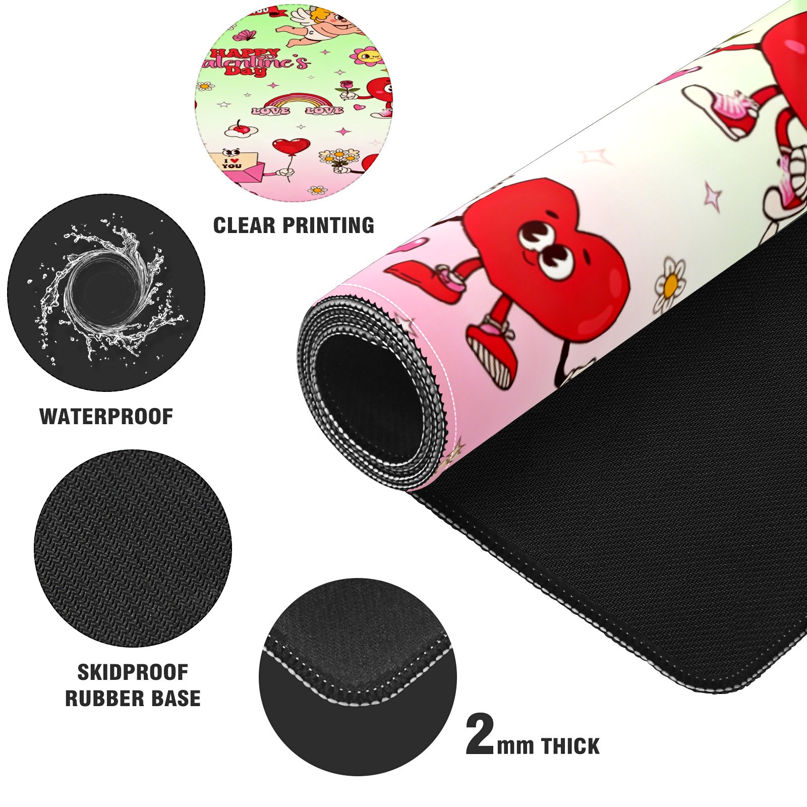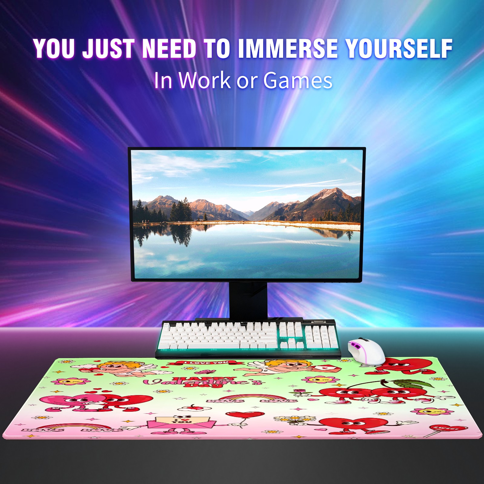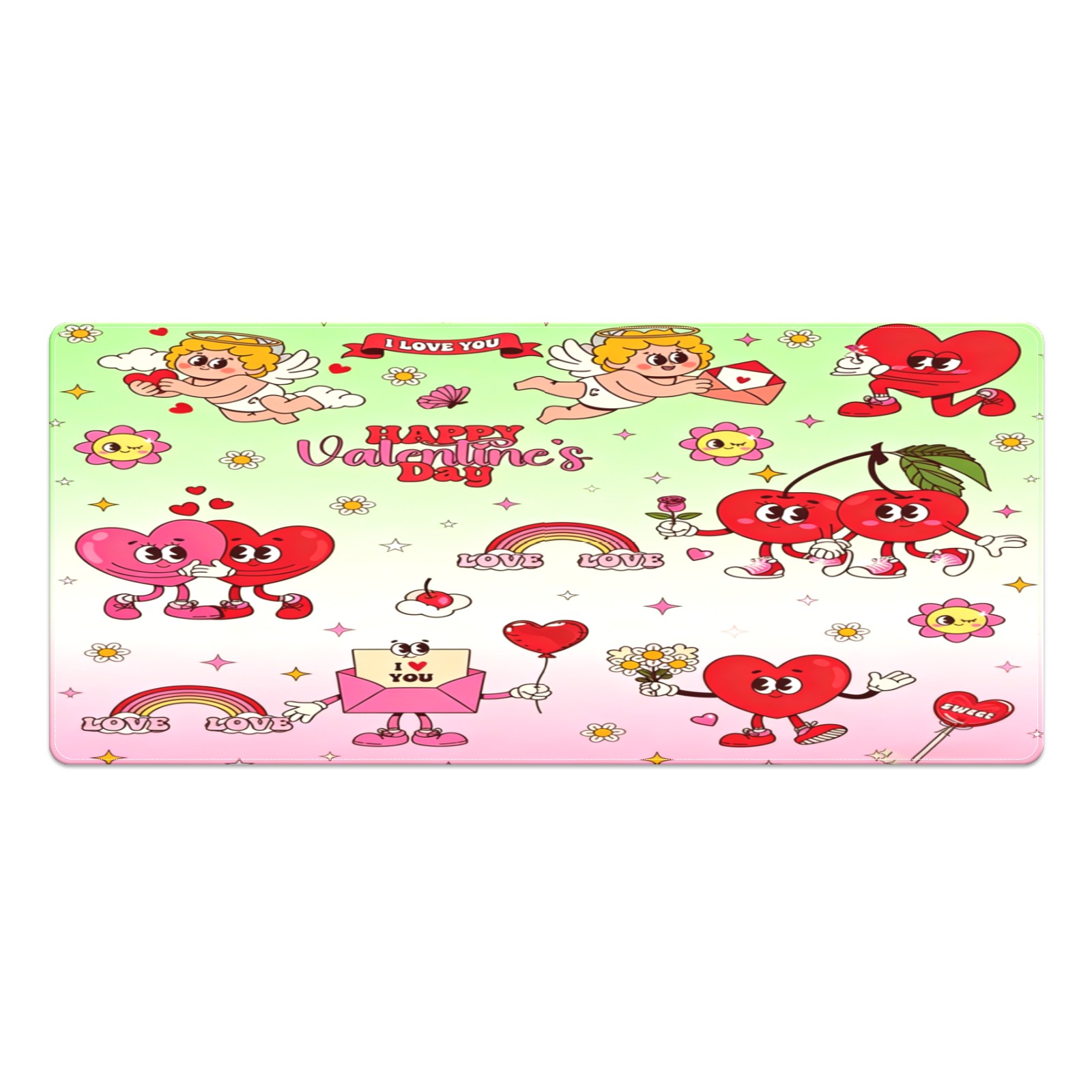 Large Gaming Mouse Pad (90x40cm), Extended Waterproof Desk Mat with Non-Slip Rubber Base, Cupid & Heart Pink for Gamers, Office & Home