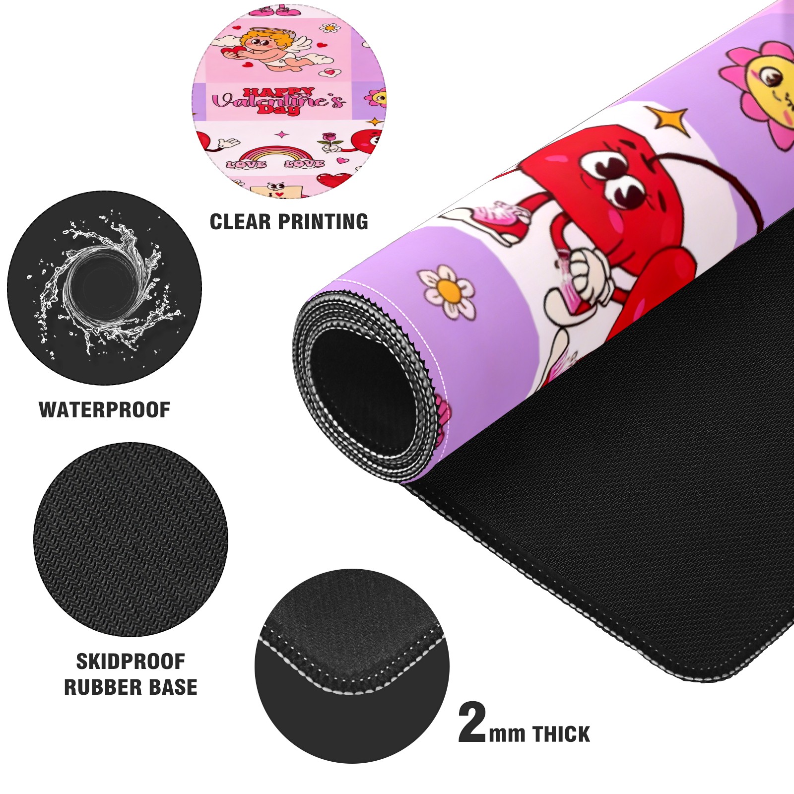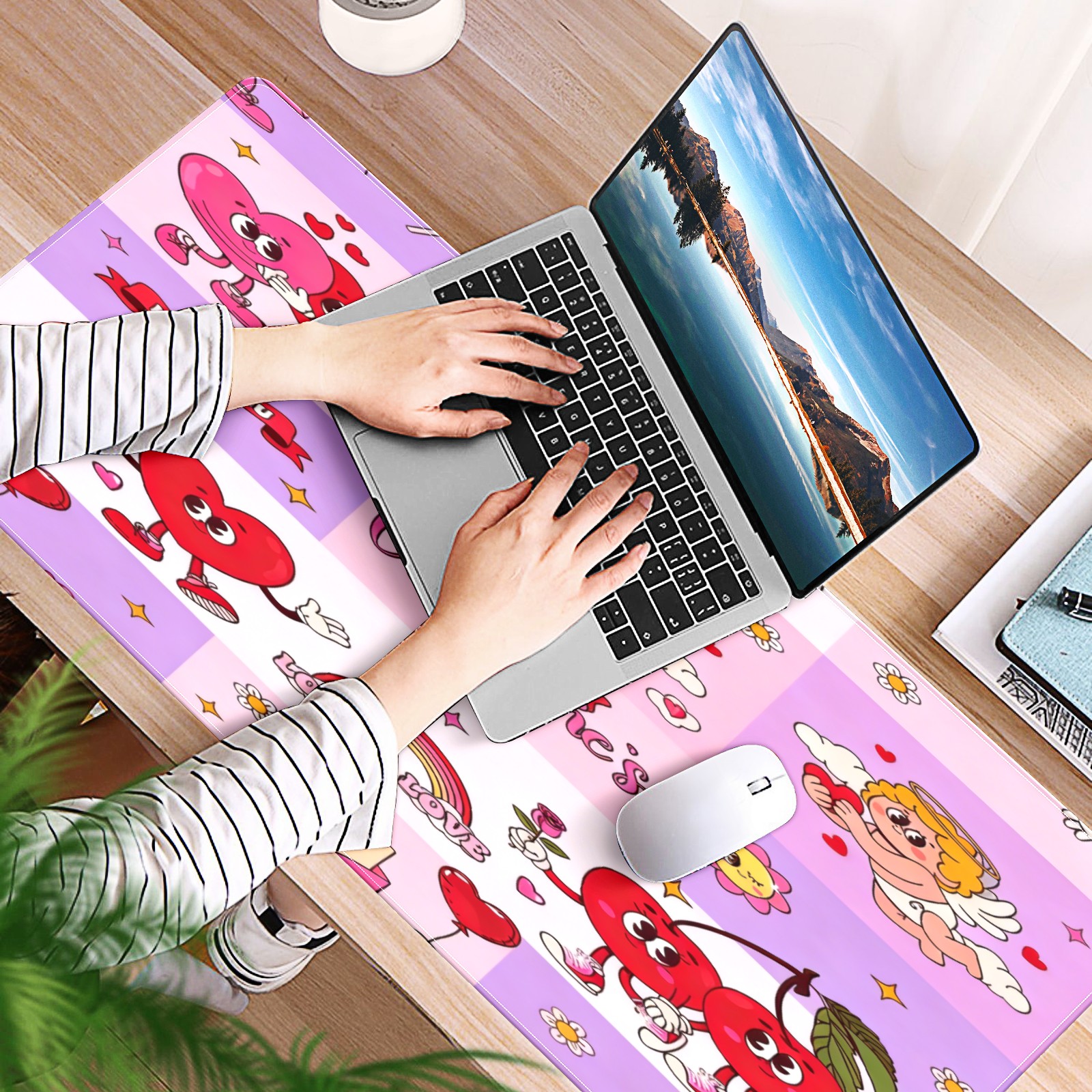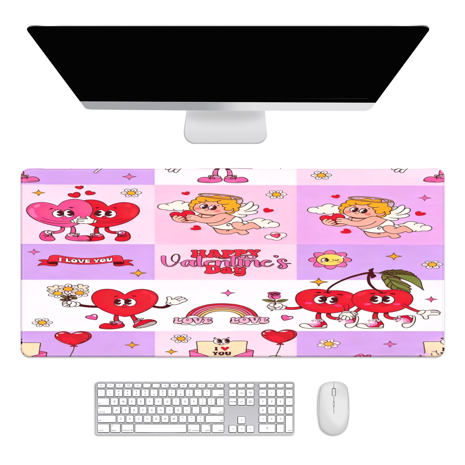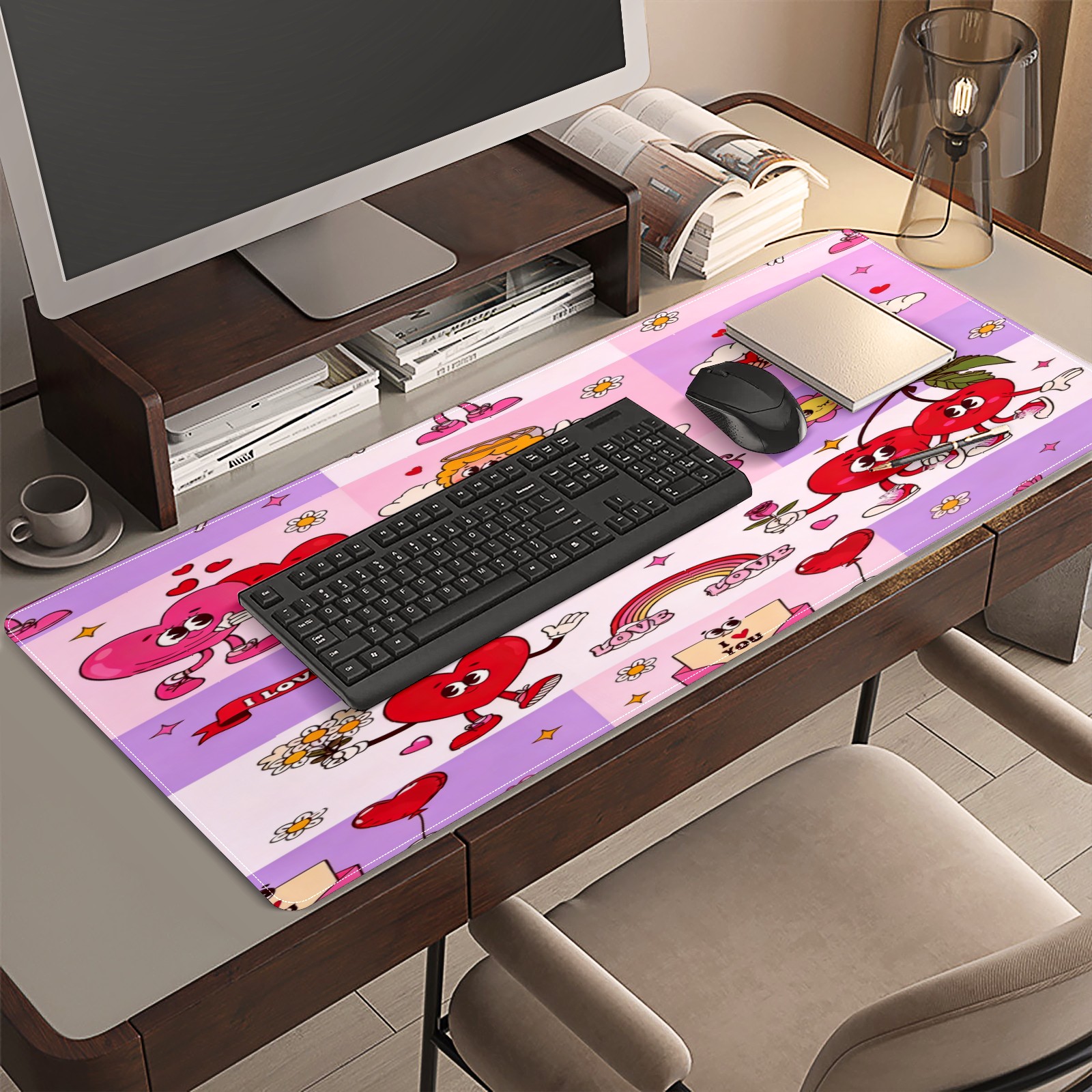 Large Gaming Mouse Pad (90x40cm), Extended Waterproof Desk Mat with Non-Slip Rubber Base, Sweet Valentine's Pink for Gamers, Office & Home
