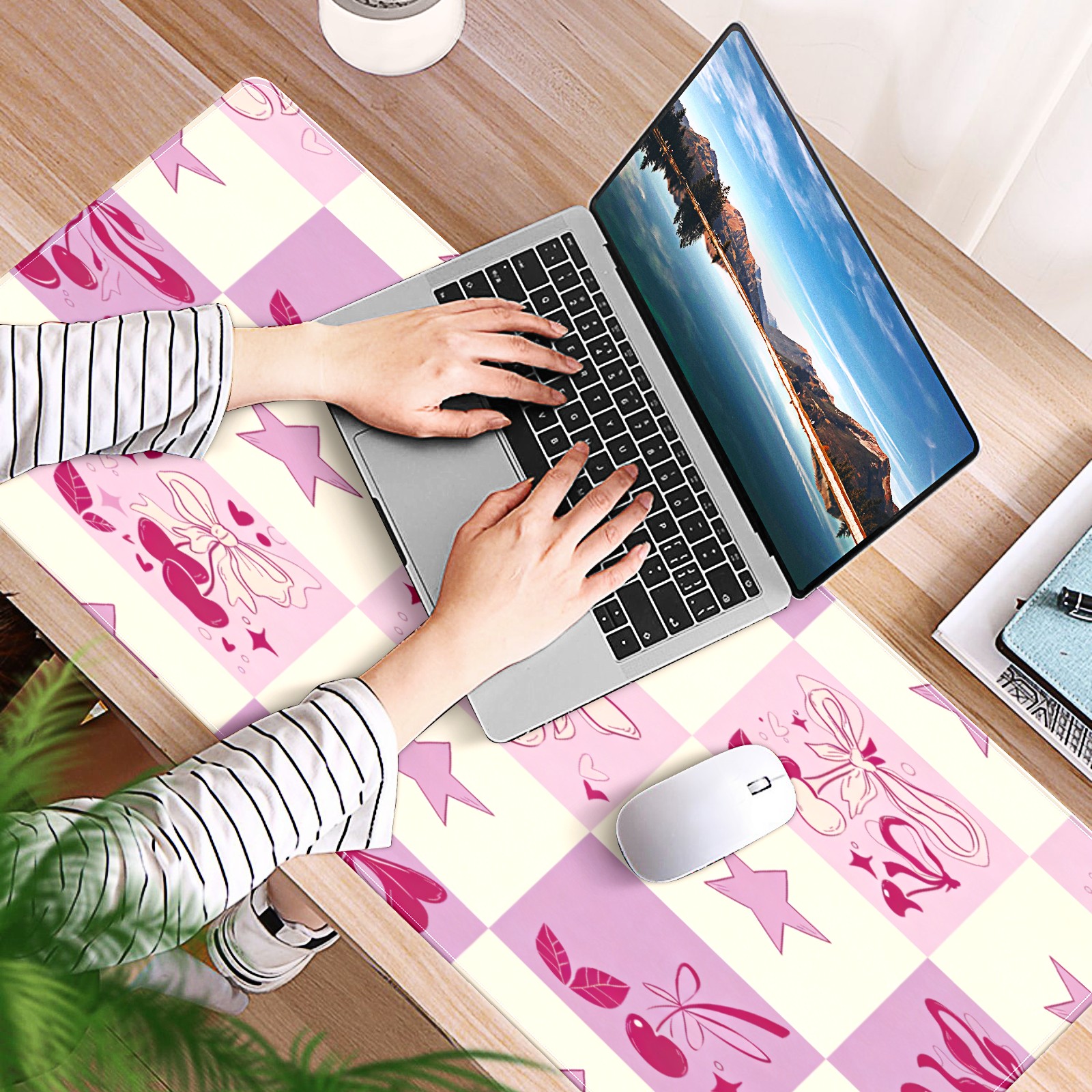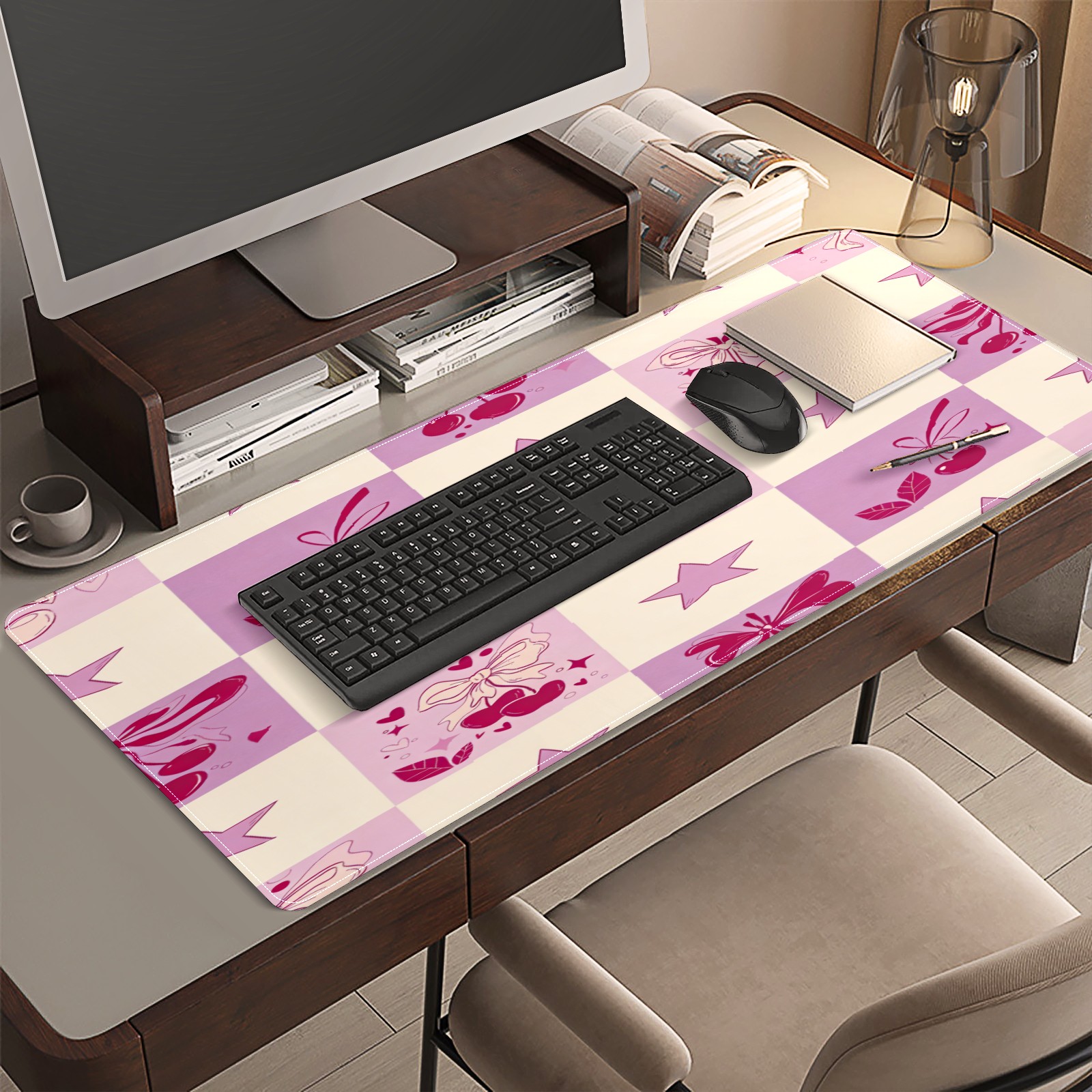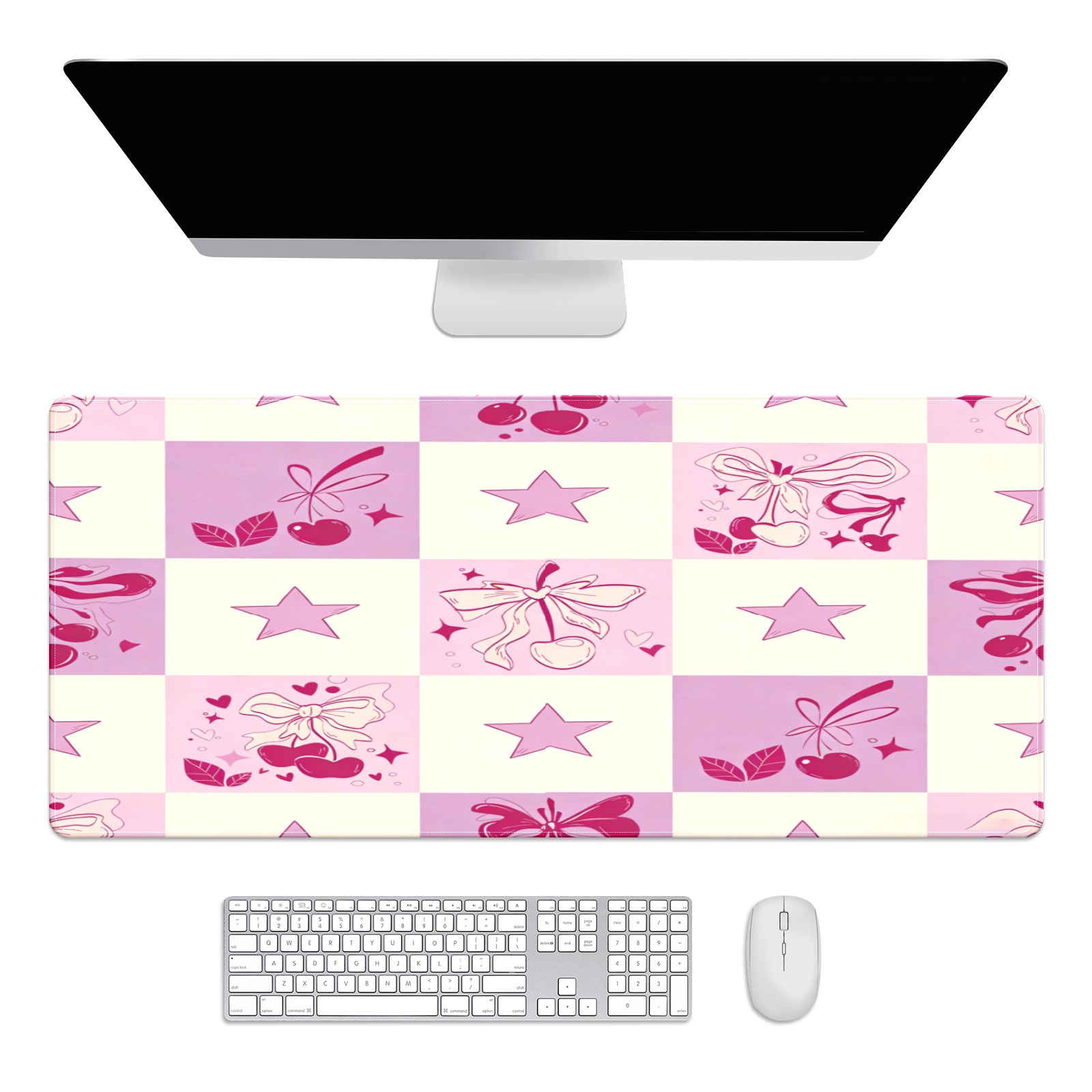 Large Gaming Mouse Pad (90x40cm), Extended Waterproof Desk Mat with Non-Slip Rubber Base, Dreamy Star Pink for Gamers, Office & Home