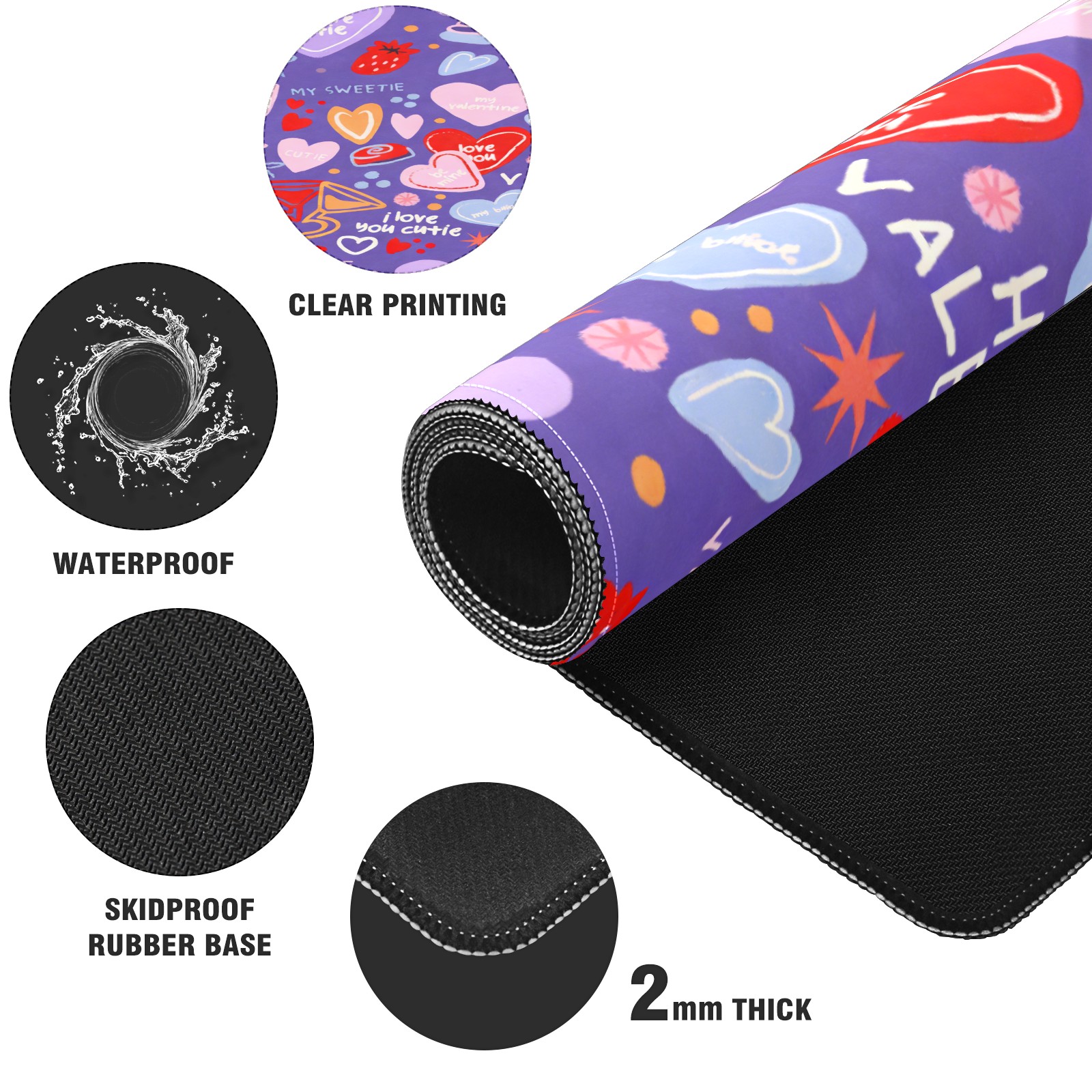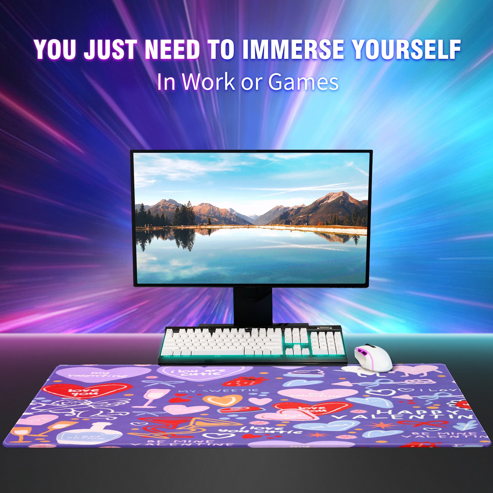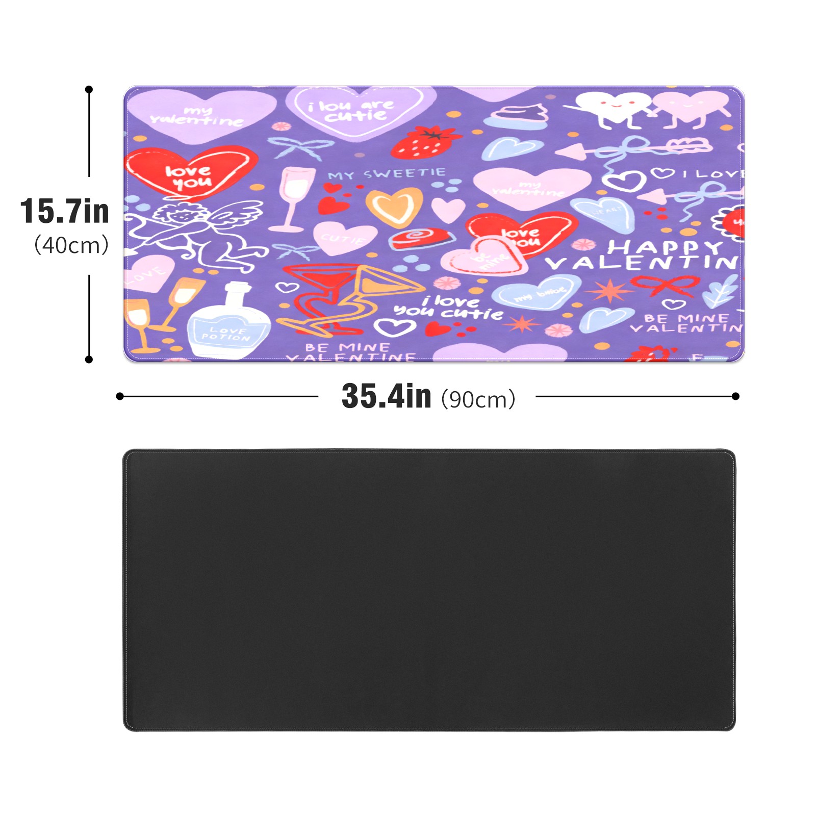 Large Gaming Mouse Pad (90x40cm), Extended Waterproof Desk Mat with Non-Slip Rubber Base, Sweet Heart Purple for Gamers, Office & Home