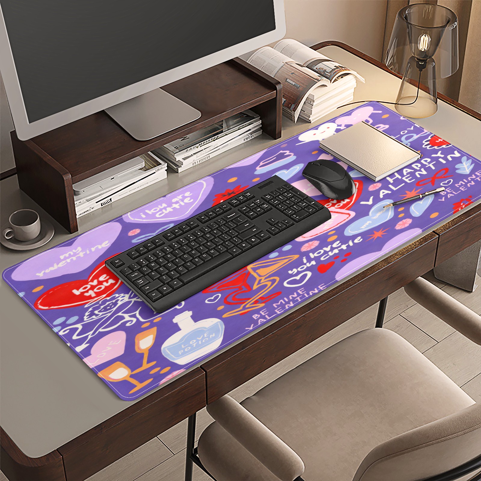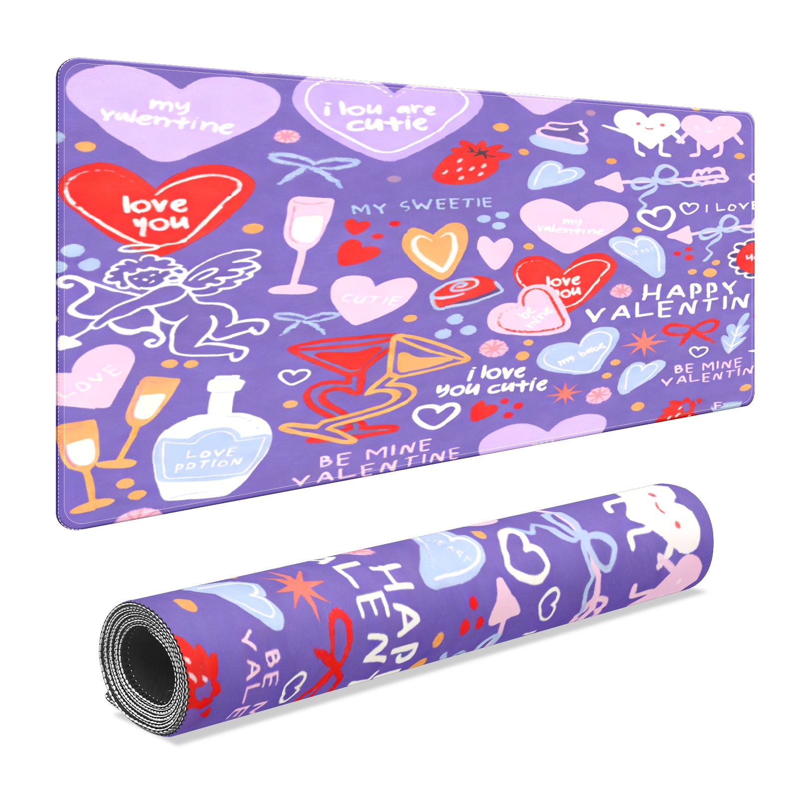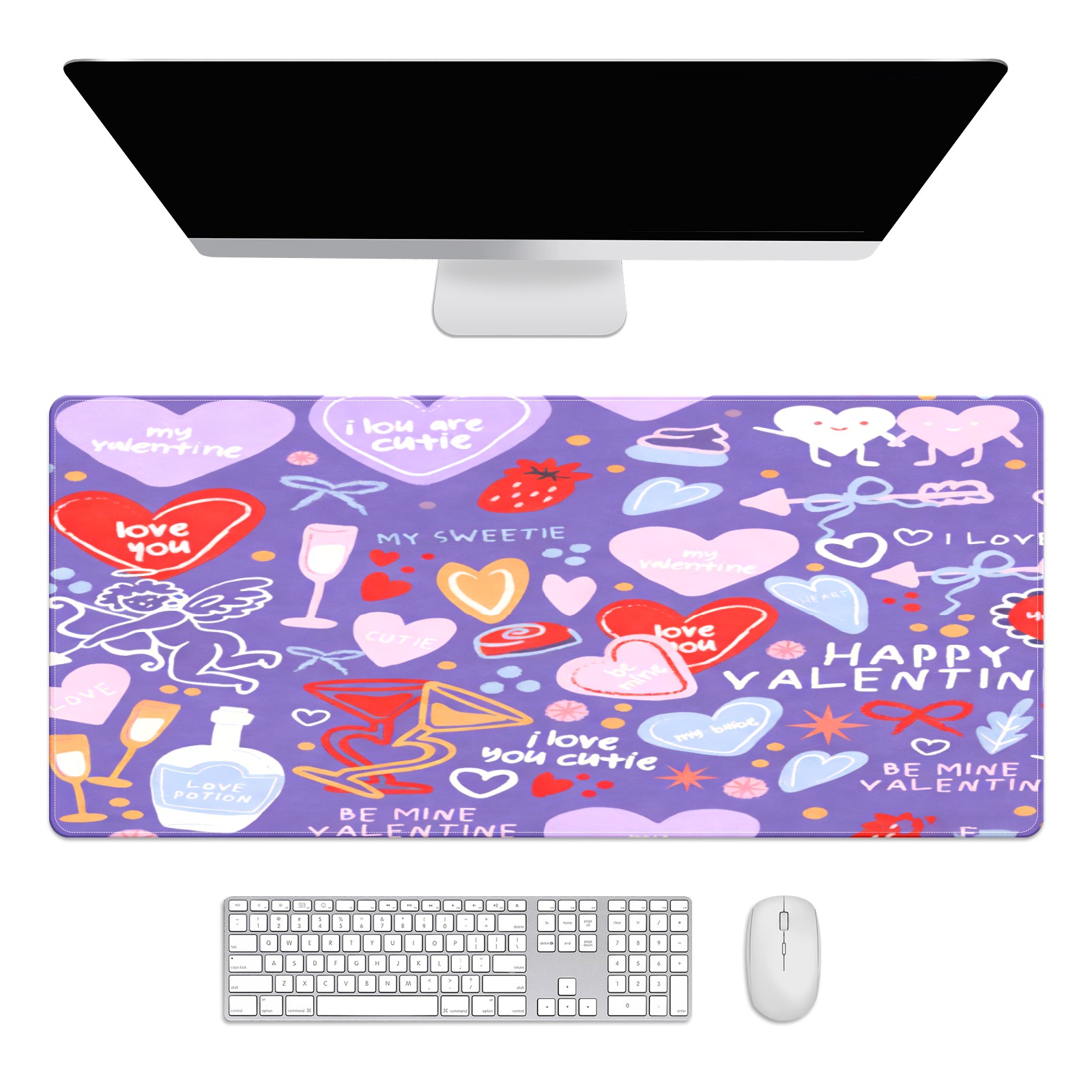 Large Gaming Mouse Pad (90x40cm), Extended Waterproof Desk Mat with Non-Slip Rubber Base, Sweet Heart Purple for Gamers, Office & Home