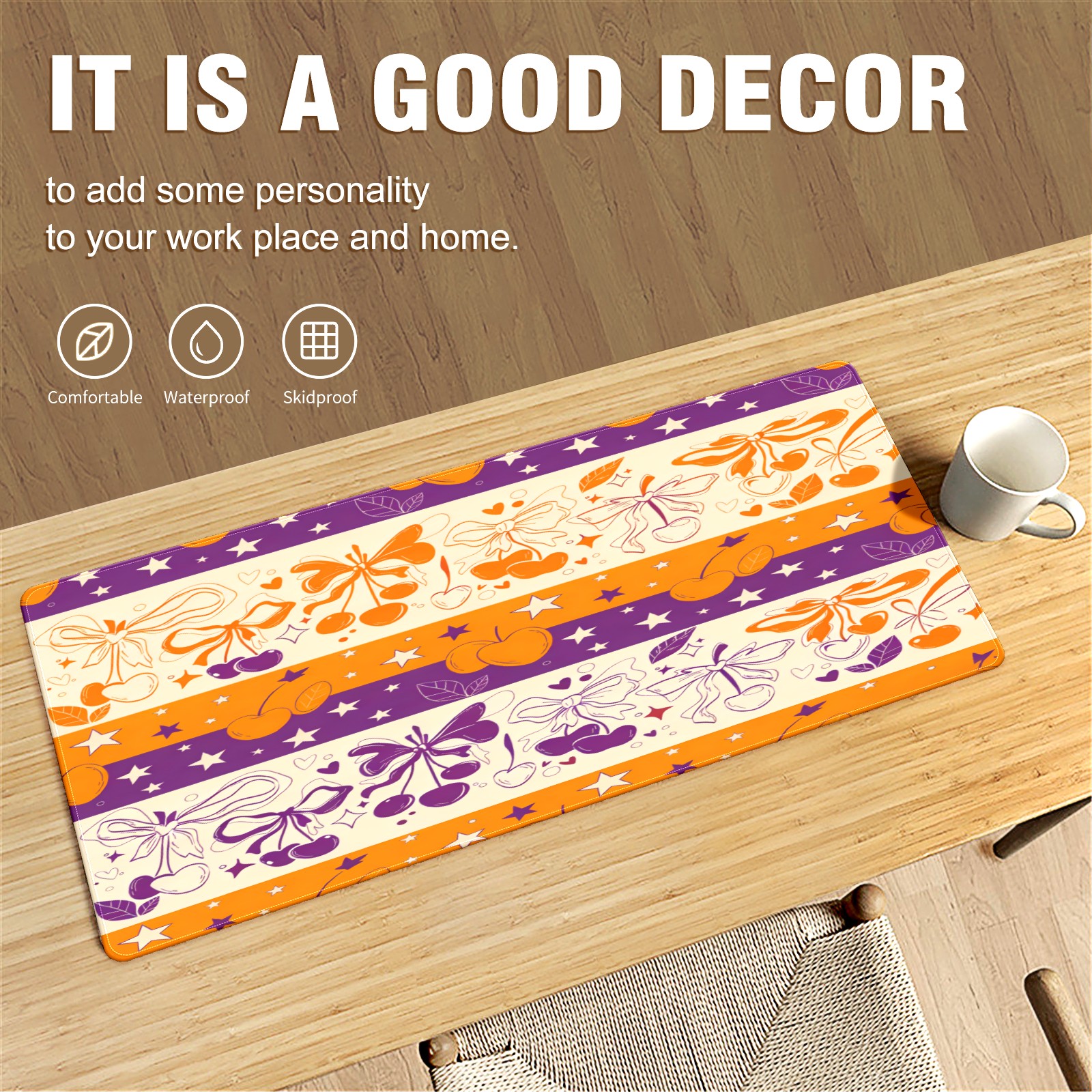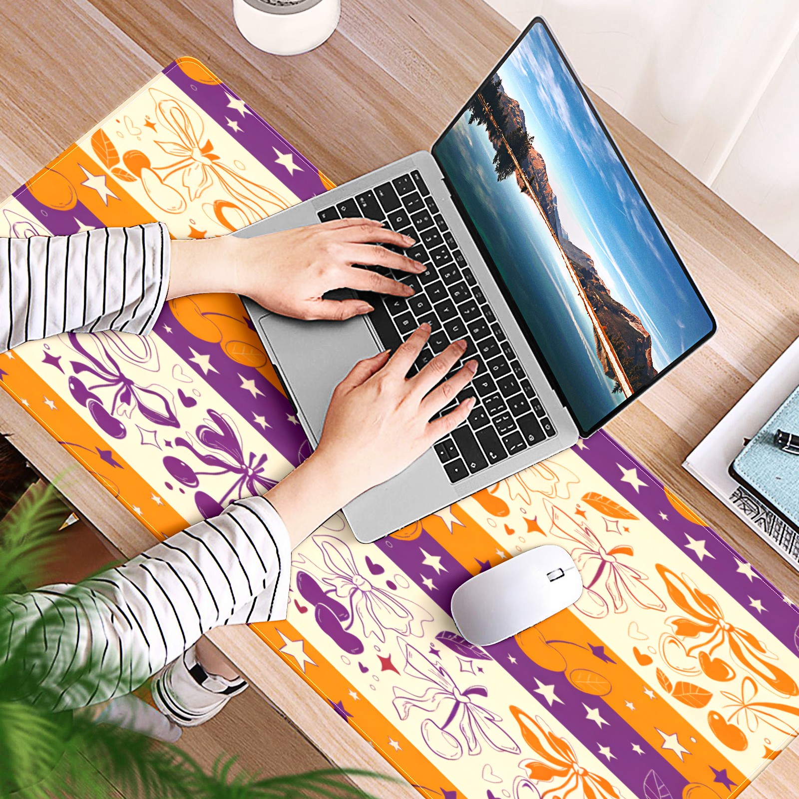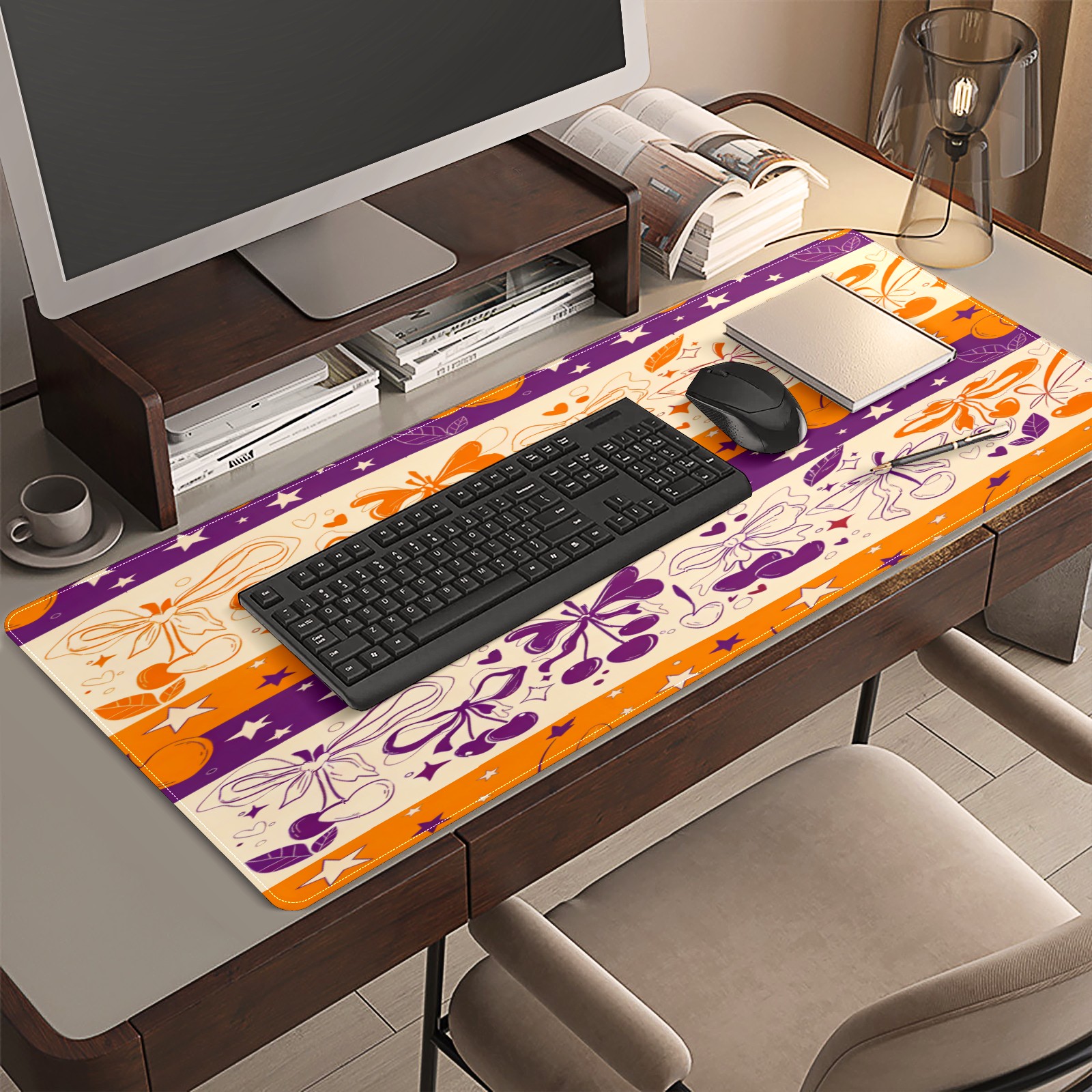 Large Gaming Mouse Pad (90x40cm), Extended Waterproof Desk Mat with Non-Slip Rubber Base, Lively Holiday Orange for Gamers, Office & Home