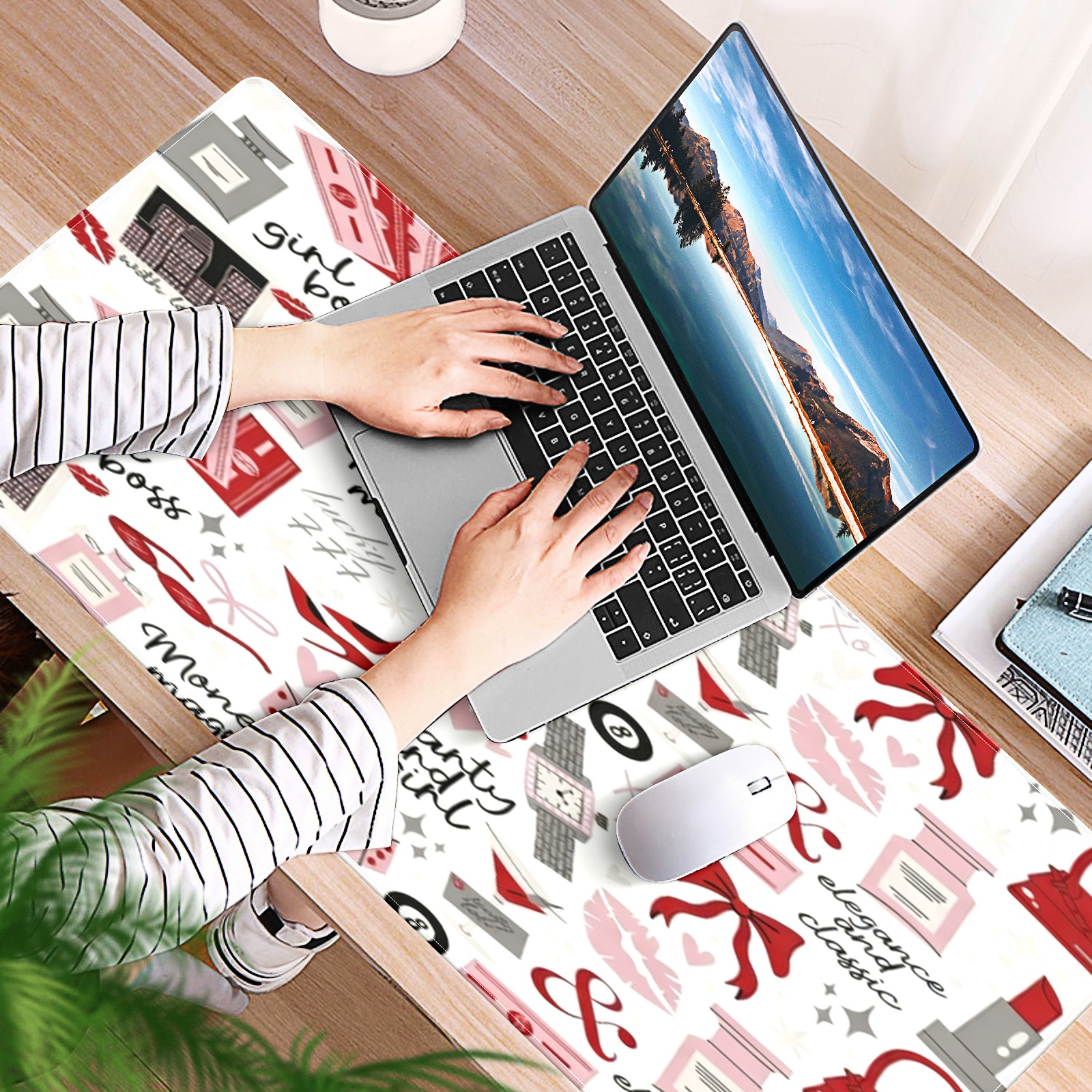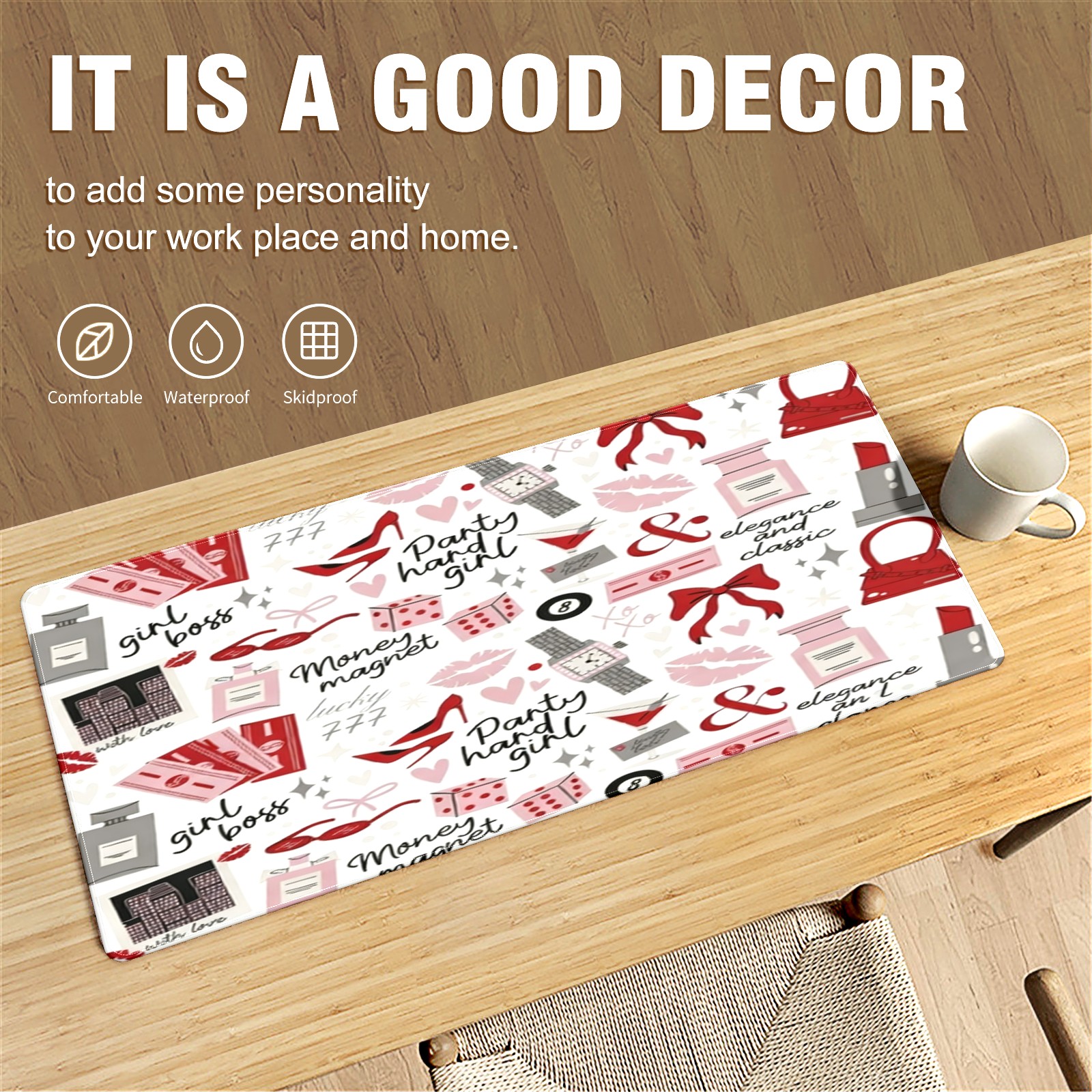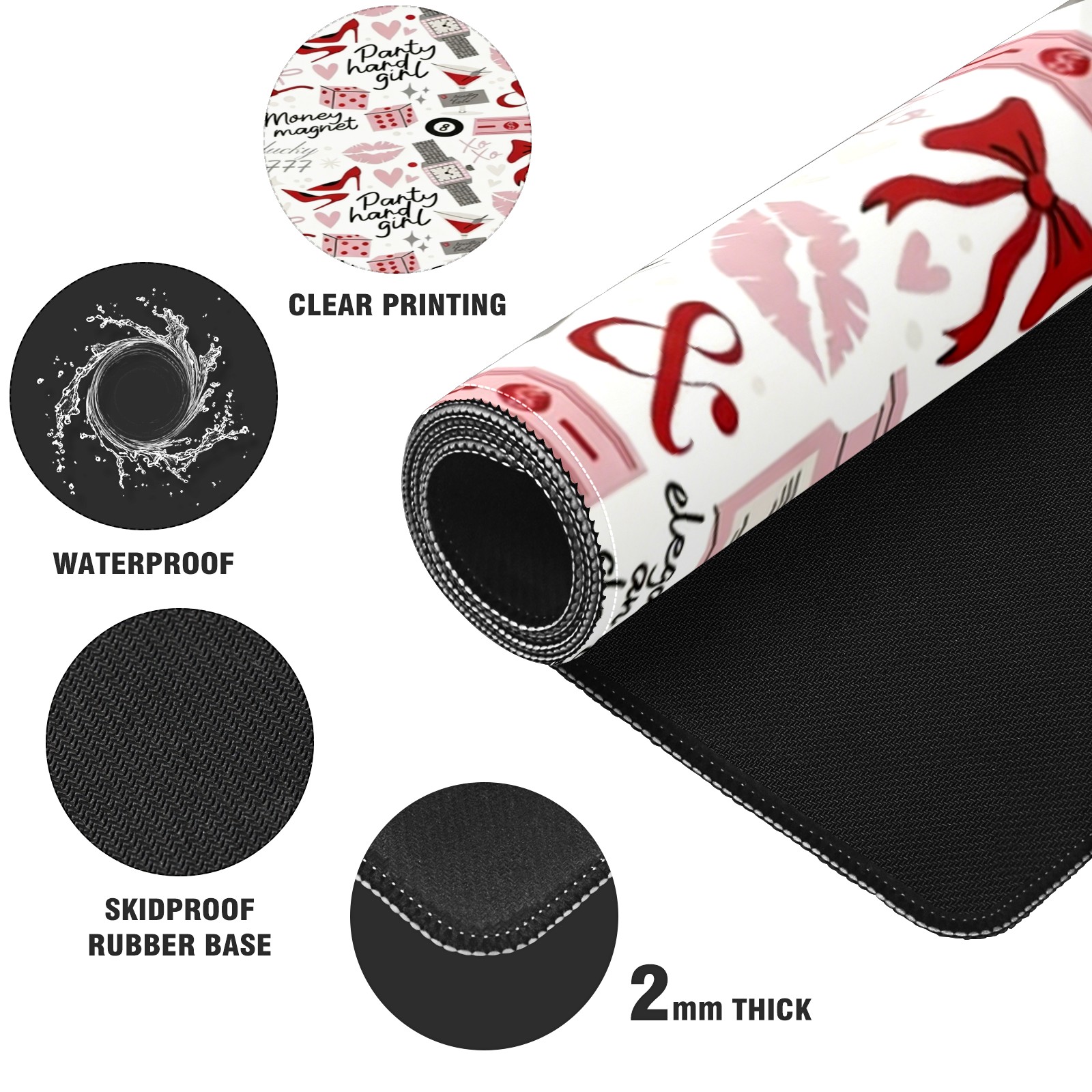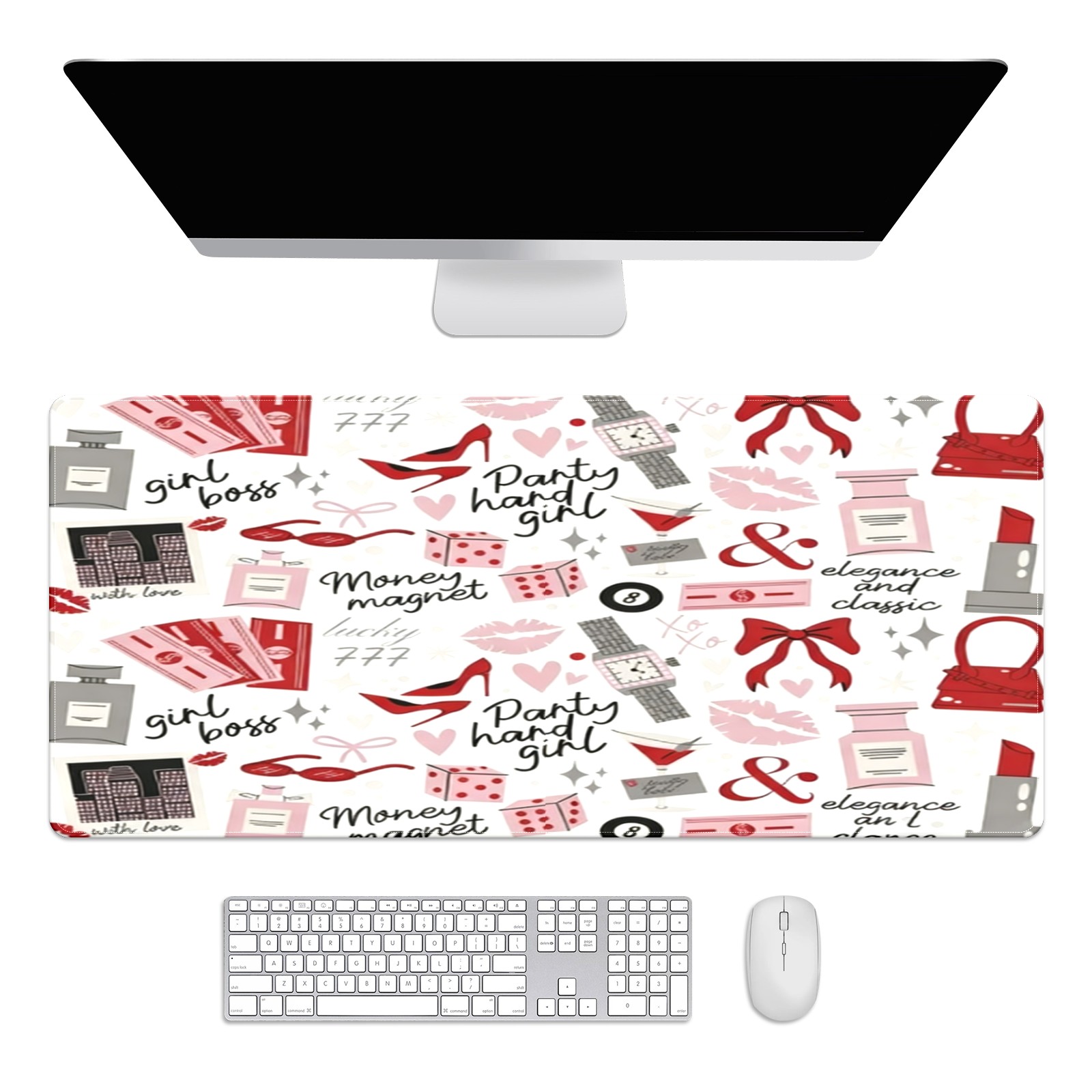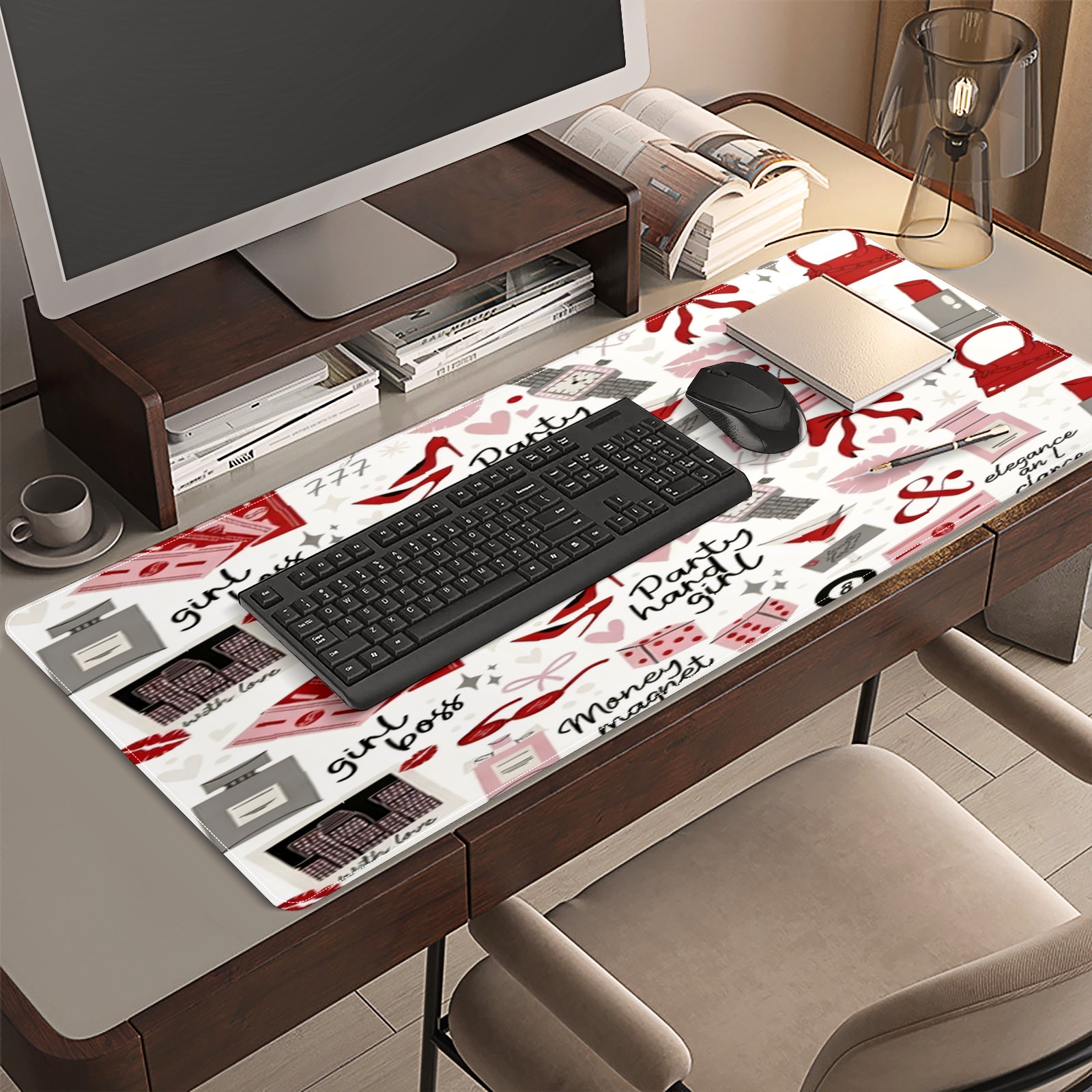 Large Gaming Mouse Pad (90x40cm), Extended Waterproof Desk Mat with Non-Slip Rubber Base, Playful Text Red for Gamers, Office & Home