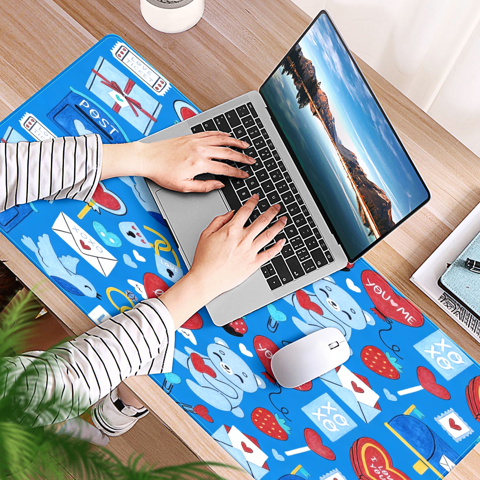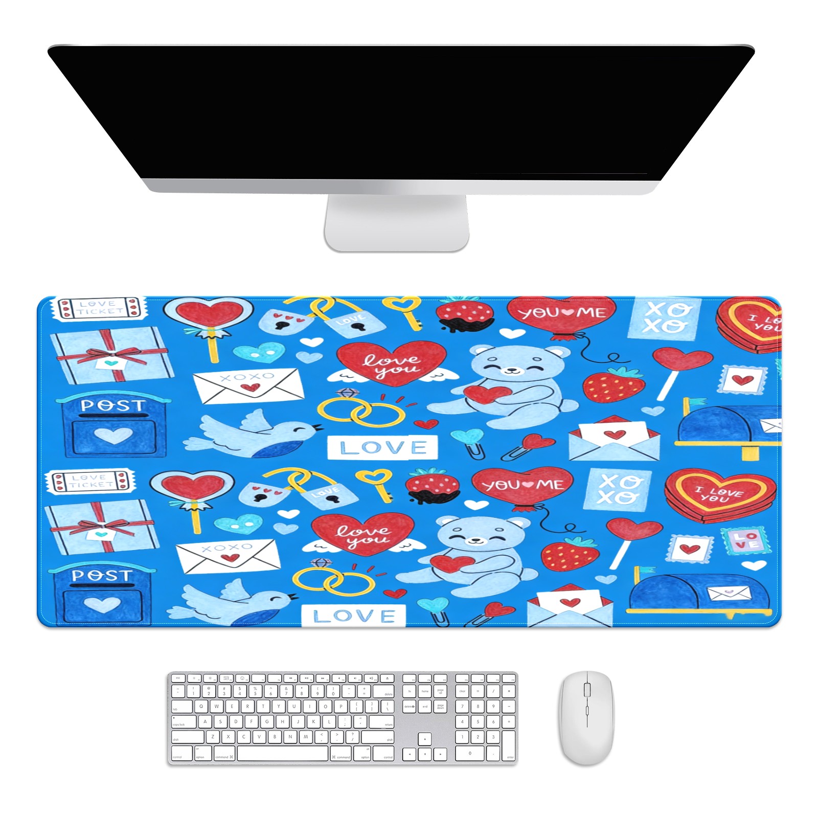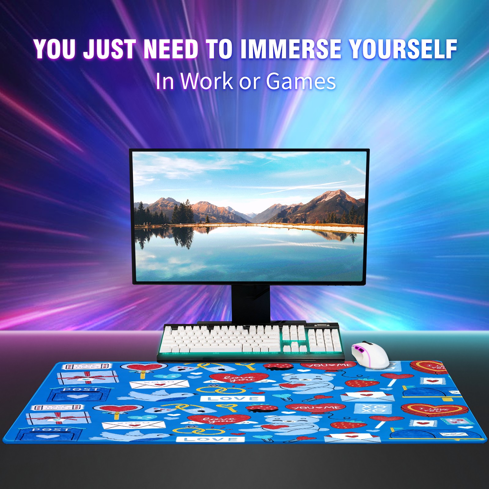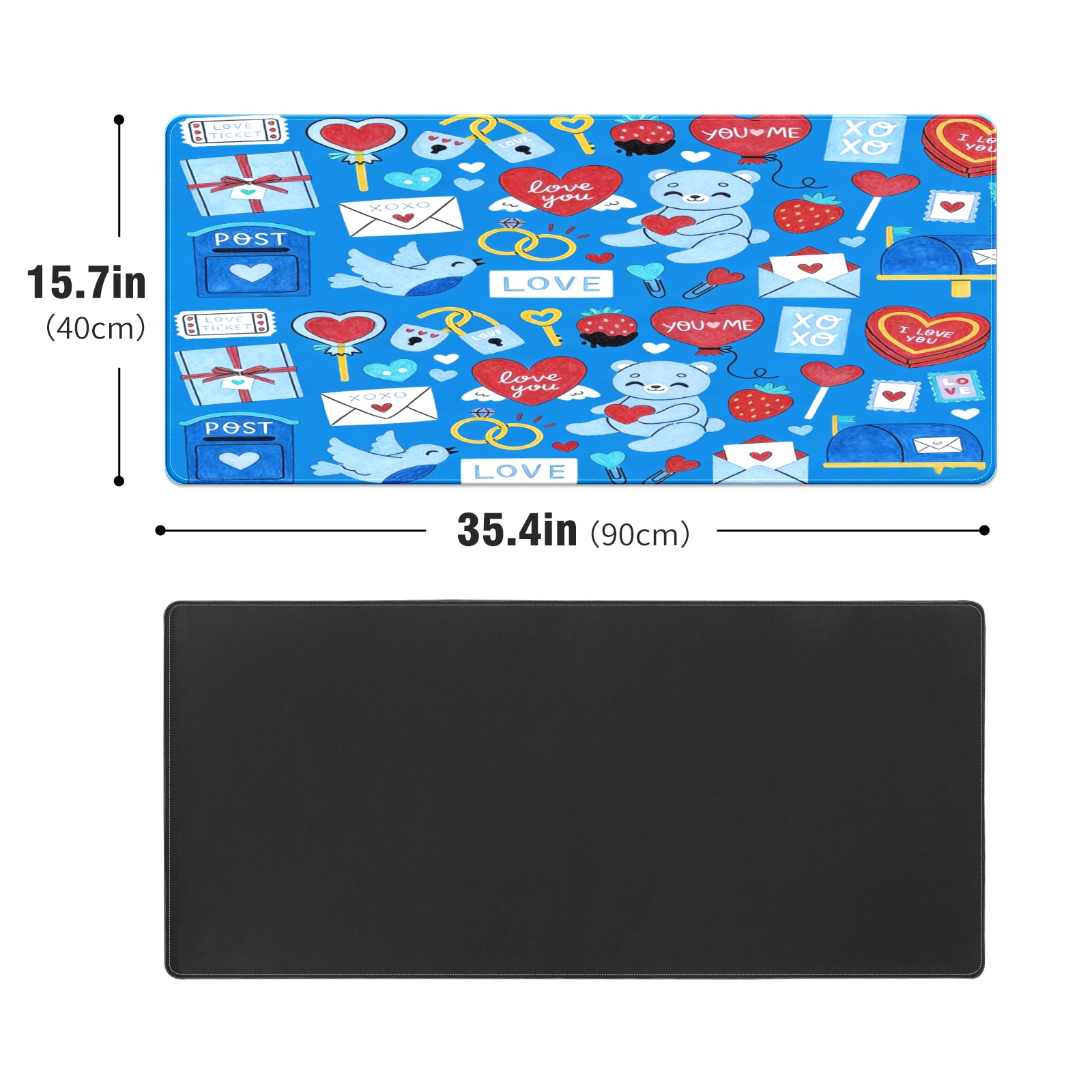 Large Gaming Mouse Pad (90x40cm), Extended Waterproof Desk Mat with Non-Slip Rubber Base, Heart Element Blue for Gamers, Office & Home