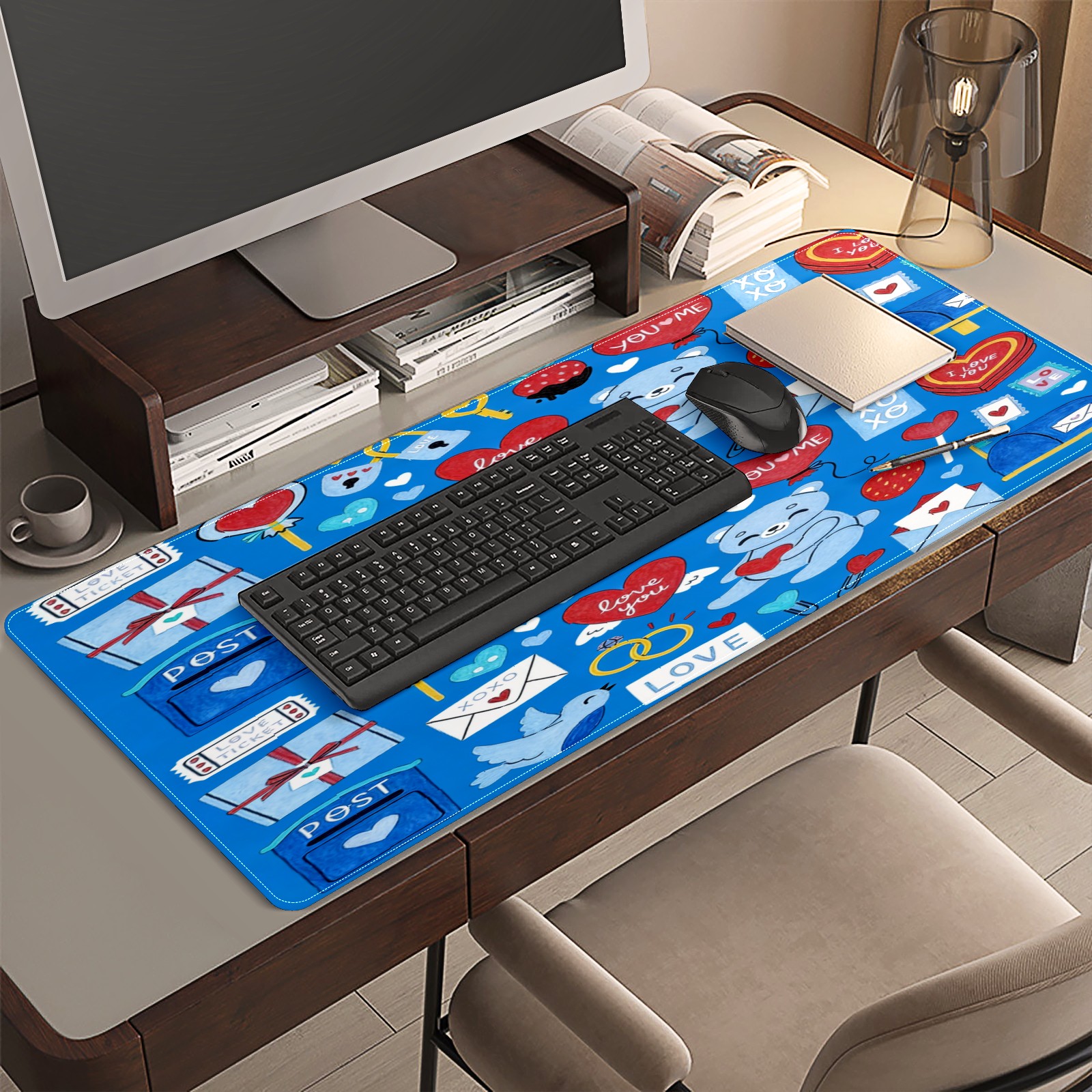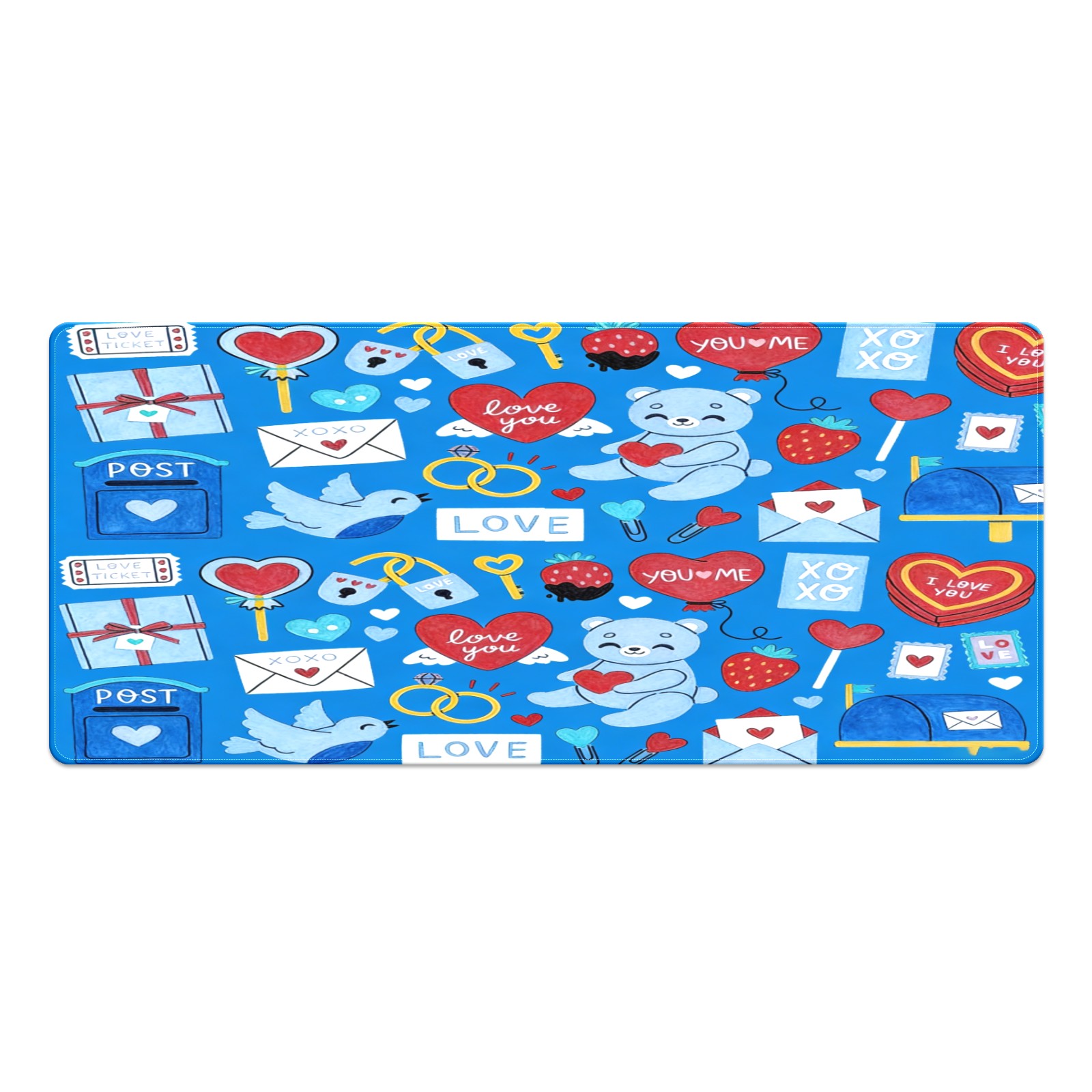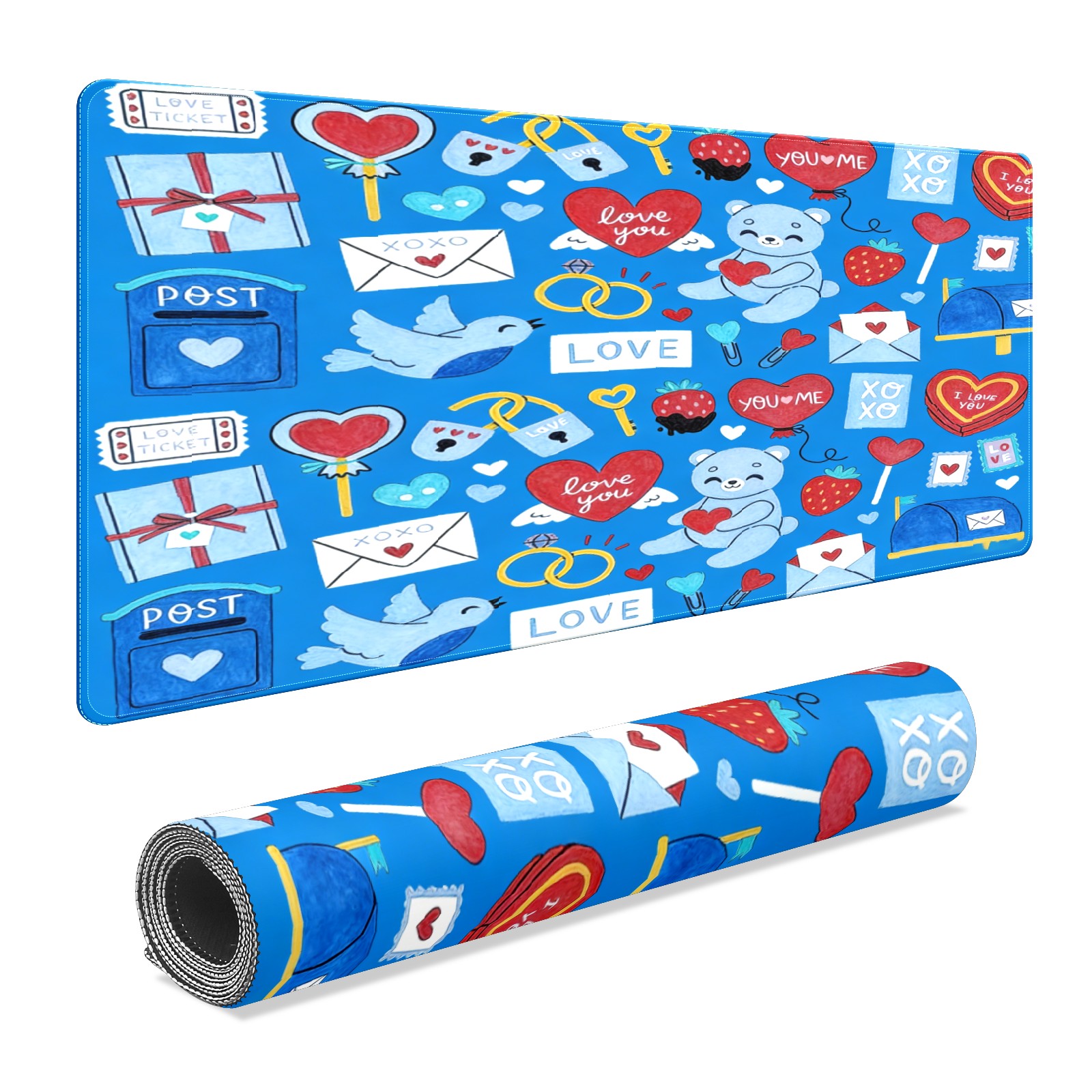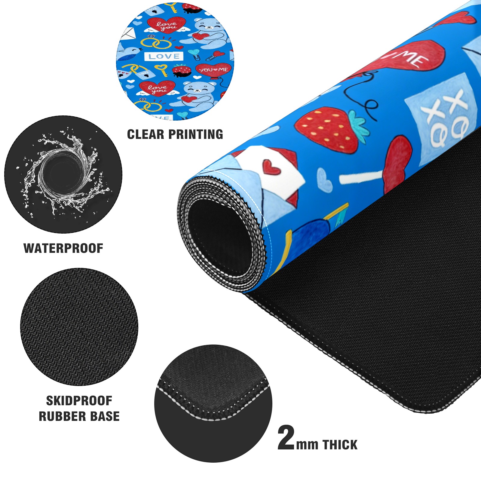 Large Gaming Mouse Pad (90x40cm), Extended Waterproof Desk Mat with Non-Slip Rubber Base, Heart Element Blue for Gamers, Office & Home