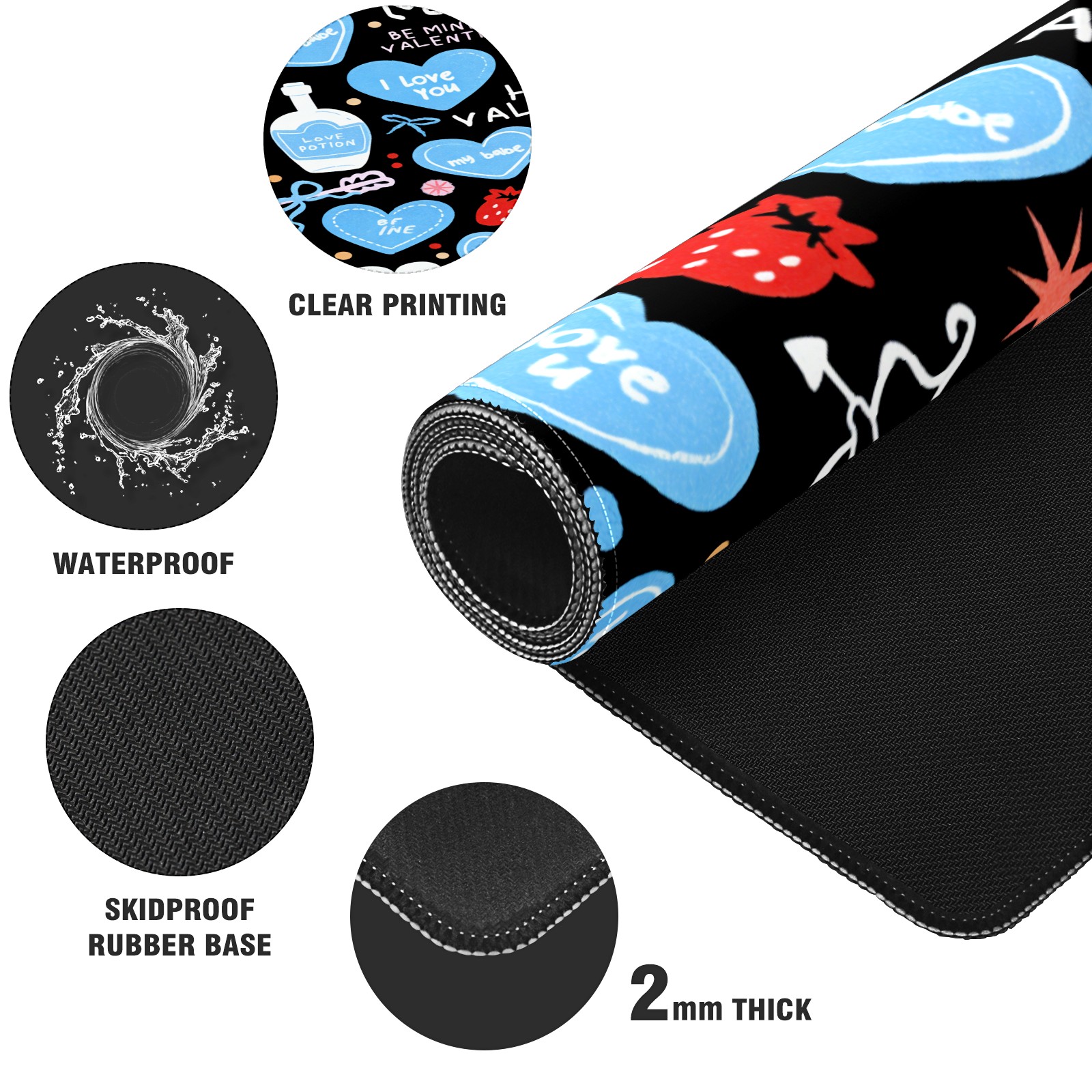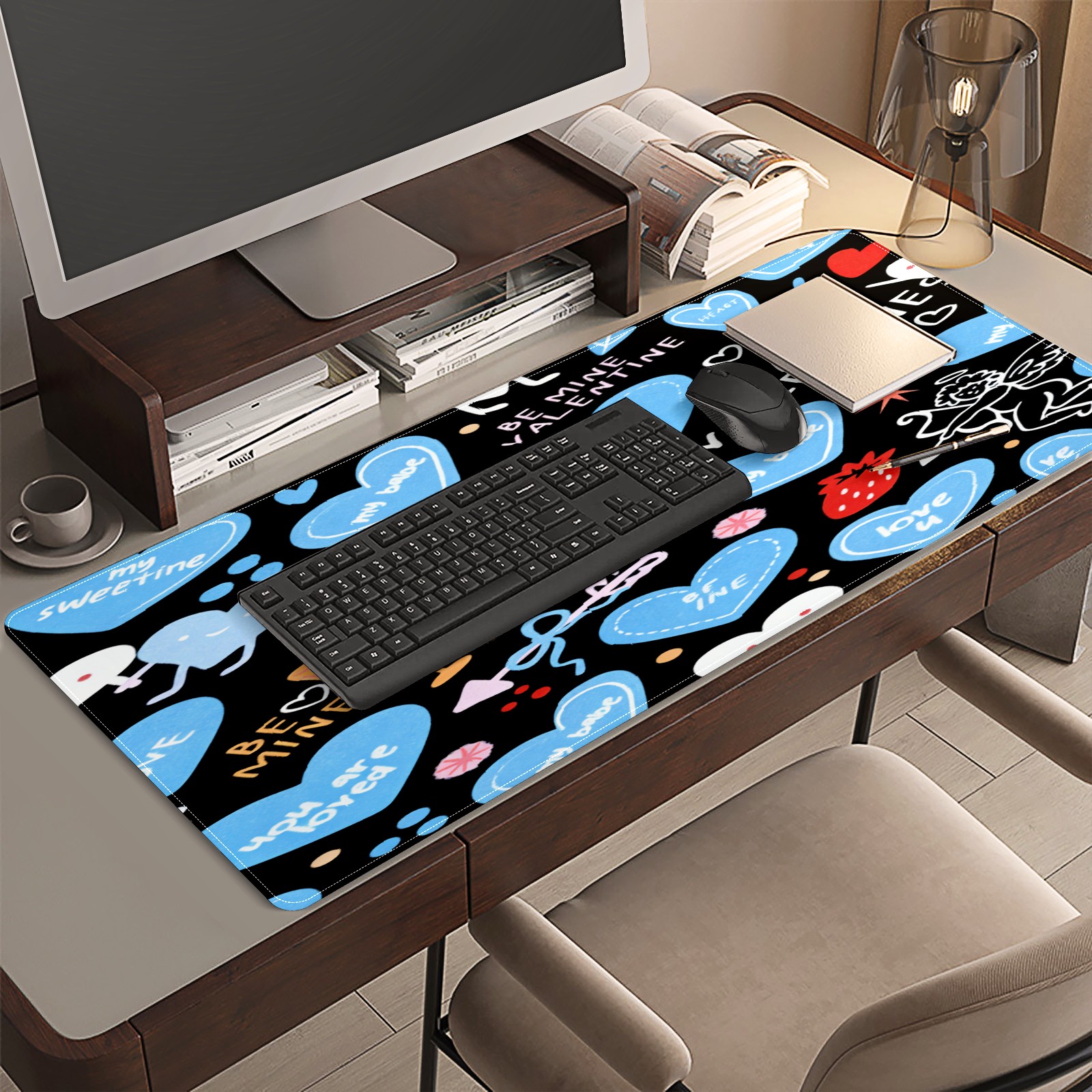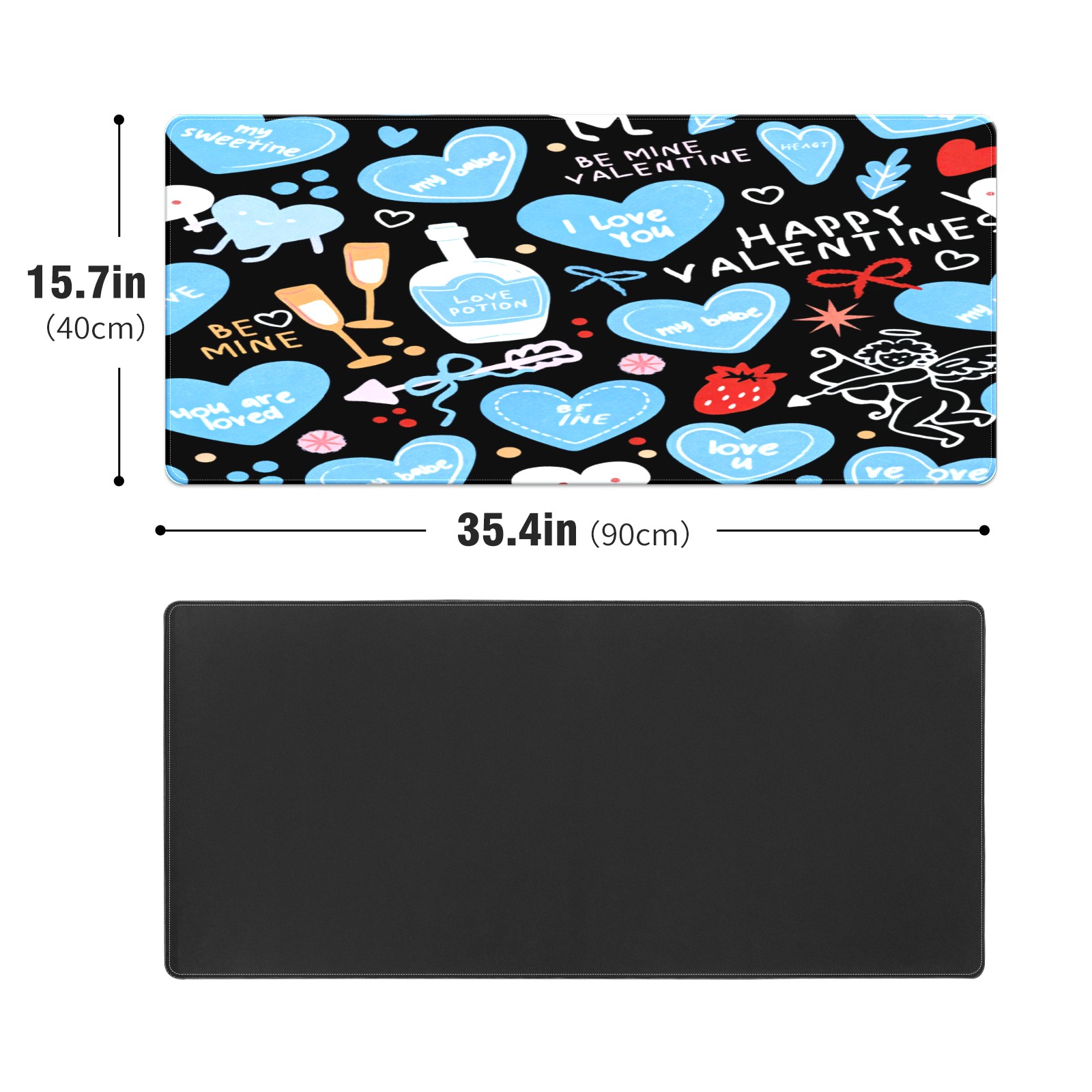 Large Gaming Mouse Pad (90x40cm), Extended Waterproof Desk Mat with Non-Slip Rubber Base, Deep Heart Black for Gamers, Office & Home