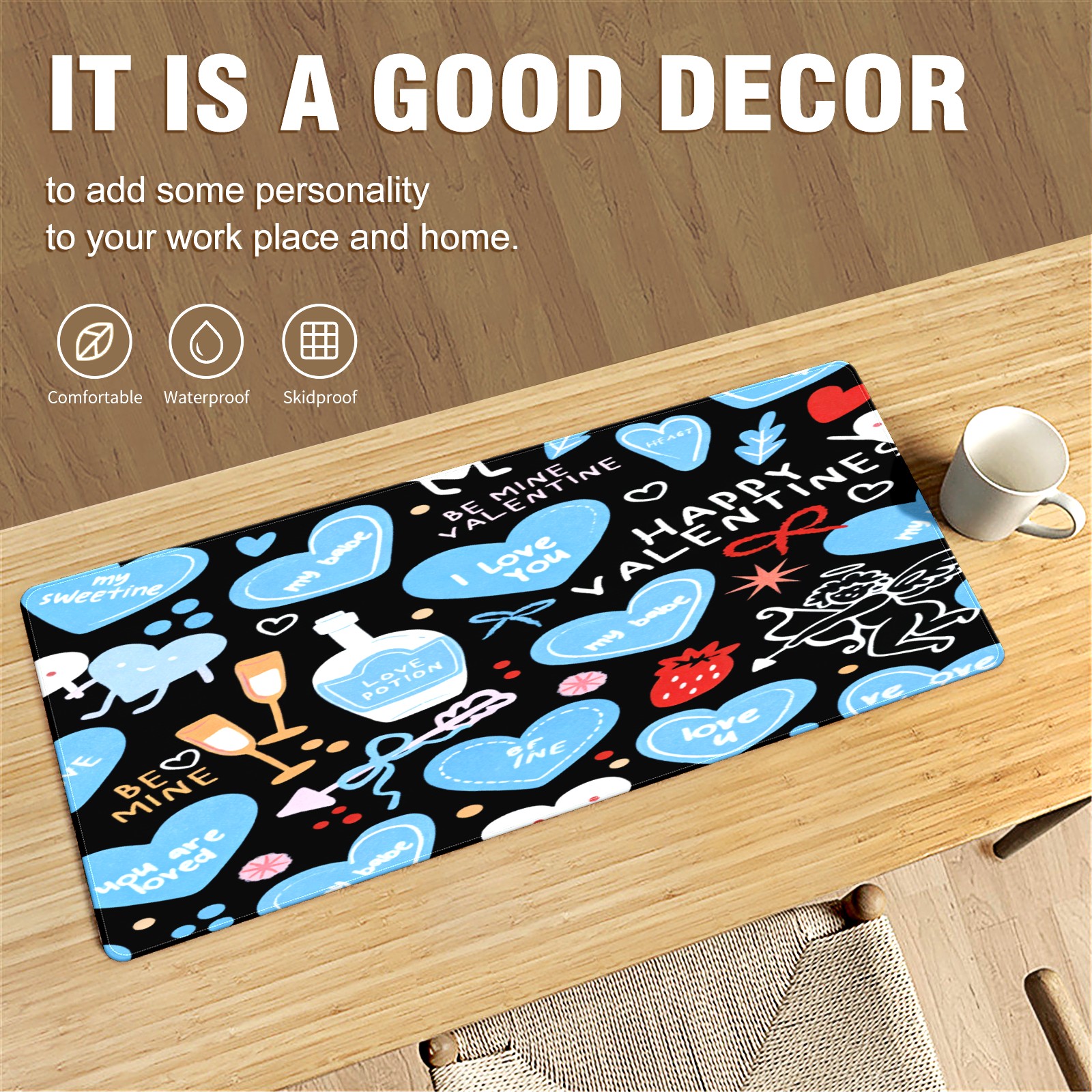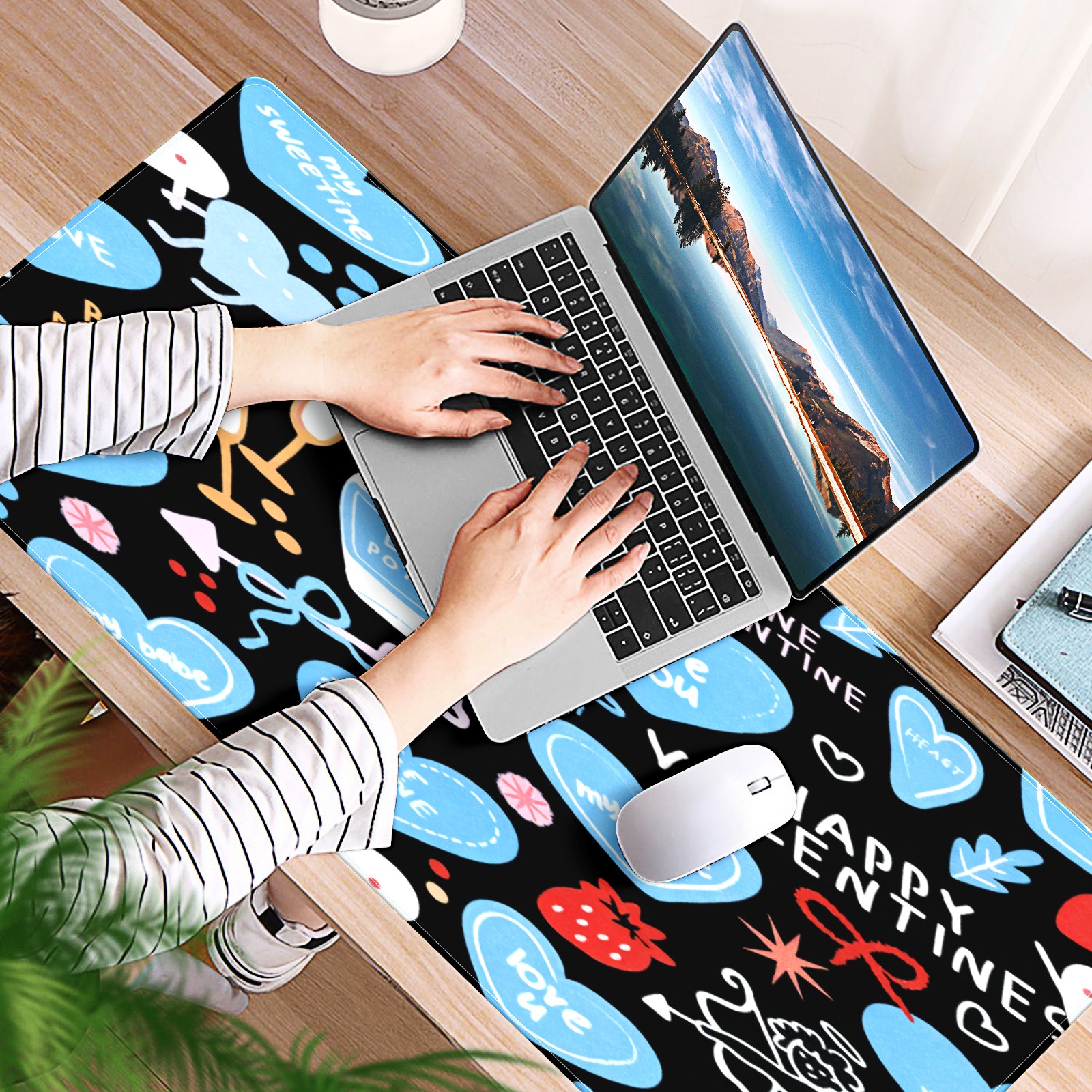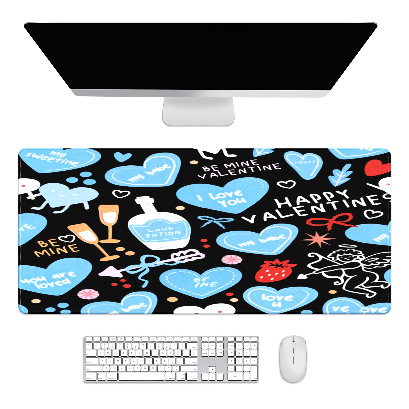 Large Gaming Mouse Pad (90x40cm), Extended Waterproof Desk Mat with Non-Slip Rubber Base, Deep Heart Black for Gamers, Office & Home