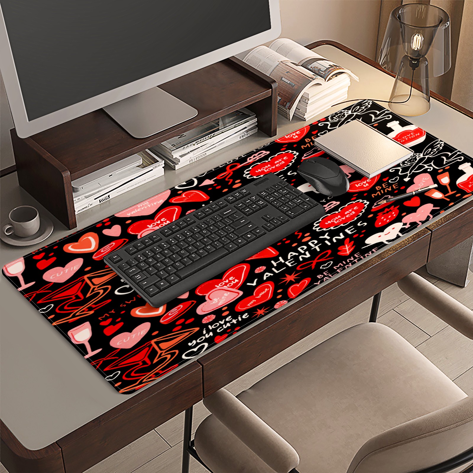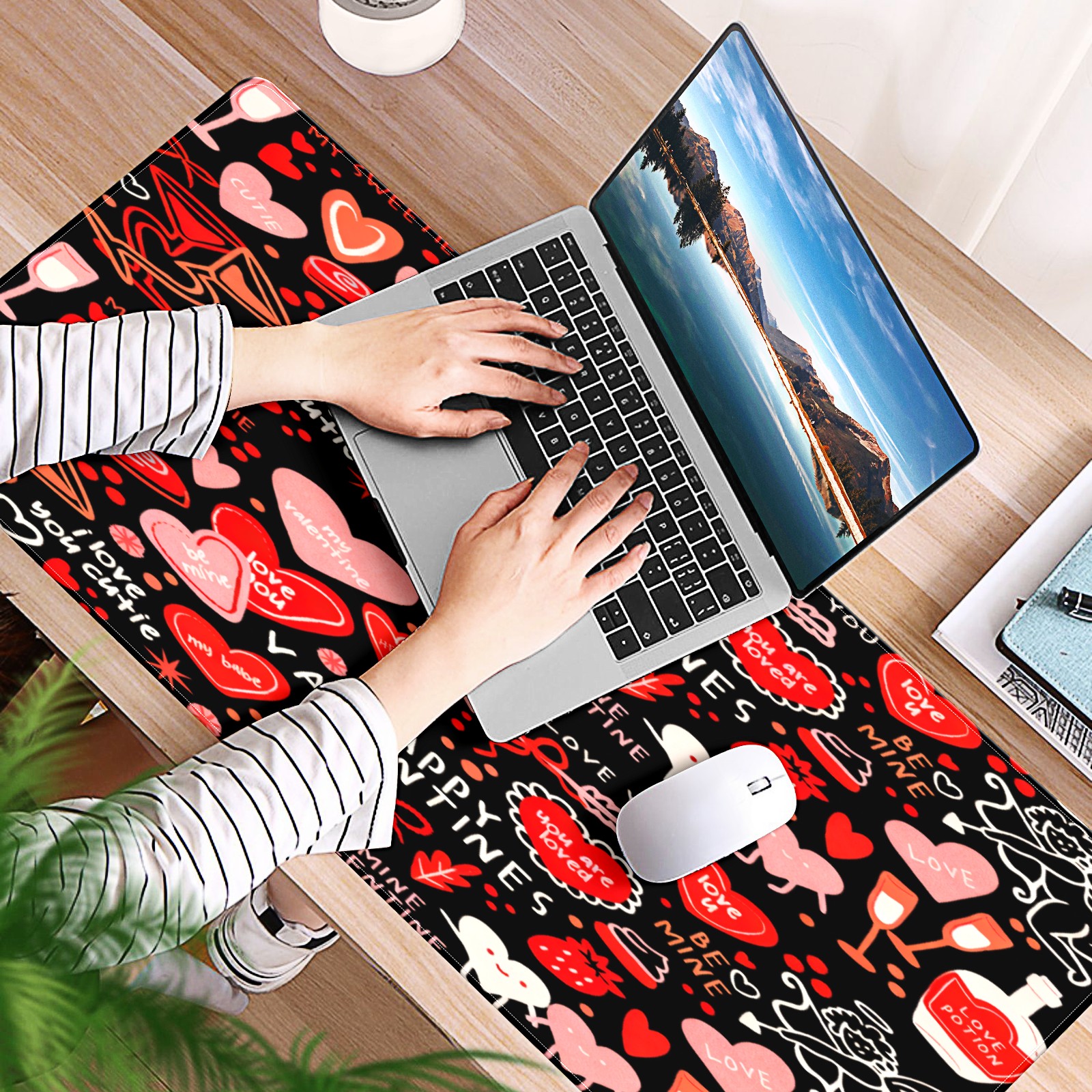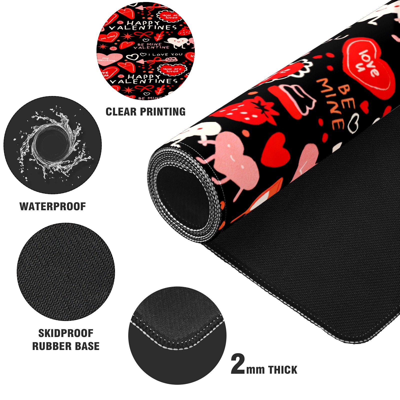 Large Gaming Mouse Pad (90x40cm), Extended Waterproof Desk Mat with Non-Slip Rubber Base, Fiery Heart Red for Gamers, Office & Home