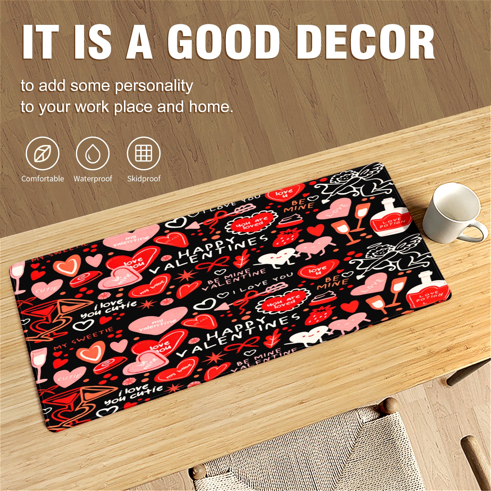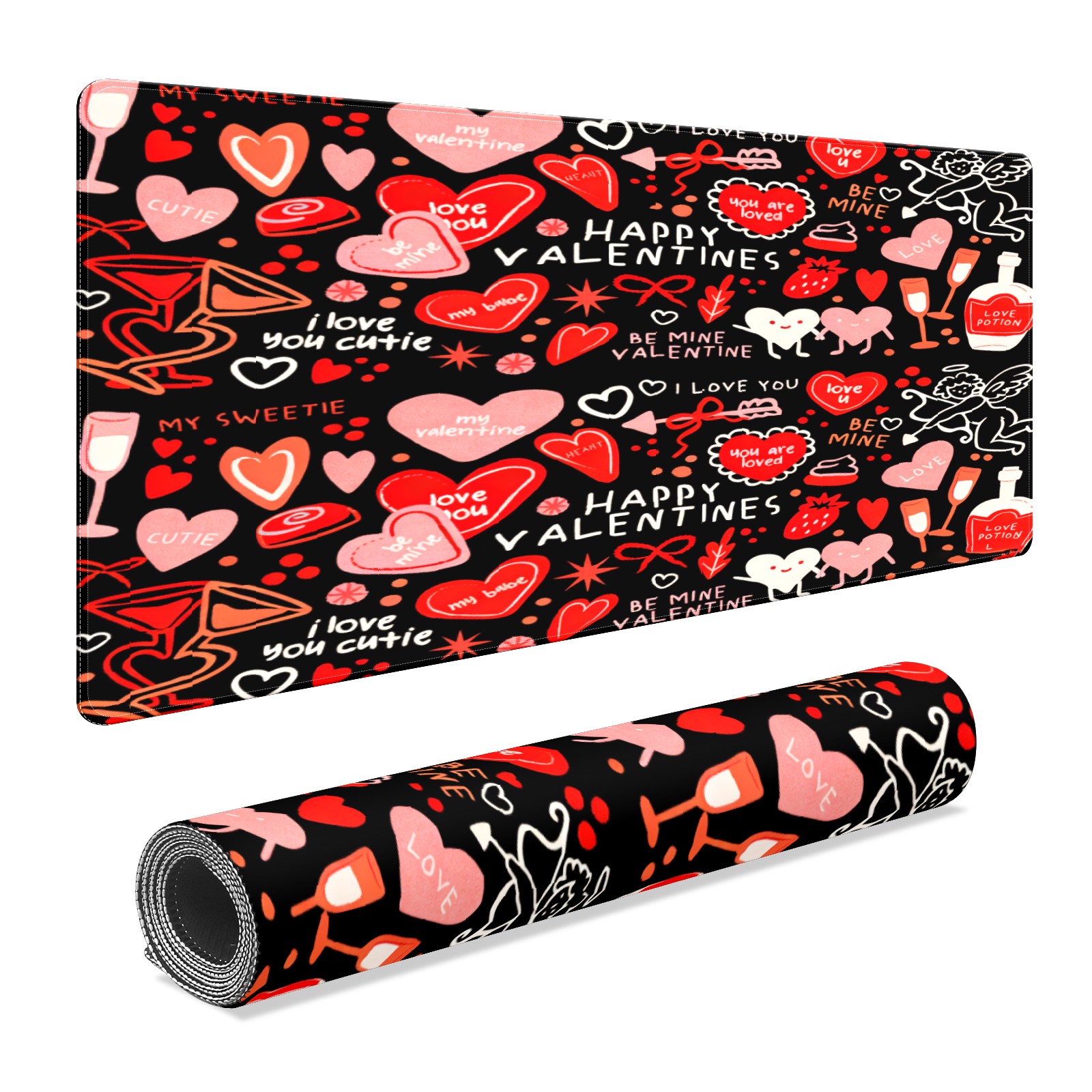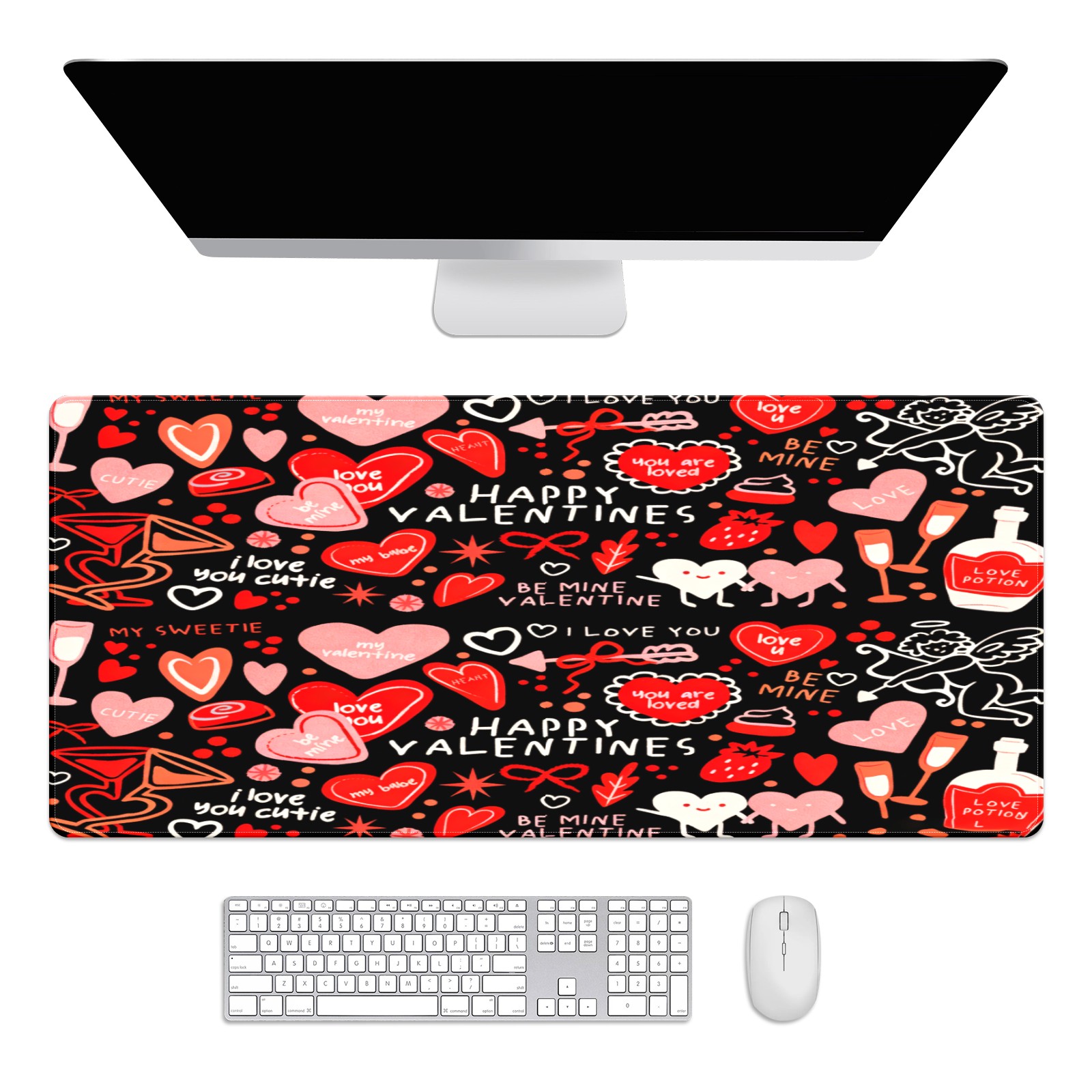 Large Gaming Mouse Pad (90x40cm), Extended Waterproof Desk Mat with Non-Slip Rubber Base, Fiery Heart Red for Gamers, Office & Home