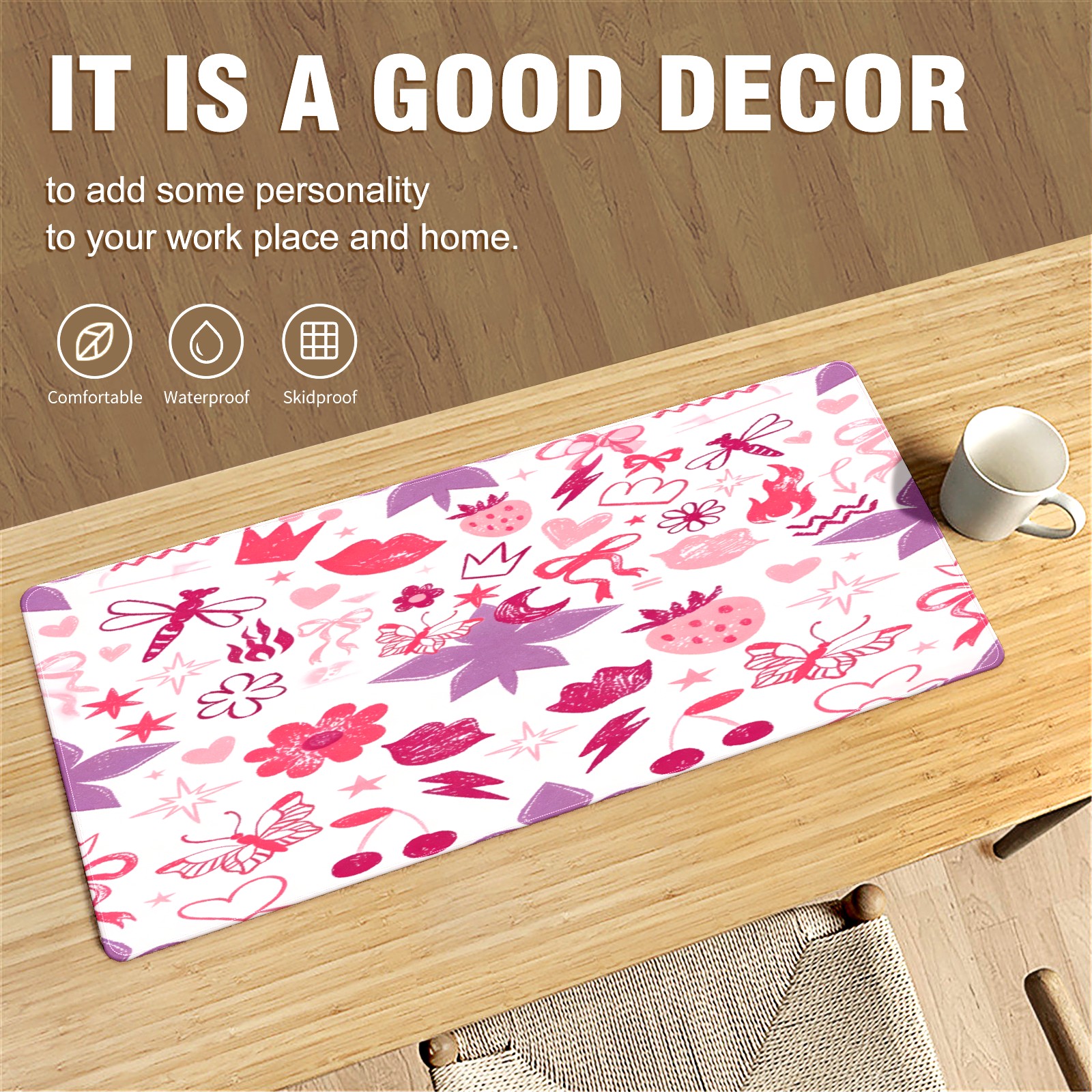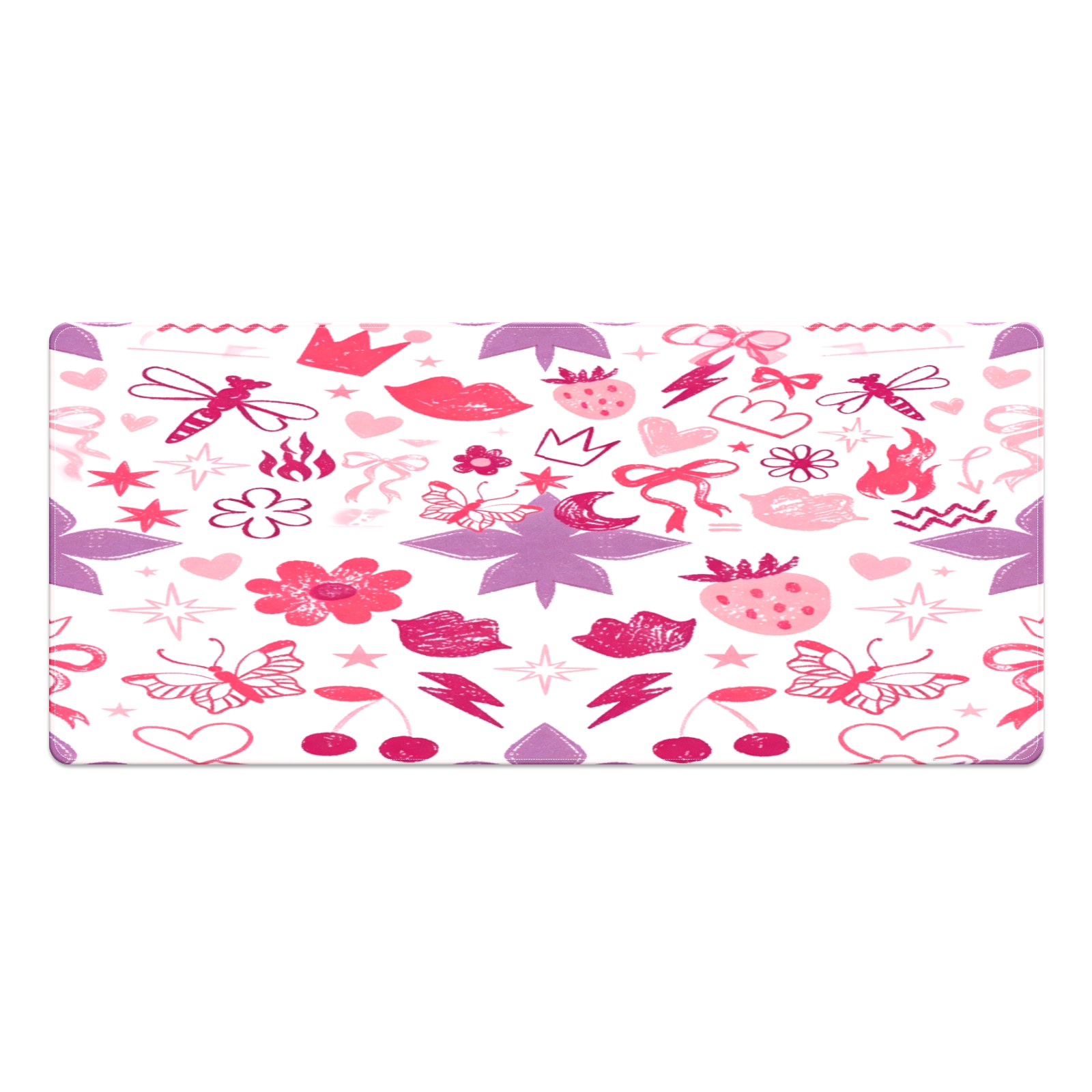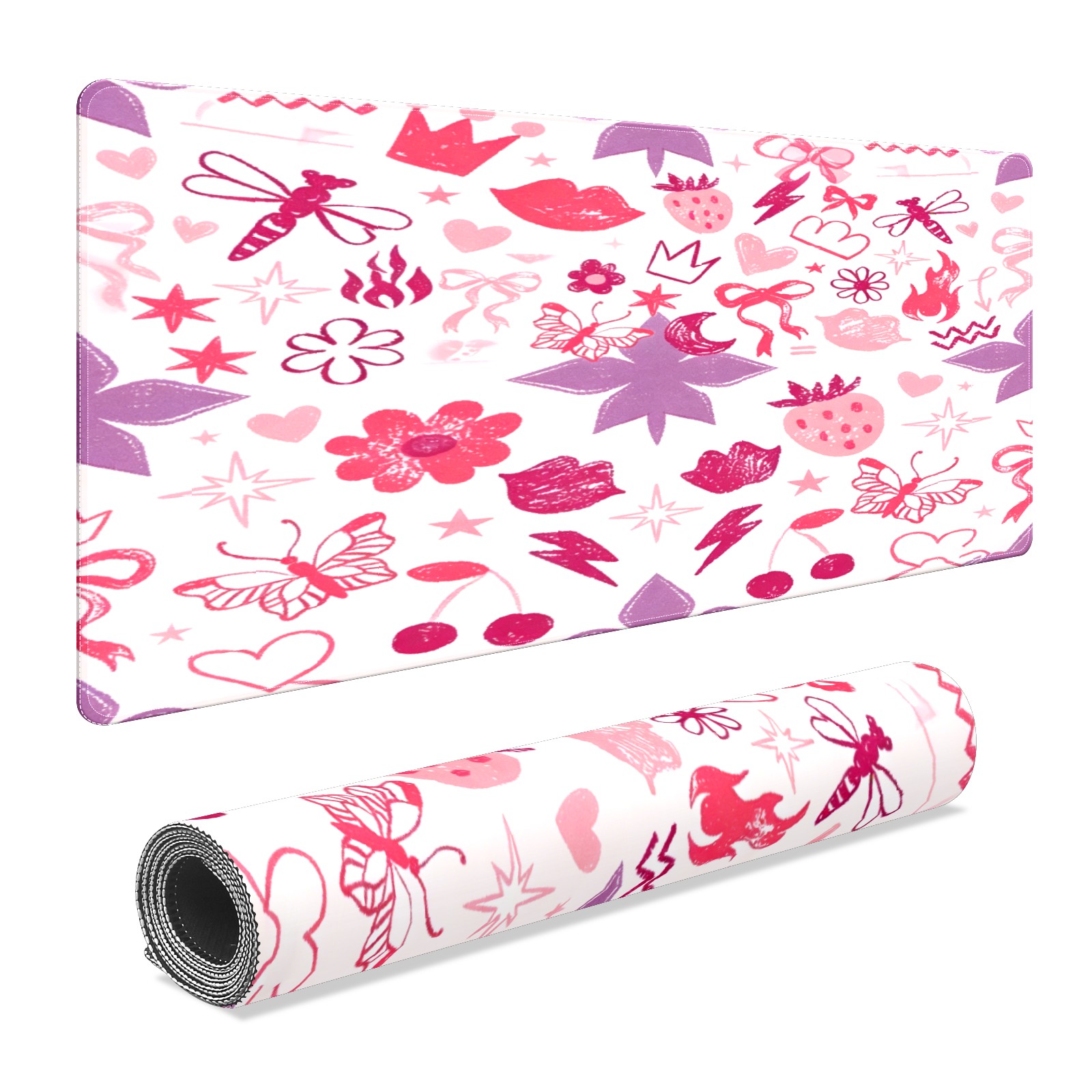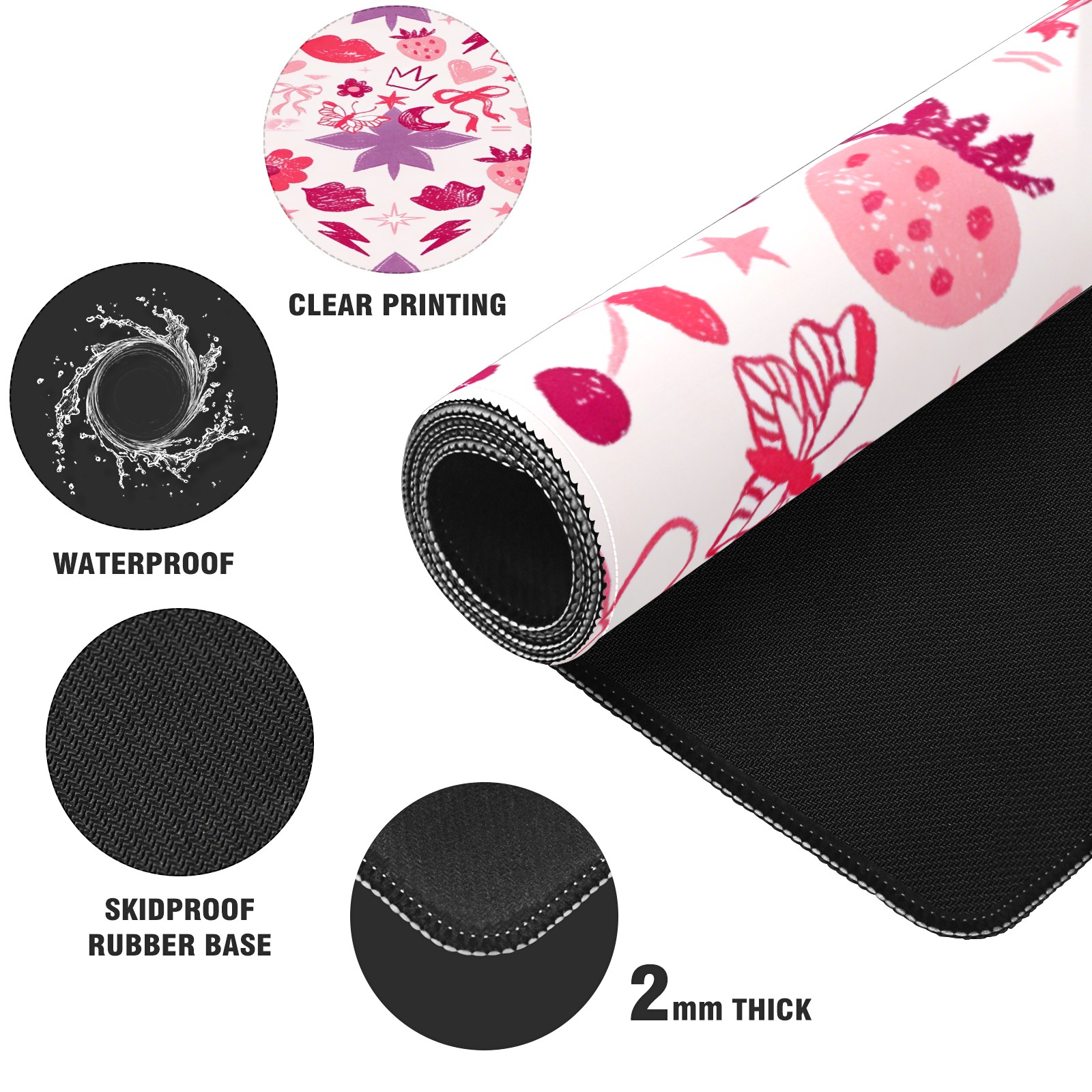 Large Gaming Mouse Pad (90x40cm), Extended Waterproof Desk Mat with Non-Slip Rubber Base, Soft Floral Heart Pink for Gamers, Office & Home