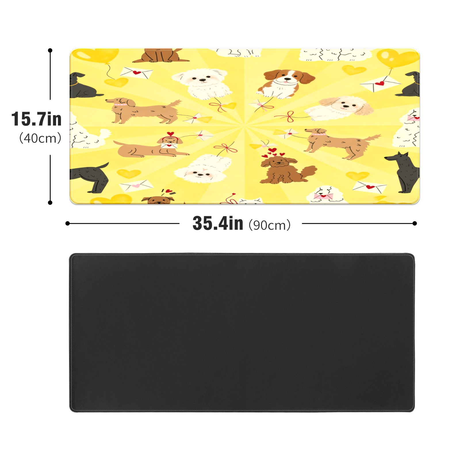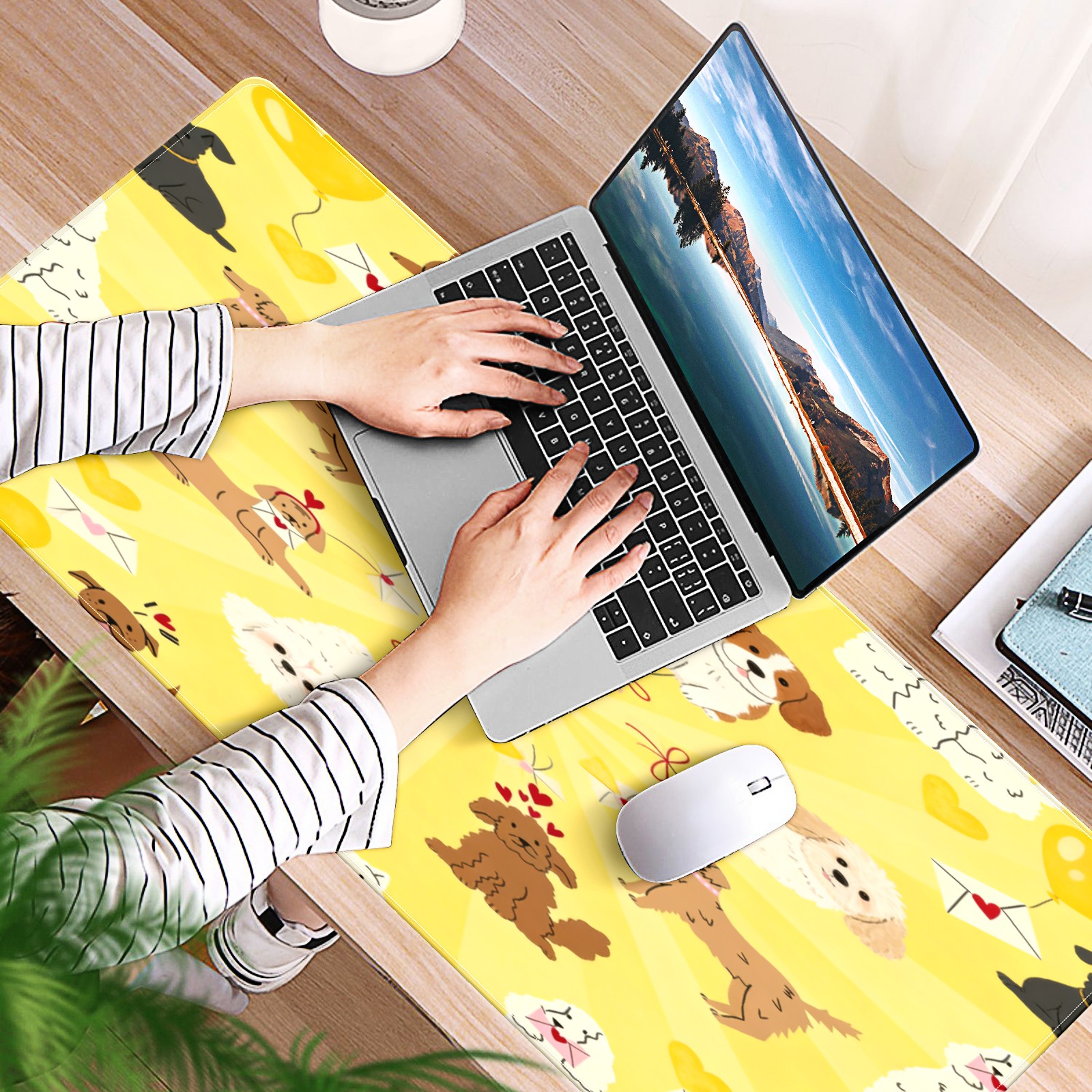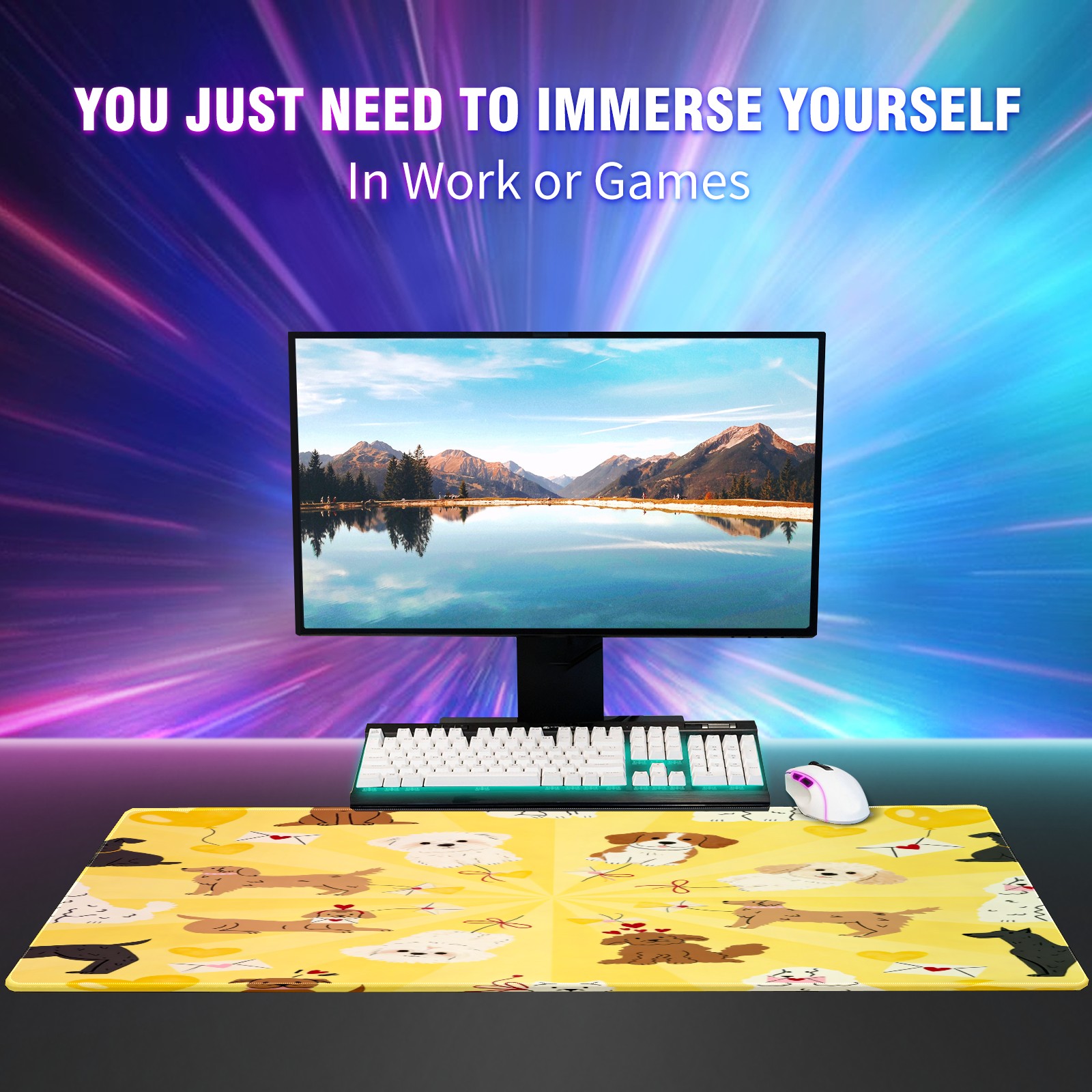 Large Gaming Mouse Pad (90x40cm), Extended Waterproof Desk Mat with Non-Slip Rubber Base, Warm Dog Yellow for Gamers, Office & Home