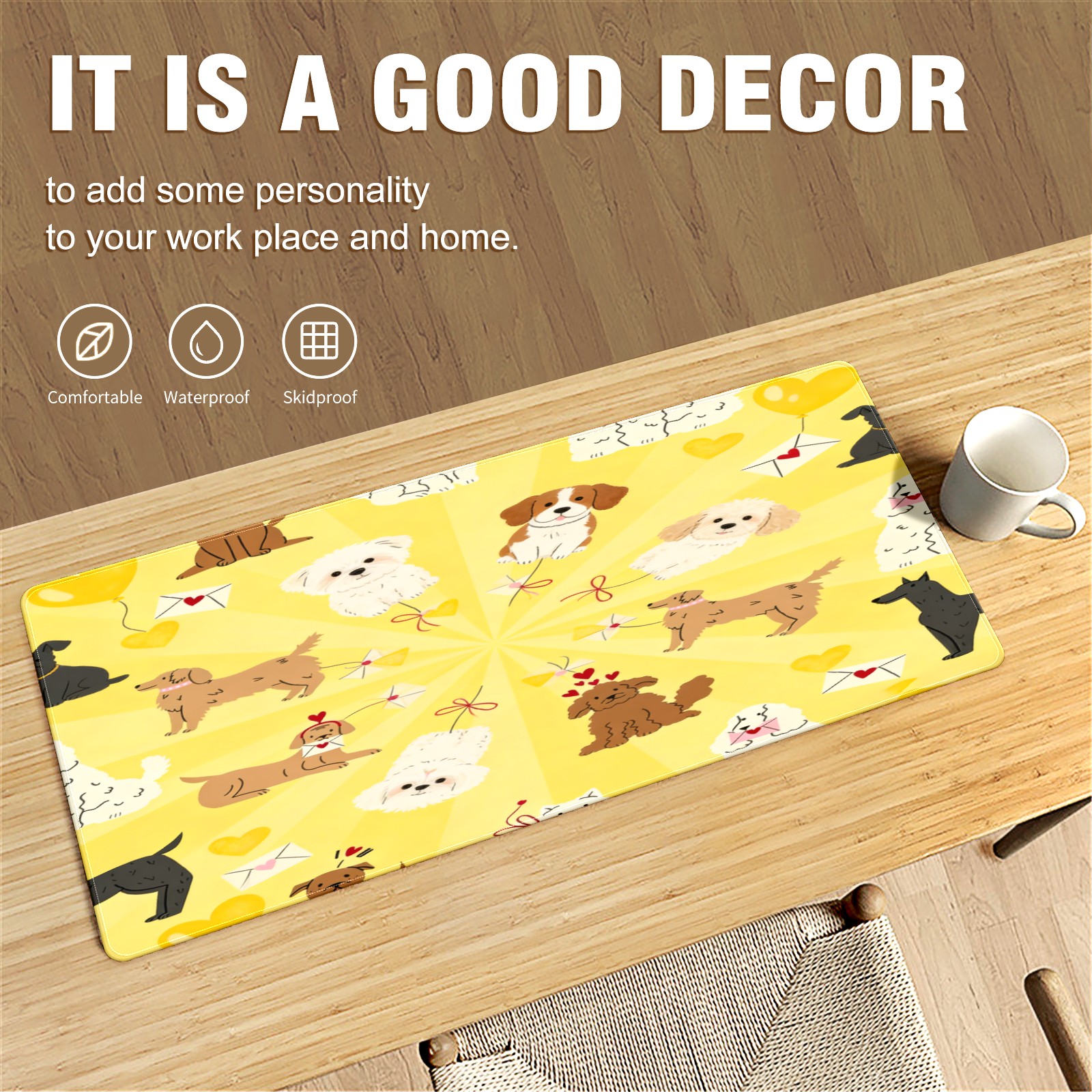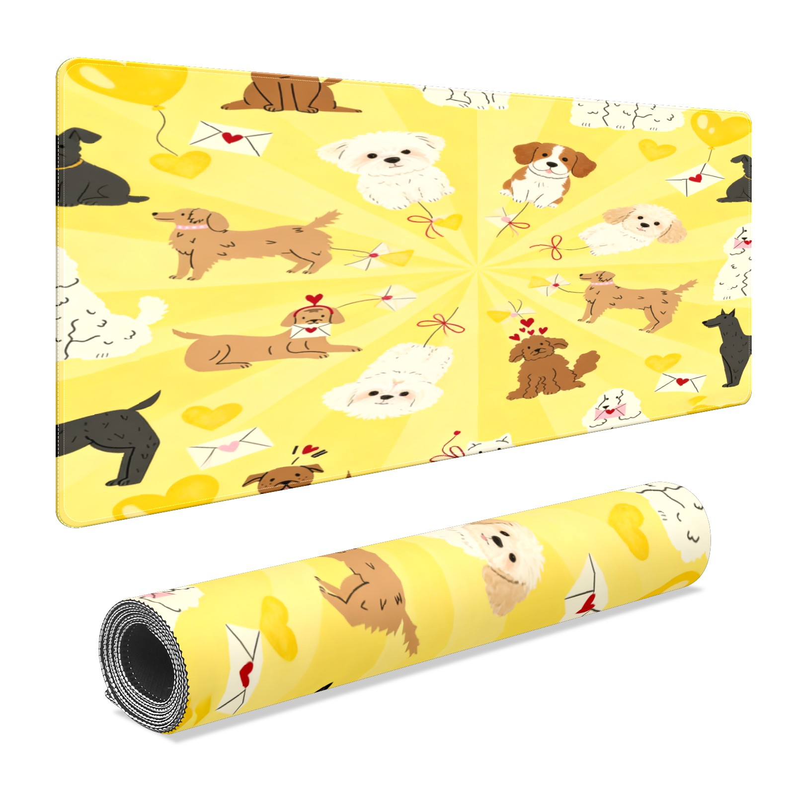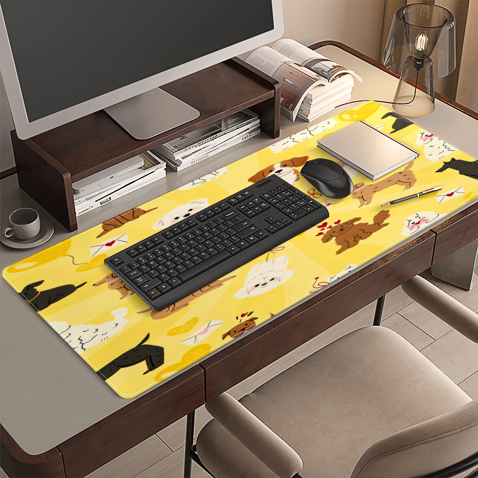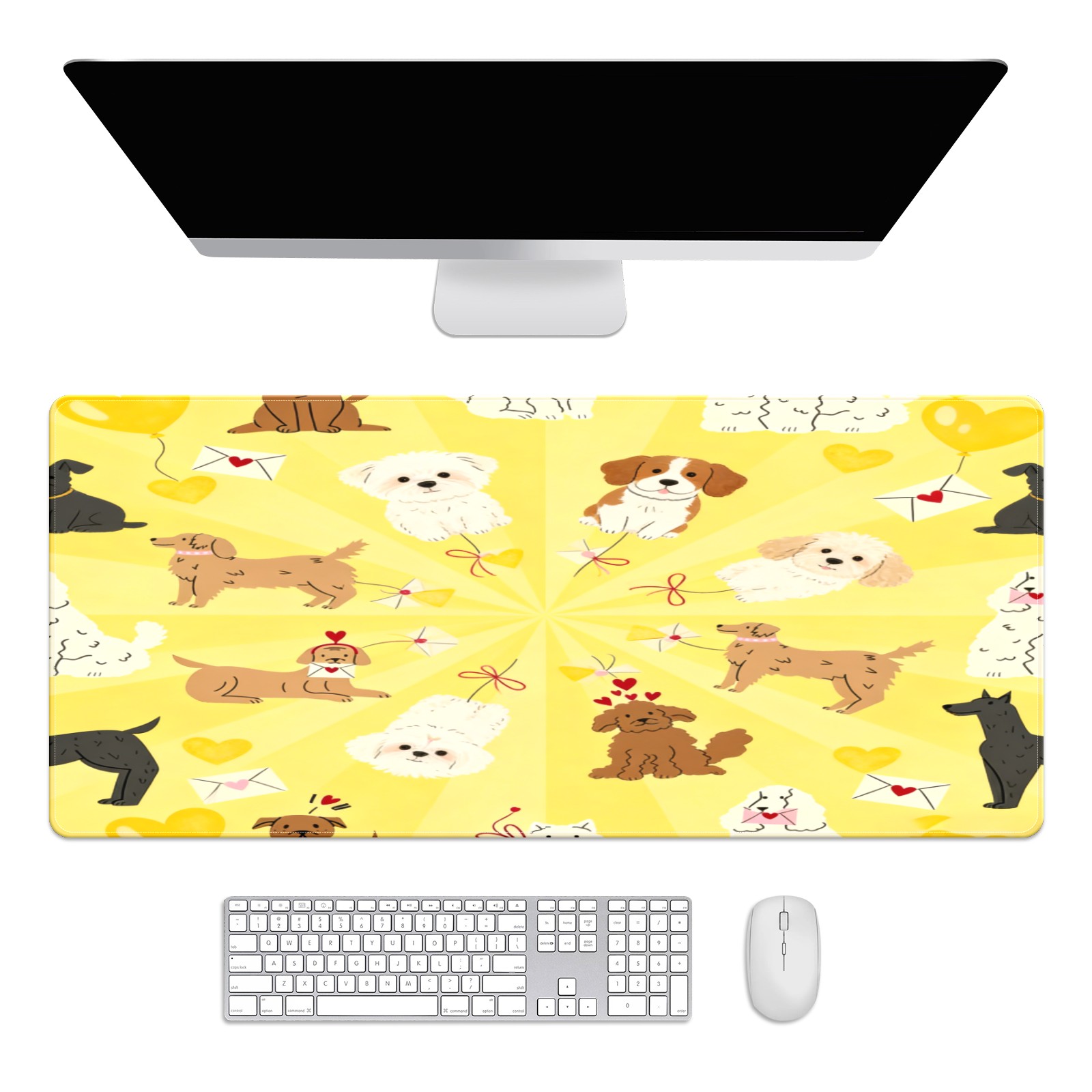 Large Gaming Mouse Pad (90x40cm), Extended Waterproof Desk Mat with Non-Slip Rubber Base, Warm Dog Yellow for Gamers, Office & Home