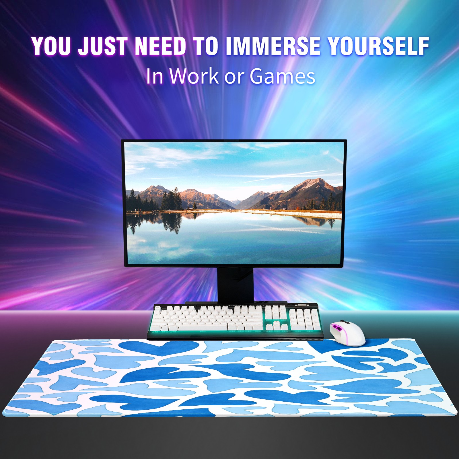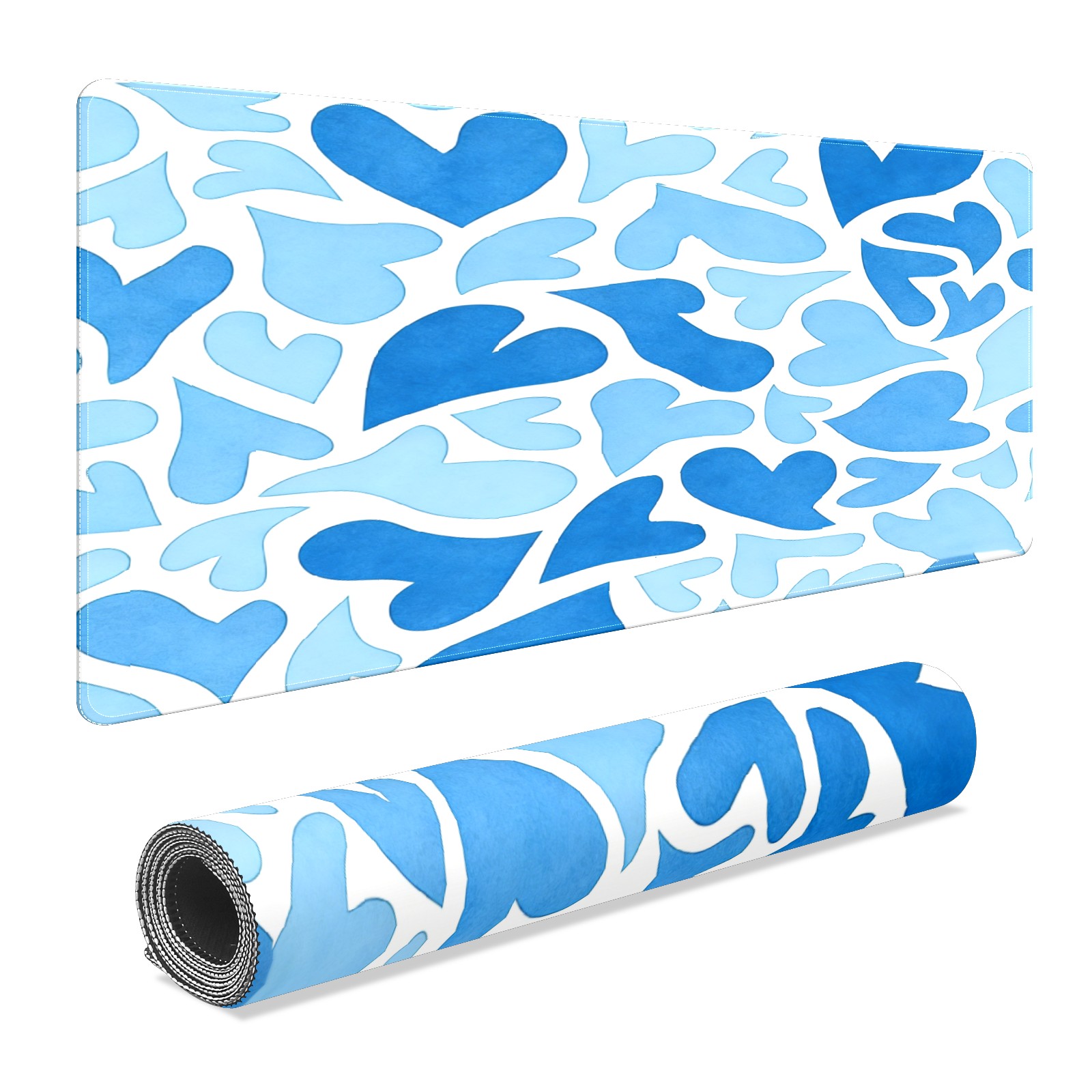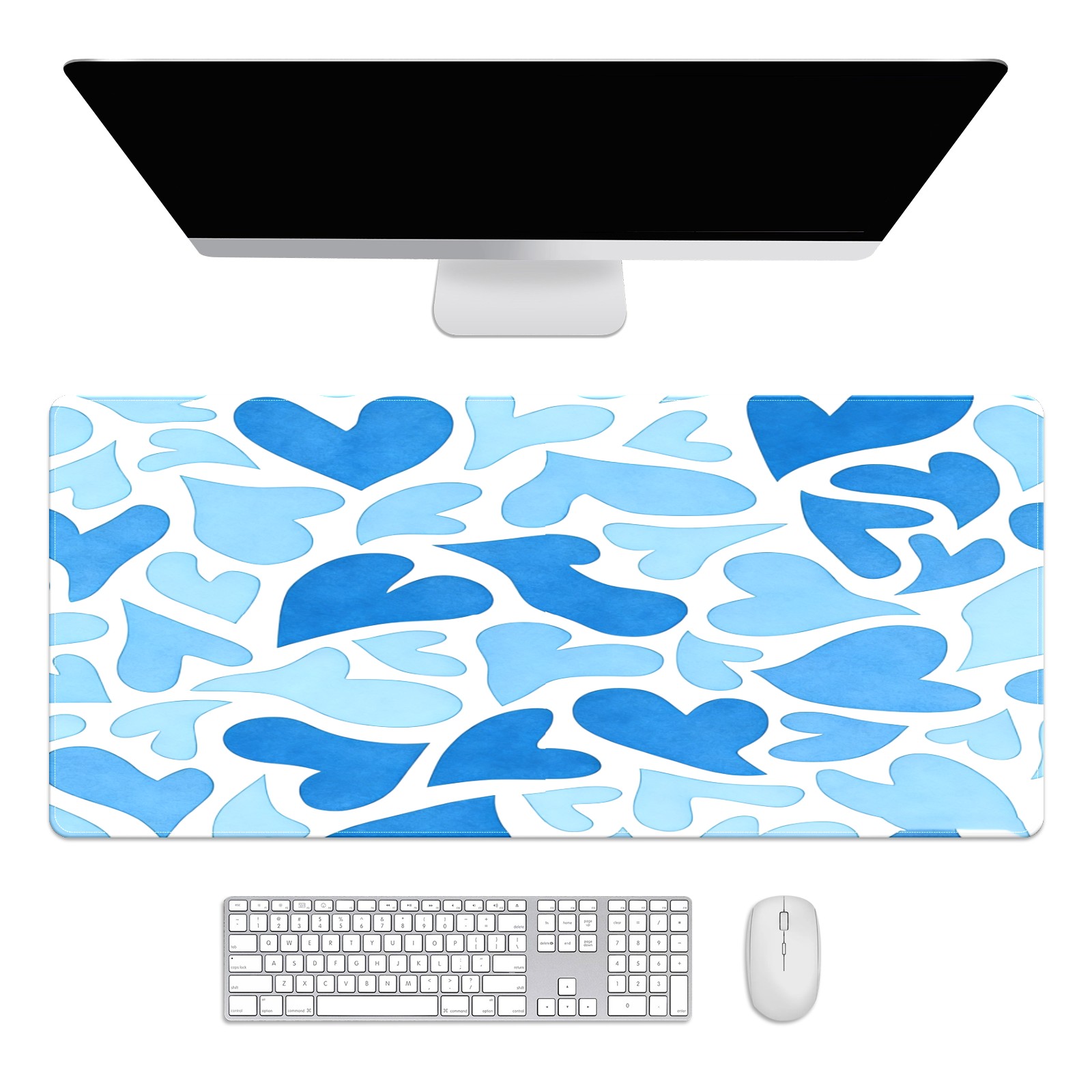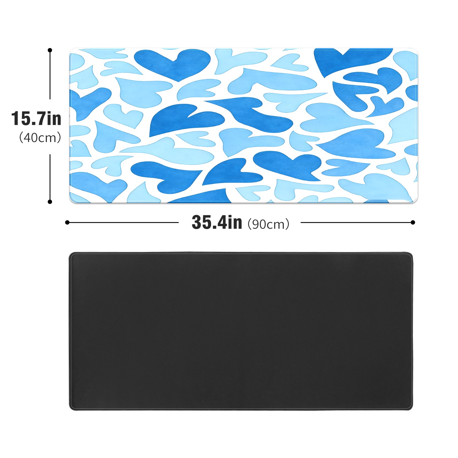 Large Gaming Mouse Pad (90x40cm), Extended Waterproof Desk Mat with Non-Slip Rubber Base, Fresh Heart Blue for Gamers, Office & Home