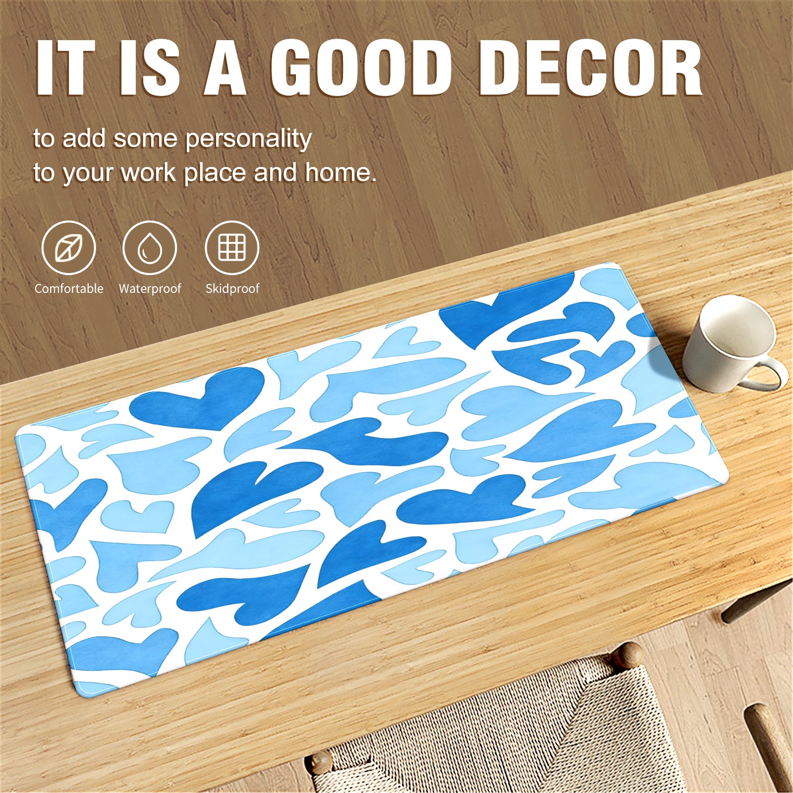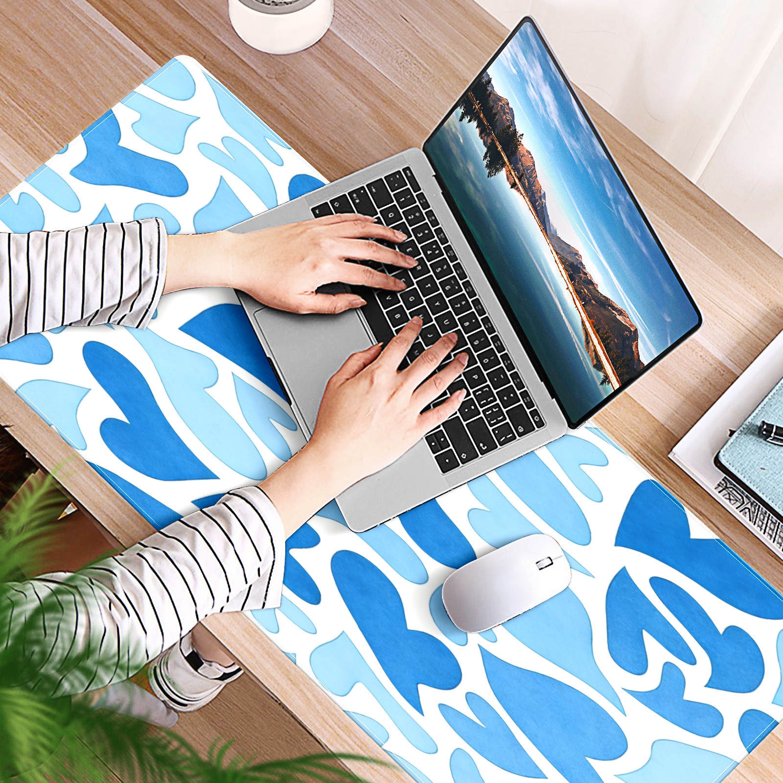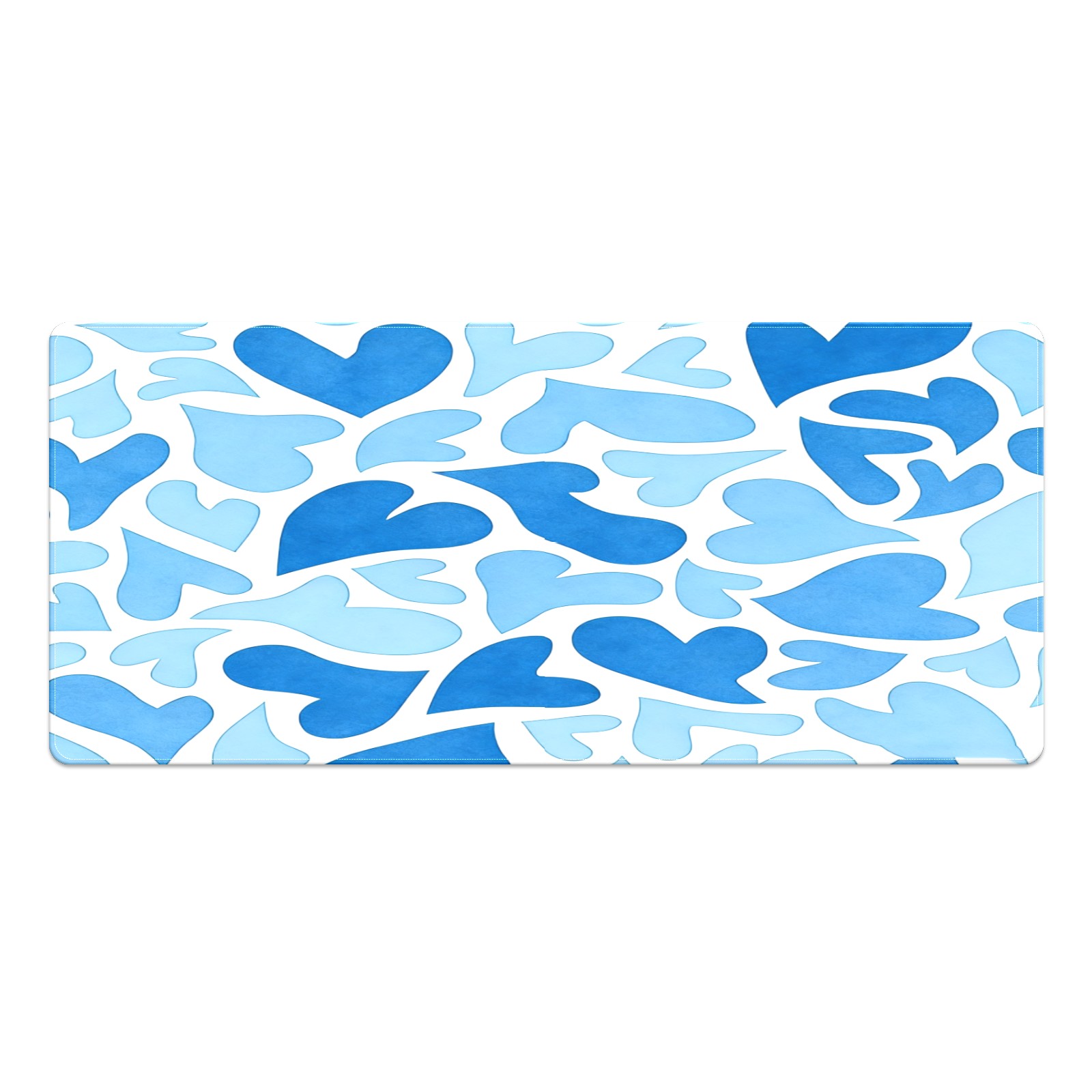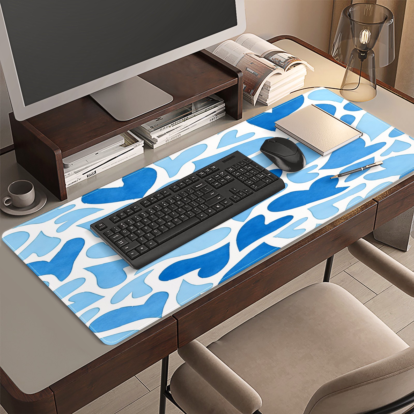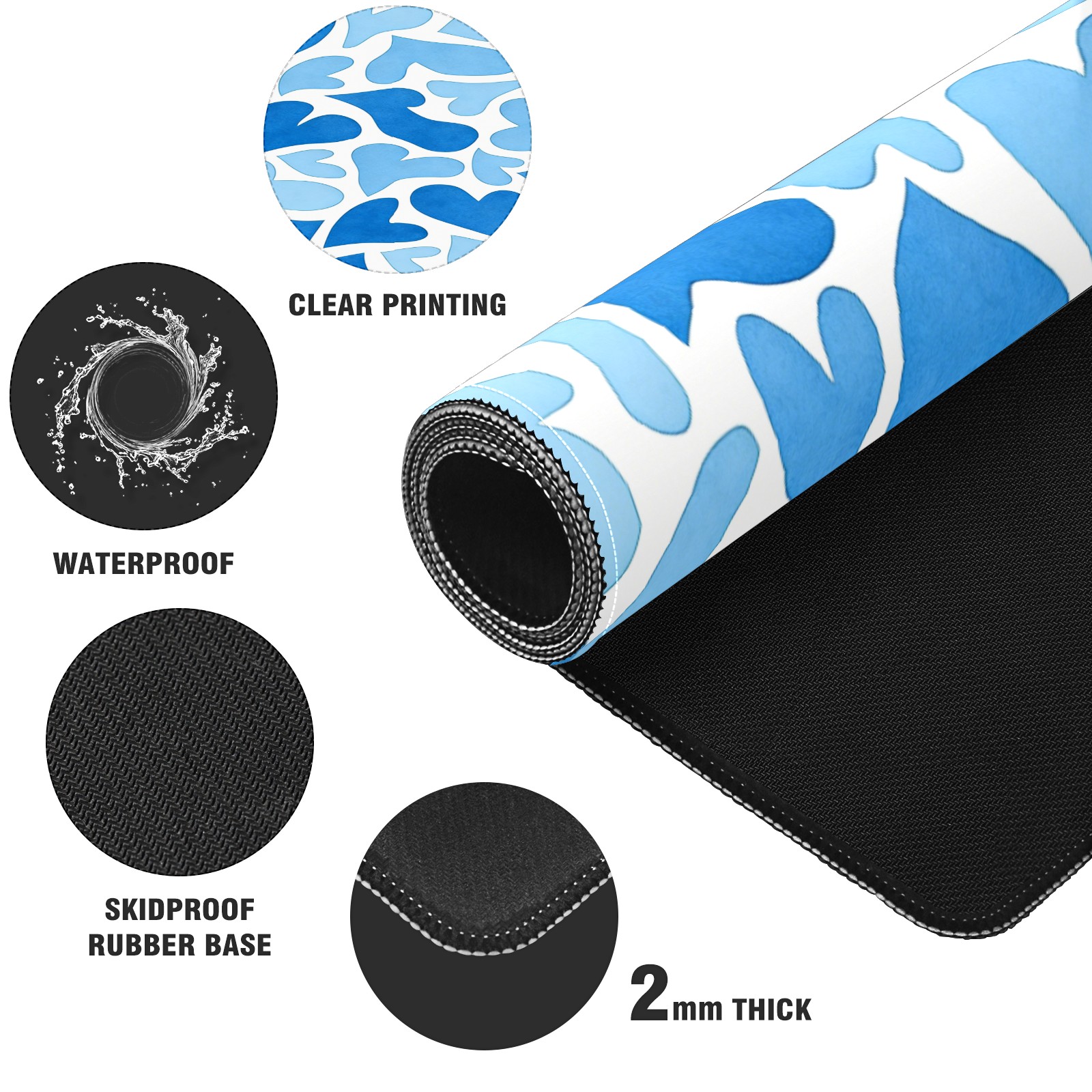 Large Gaming Mouse Pad (90x40cm), Extended Waterproof Desk Mat with Non-Slip Rubber Base, Fresh Heart Blue for Gamers, Office & Home