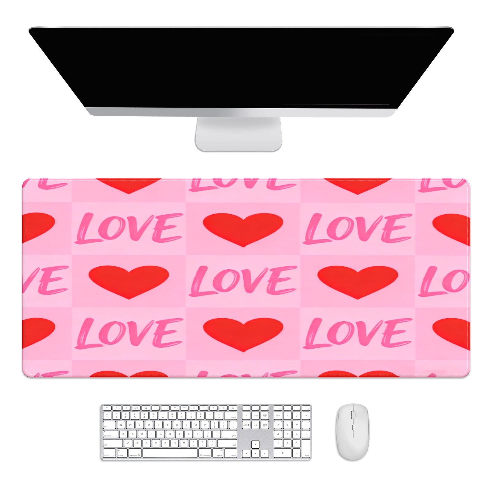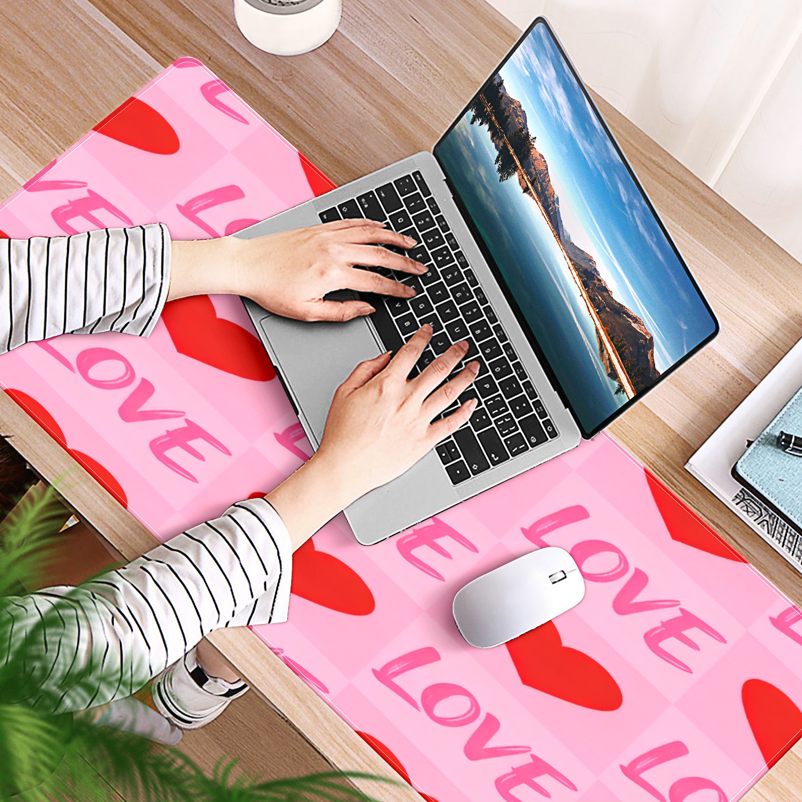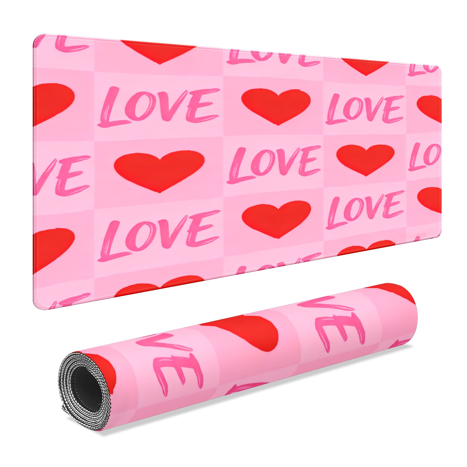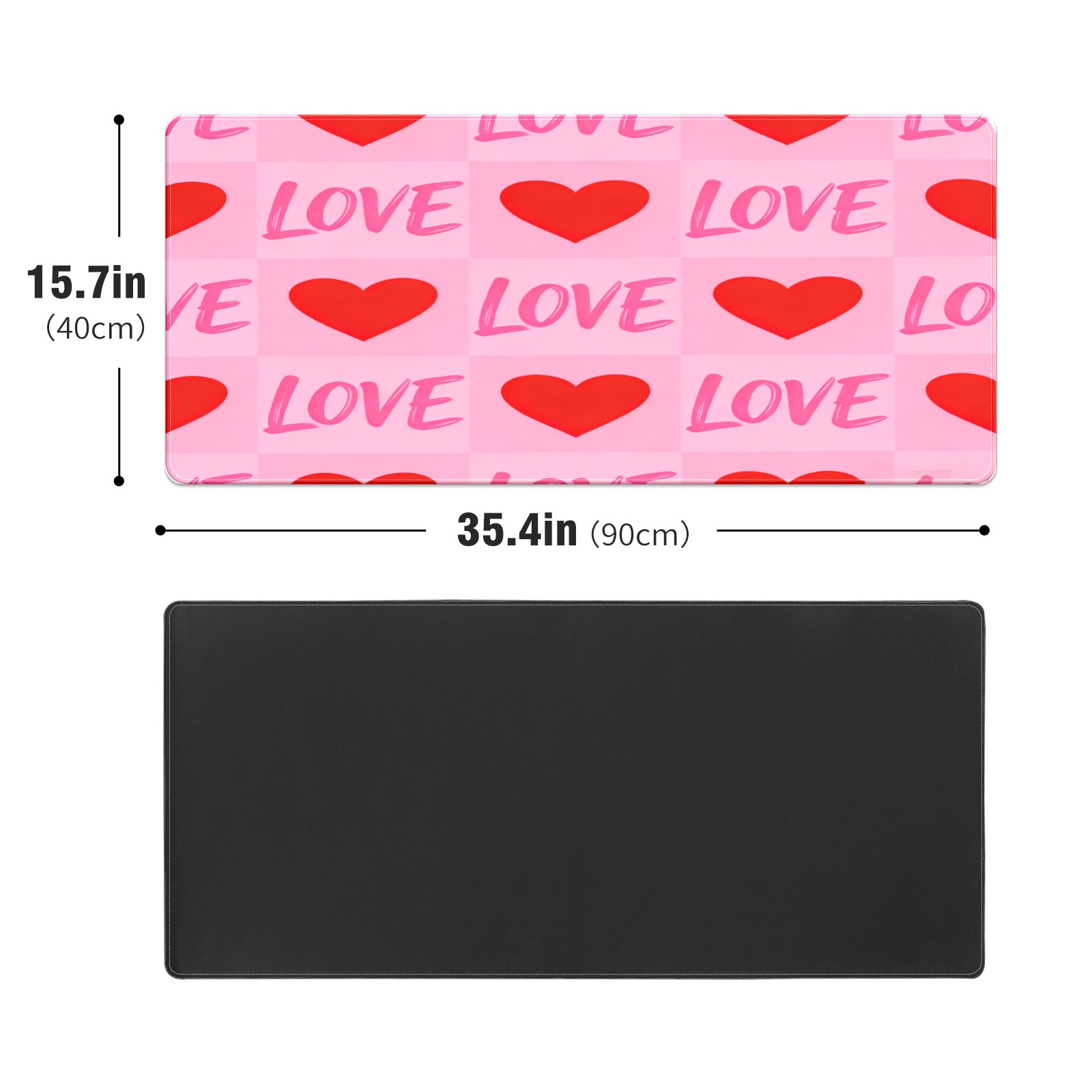 Large Gaming Mouse Pad (90x40cm), Extended Waterproof Desk Mat with Non-Slip Rubber Base, Passionate LOVE Red for Gamers, Office & Home