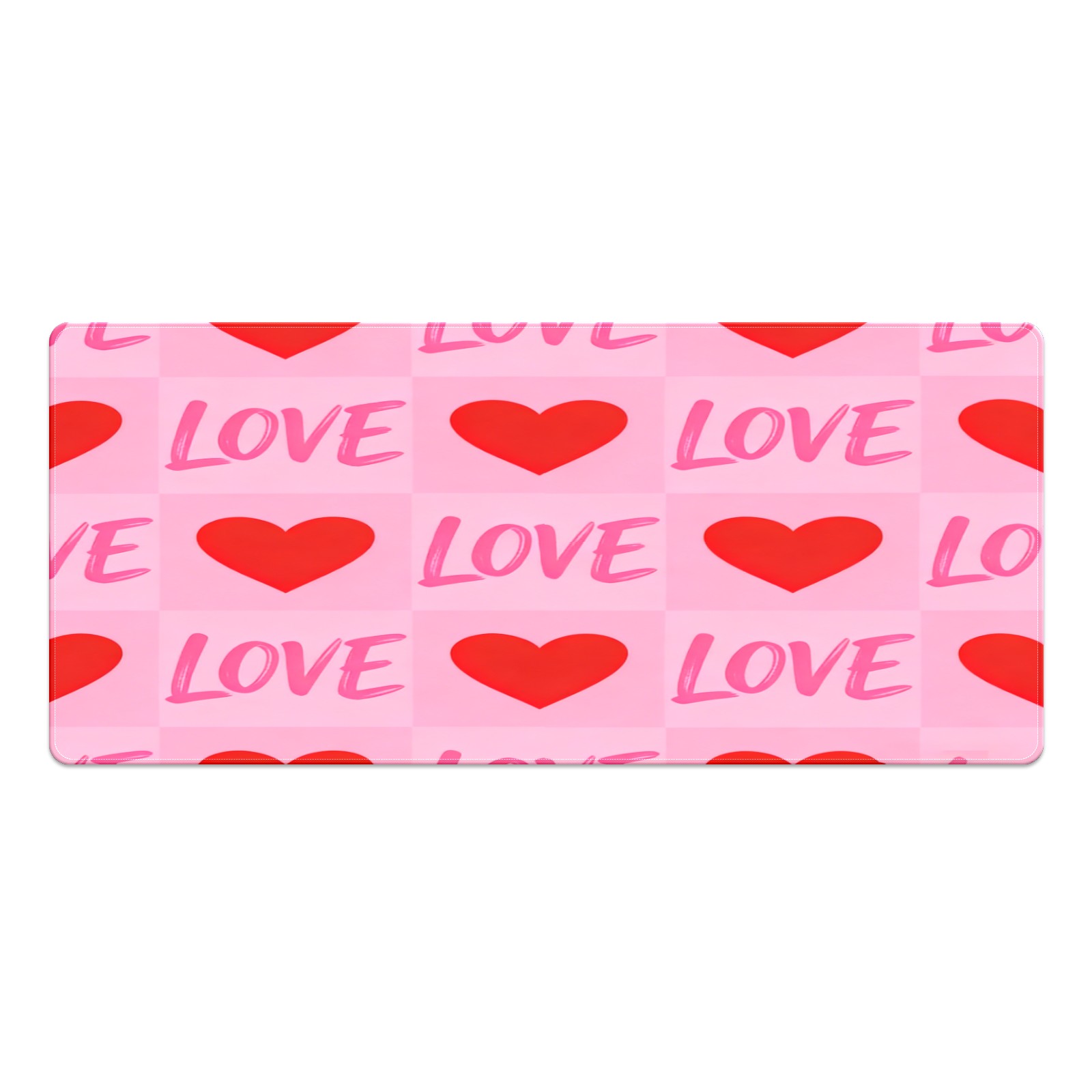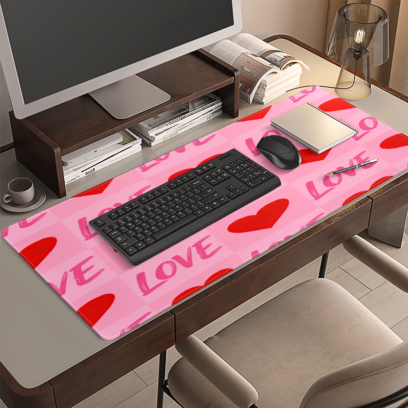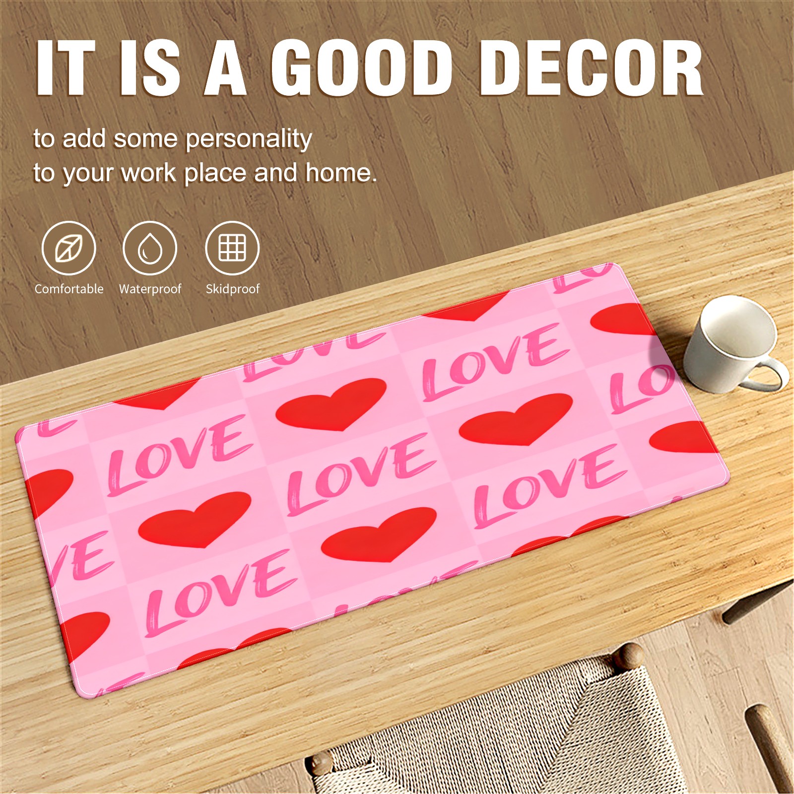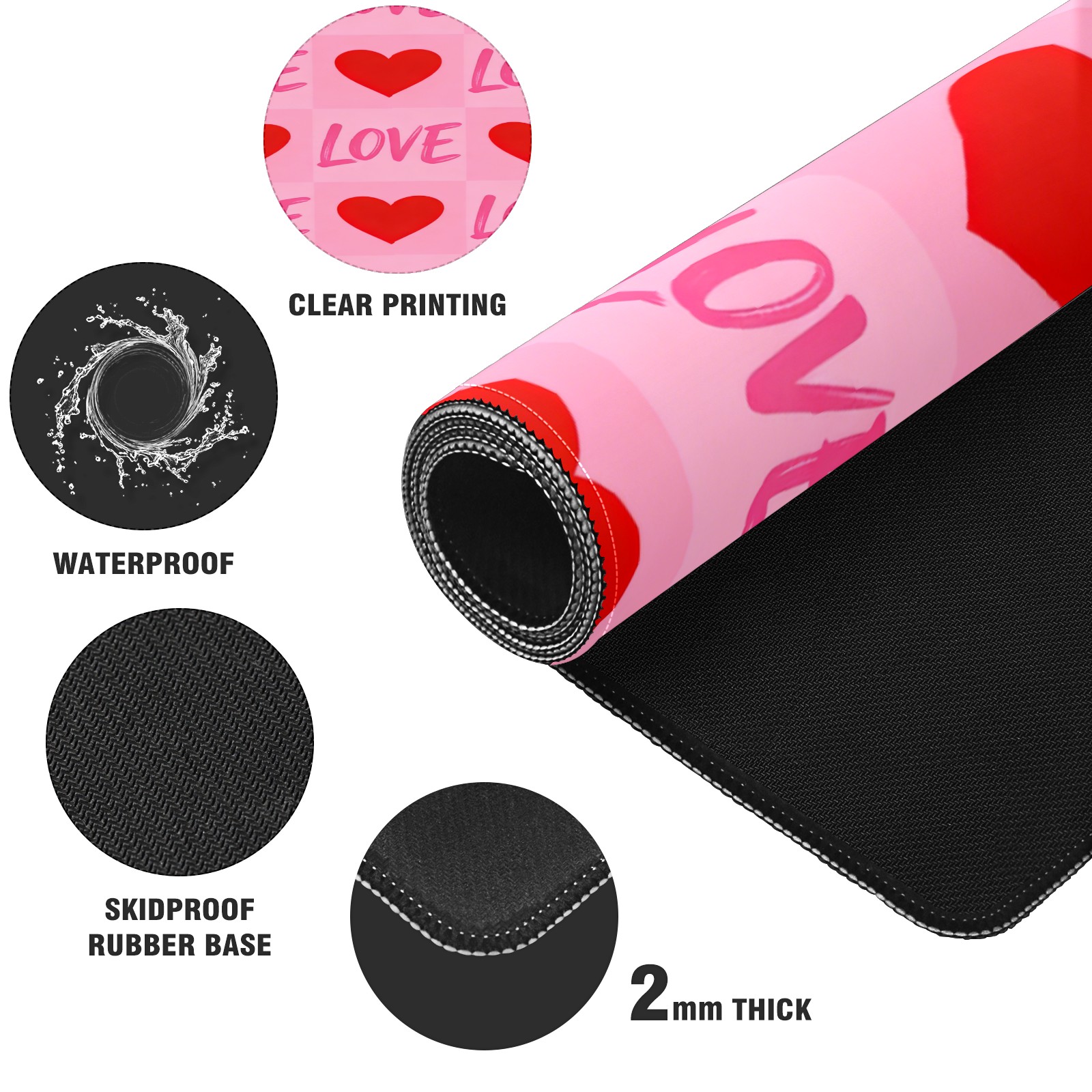 Large Gaming Mouse Pad (90x40cm), Extended Waterproof Desk Mat with Non-Slip Rubber Base, Passionate LOVE Red for Gamers, Office & Home