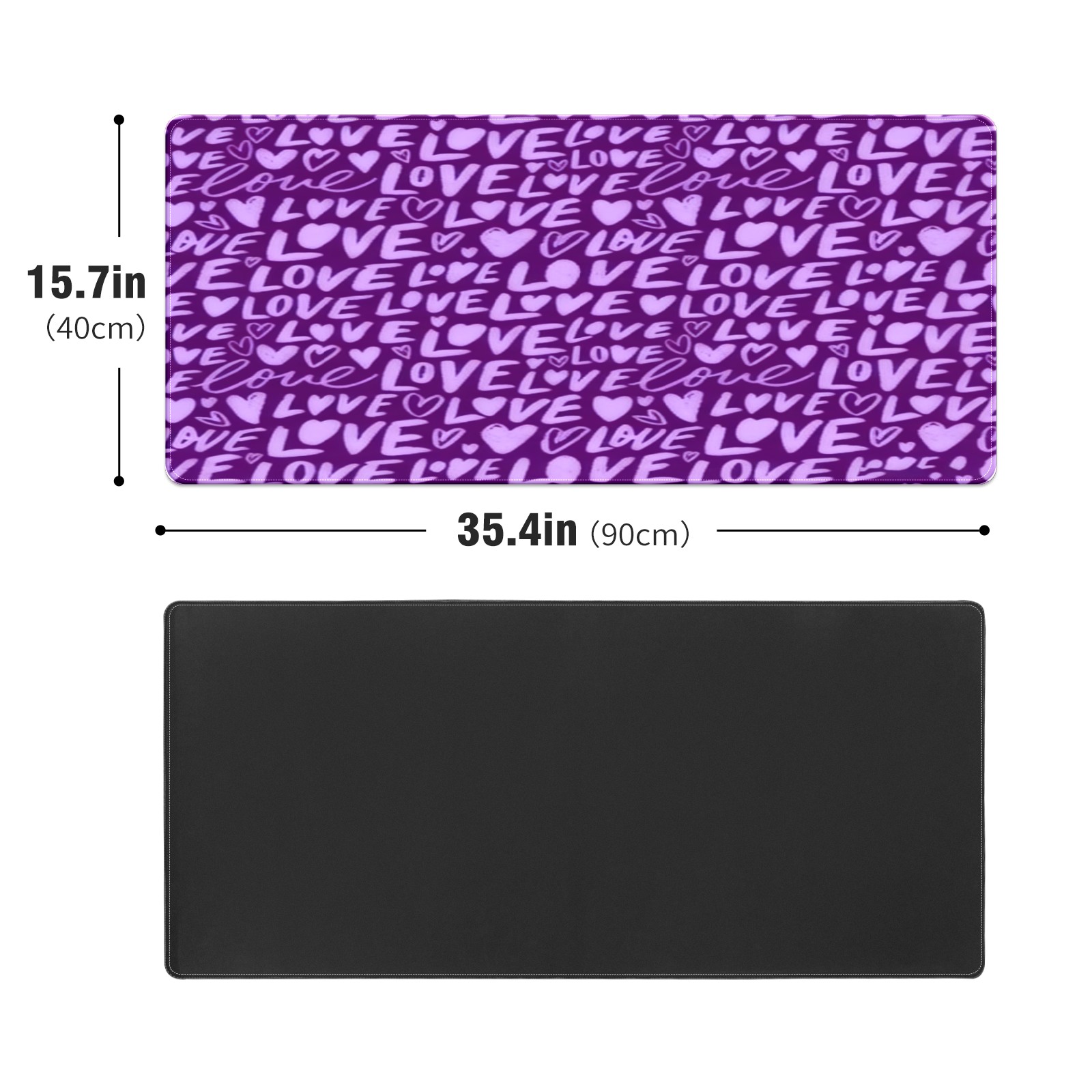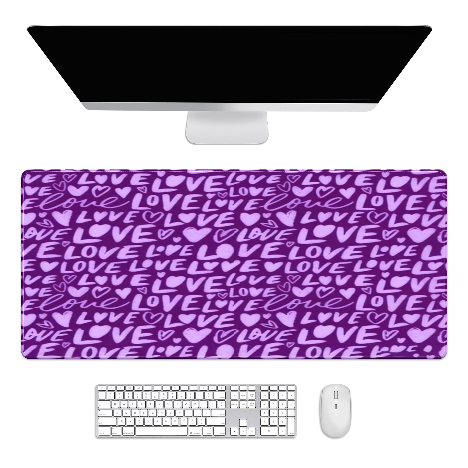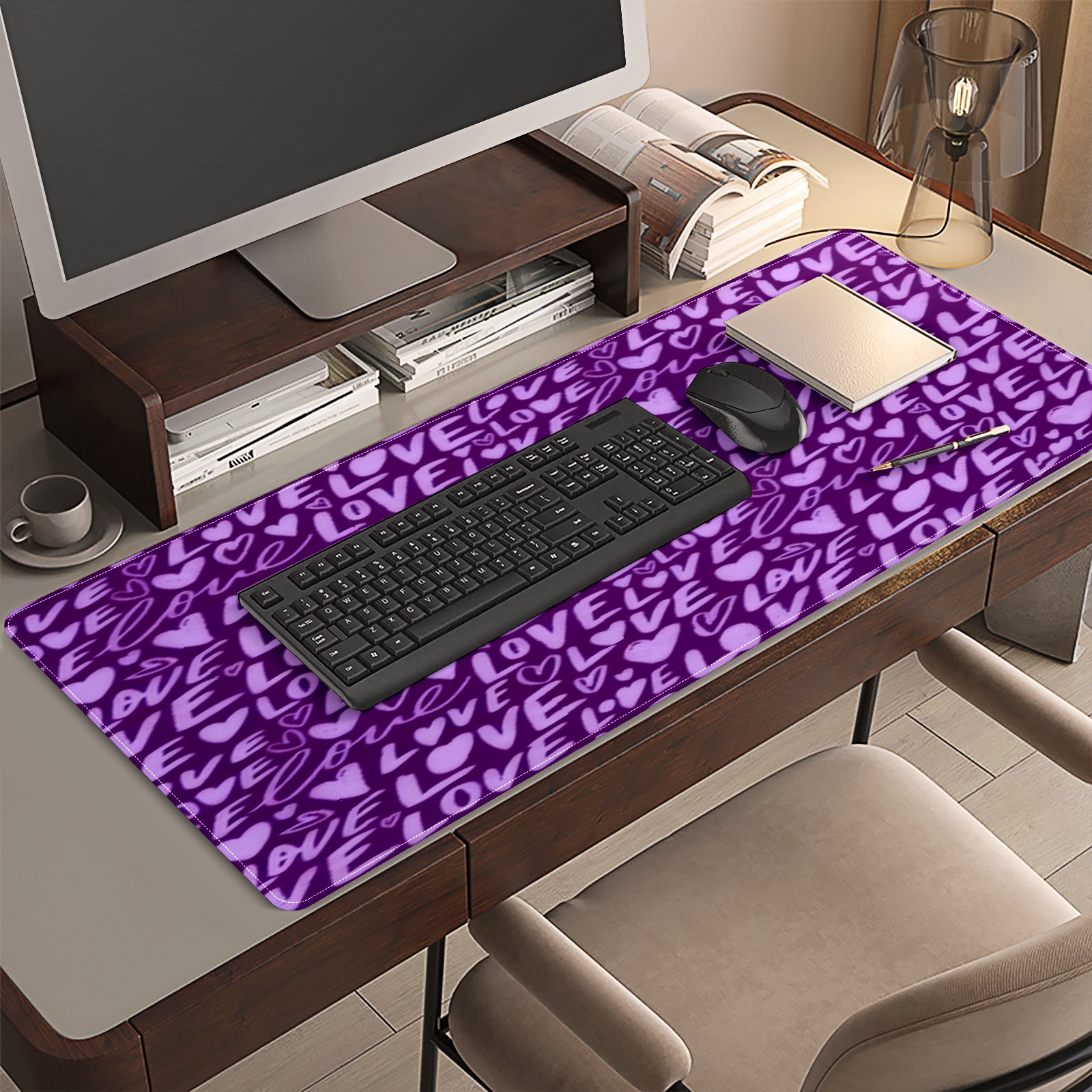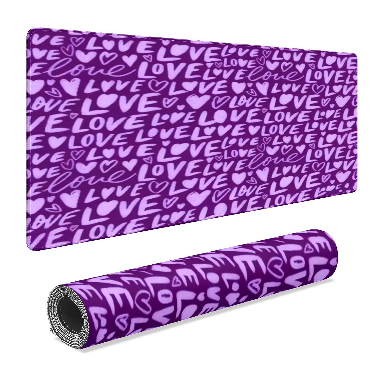 Large Gaming Mouse Pad (90x40cm), Extended Waterproof Desk Mat with Non-Slip Rubber Base, Fiery LOVE Text Purple for Gamers, Office & Home