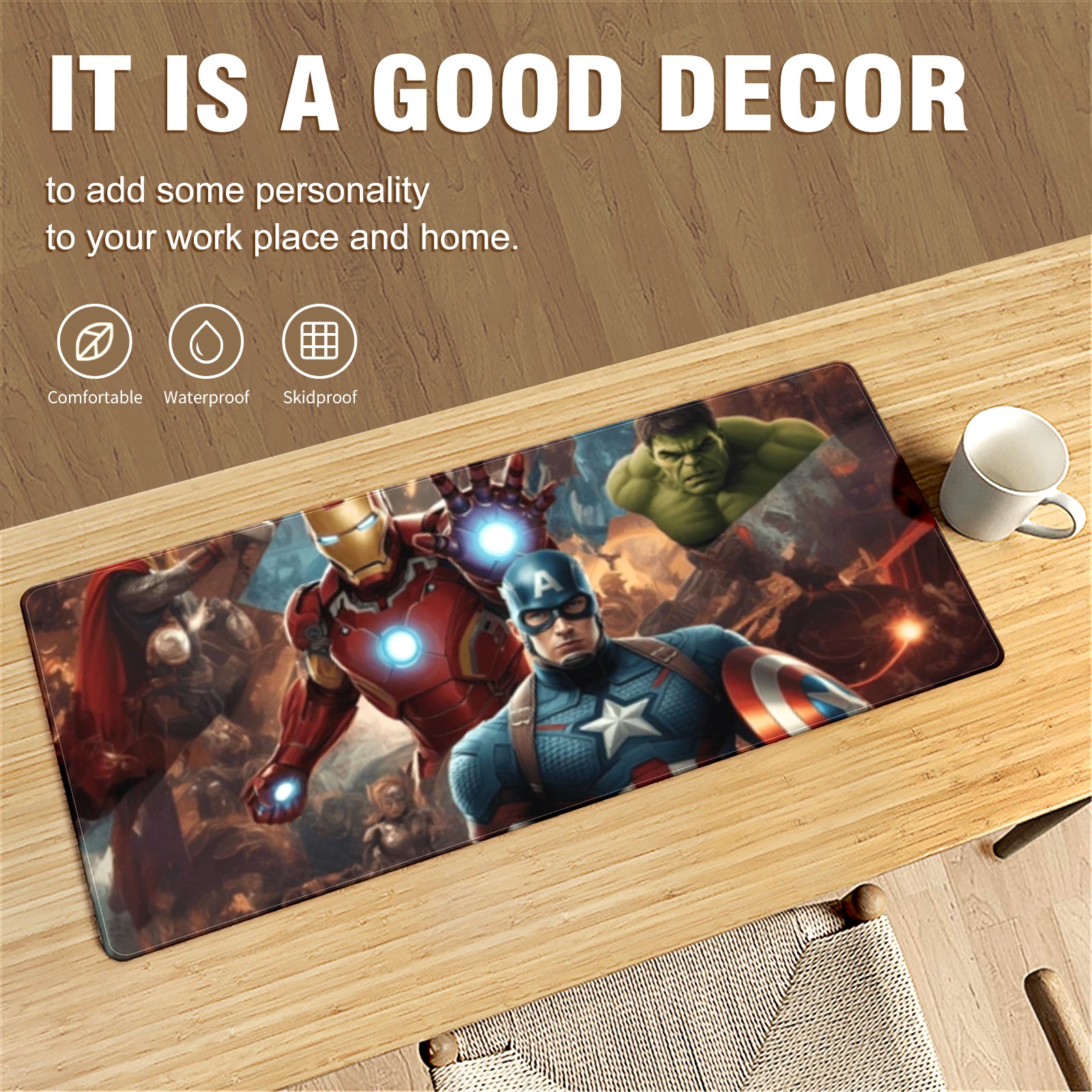 • <p>This 35.4” × 15.7” extended desk mat offers ample space for your keyboard, mouse and essentials, working as a smooth work/writing pad while protecting your desktop from scratches.</p><p>With stylish artistic patterns, it adds personality to your home office, study or gaming setup. The high-density woven surface ensures precise, smooth mouse tracking for work and gaming.</p><p>Featuring an anti-slip natural rubber base for firm grip and stability, the mat is soft, elastic and odorless. Reinforced stitched edges prevent fraying and curling for long-lasting durability.</p>