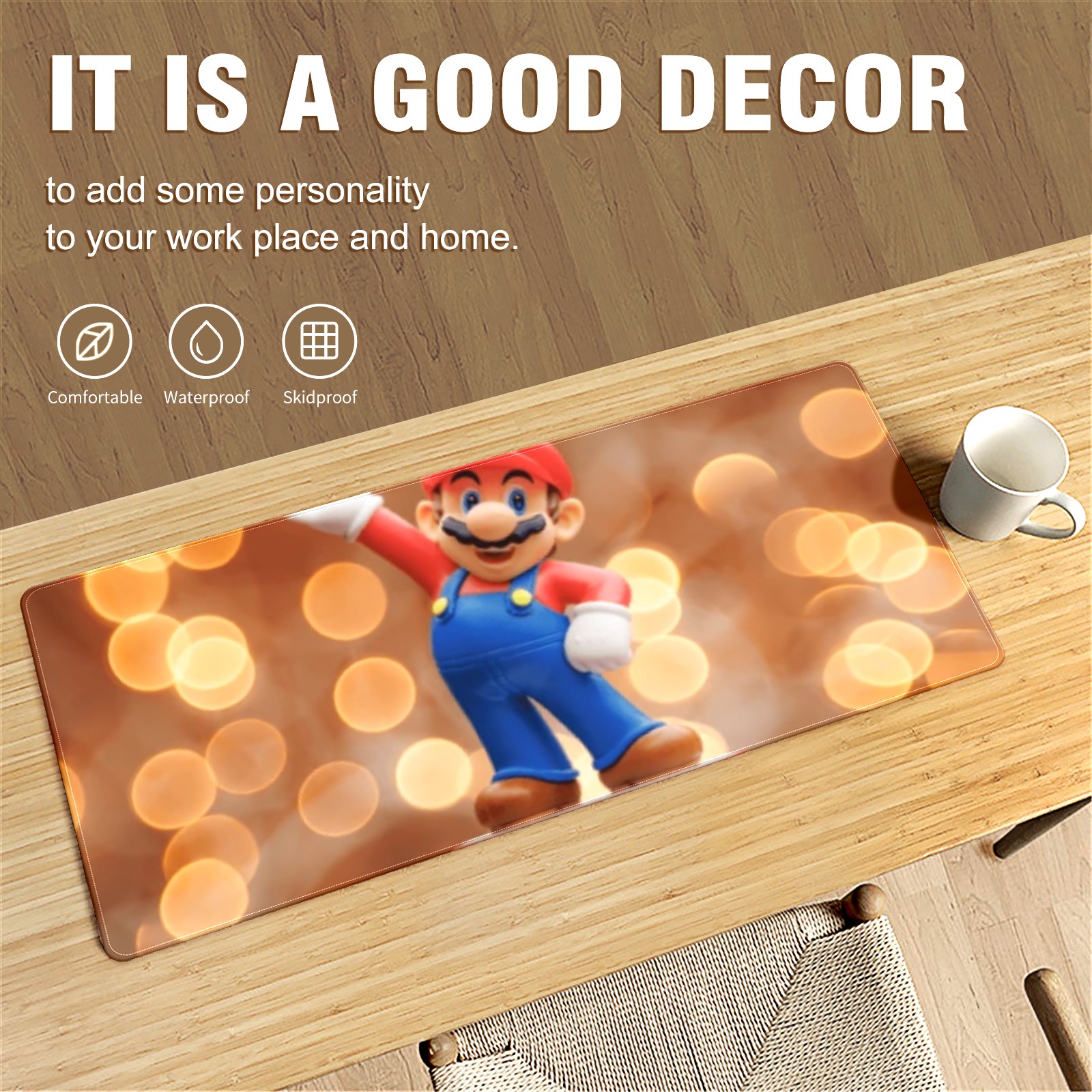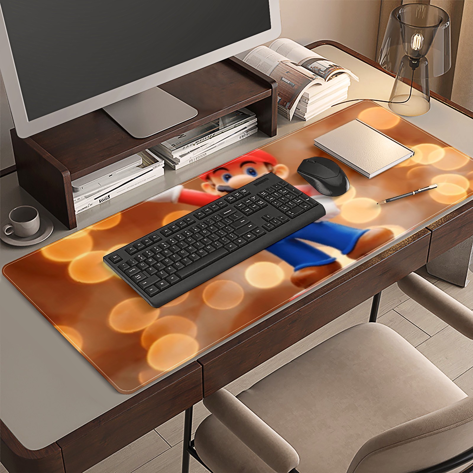 <p>This 35.4” × 15.7” extended desk mat offers ample space for your keyboard, mouse and essentials, working as a smooth work/writing pad while protecting your desktop from scratches.</p><p>With stylish artistic patterns, it adds personality to your home office, study or gaming setup. The high-density woven surface ensures precise, smooth mouse tracking for work and gaming.</p><p>Featuring an anti-slip natural rubber base for firm grip and stability, the mat is soft, elastic and odorless. Reinforced stitched edges prevent fraying and curling for long-lasting durability.</p>