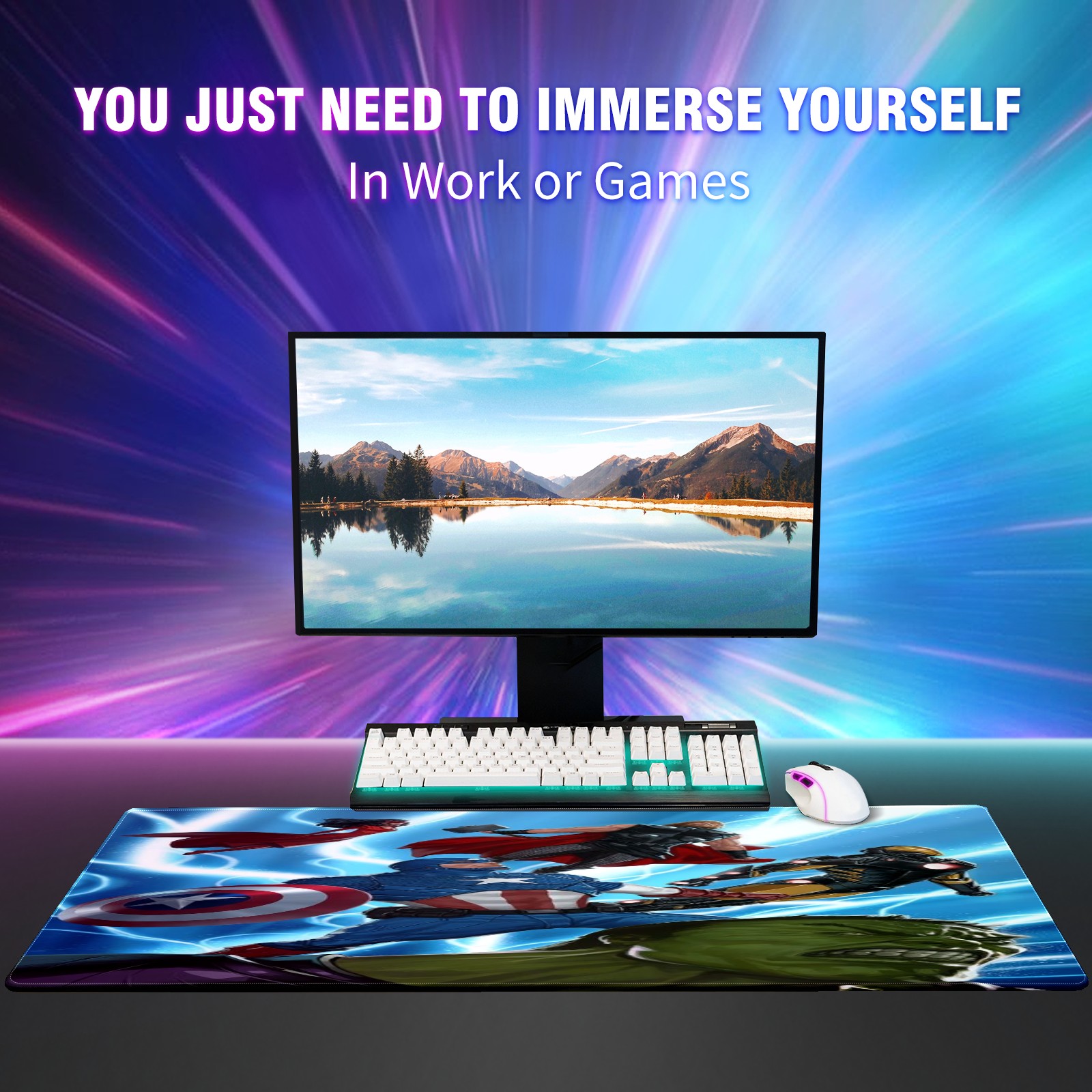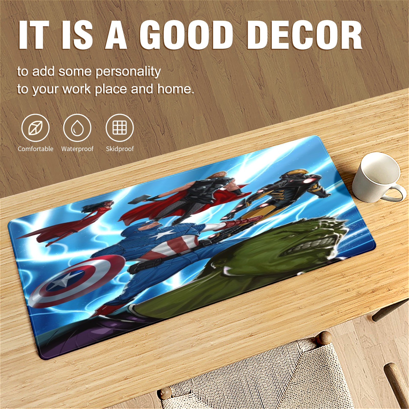 Large Mouse Pad for Desktop, Cute Desk Mat Pad Protector for Work & Gaming, Aesthetic Pretty Anti-Slip Laptop Blotter Cover for Office School Home Supplies, 漫威 (514) , 35.4inx15.7in