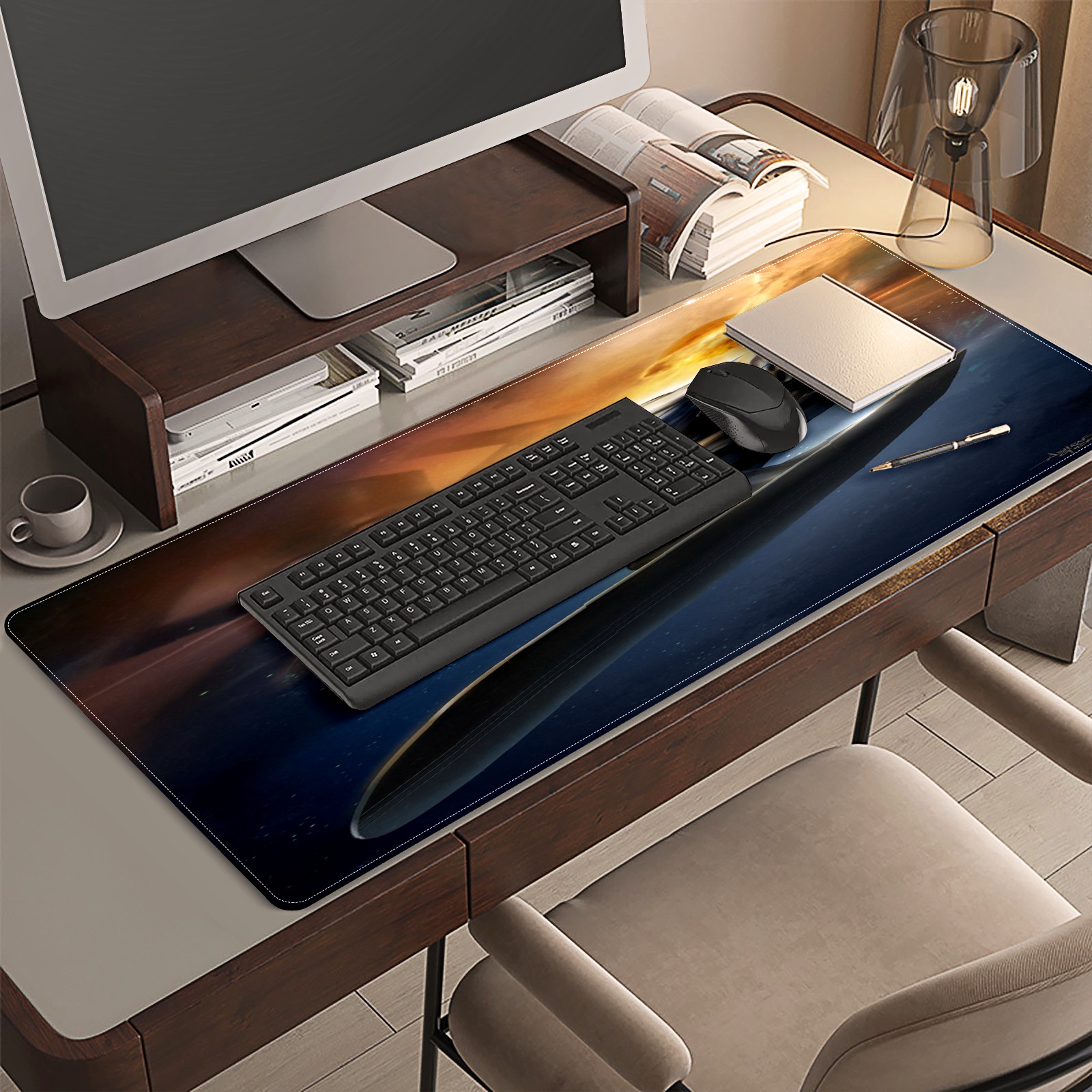 <p>This 35.4” × 15.7” extended desk mat offers ample space for your keyboard, mouse and essentials, working as a smooth work/writing pad while protecting your desktop from scratches.</p><p>With stylish artistic patterns, it adds personality to your home office, study or gaming setup. The high-density woven surface ensures precise, smooth mouse tracking for work and gaming.</p><p>Featuring an anti-slip natural rubber base for firm grip and stability, the mat is soft, elastic and odorless. Reinforced stitched edges prevent fraying and curling for long-lasting durability.</p>