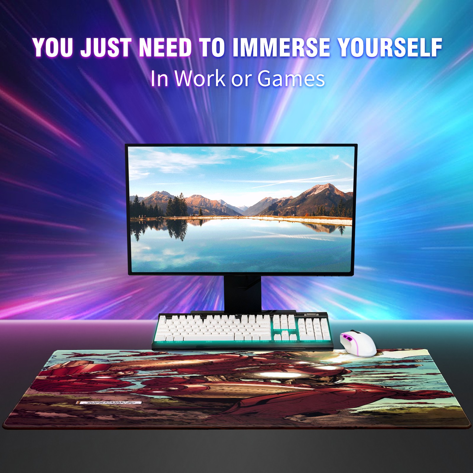 Large Mouse Pad for Desktop, Cute Desk Mat Pad Protector for Work & Gaming, Aesthetic Pretty Anti-Slip Laptop Blotter Cover for Office School Home Supplies, 漫威 (505) , 35.4inx15.7in