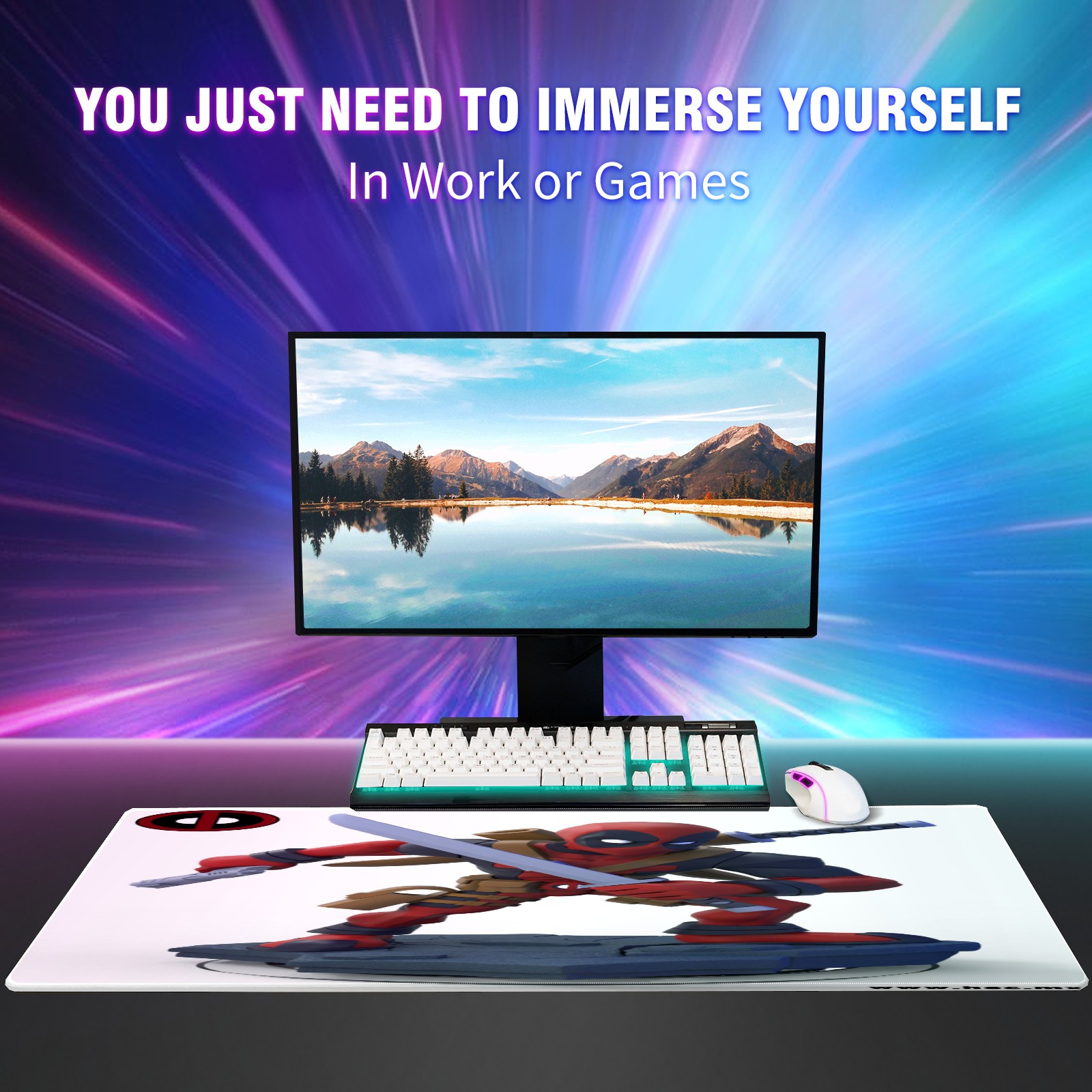 Large Mouse Pad for Desktop, Cute Desk Mat Pad Protector for Work & Gaming, Aesthetic Pretty Anti-Slip Laptop Blotter Cover for Office School Home Supplies, 漫威 (496) , 35.4inx15.7in