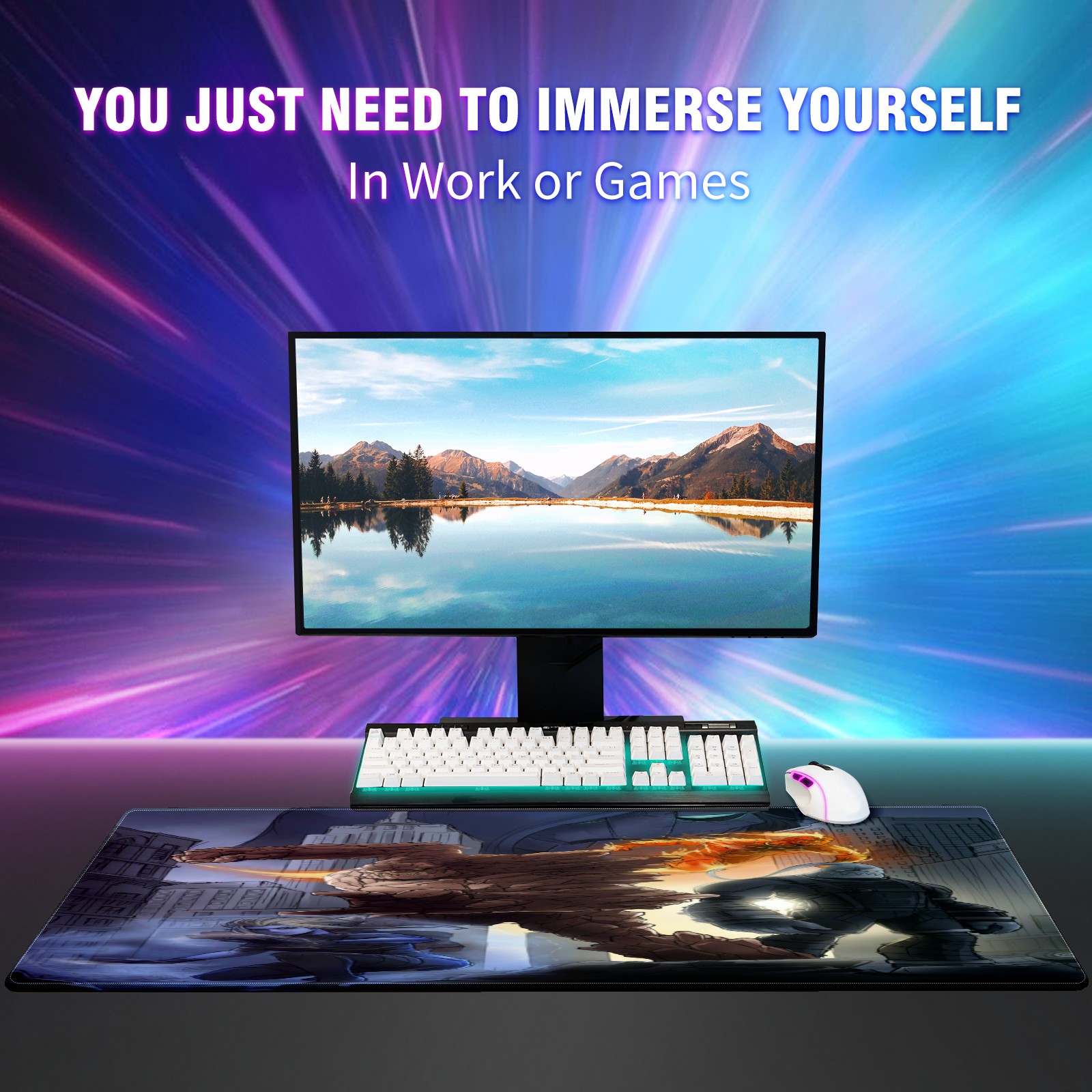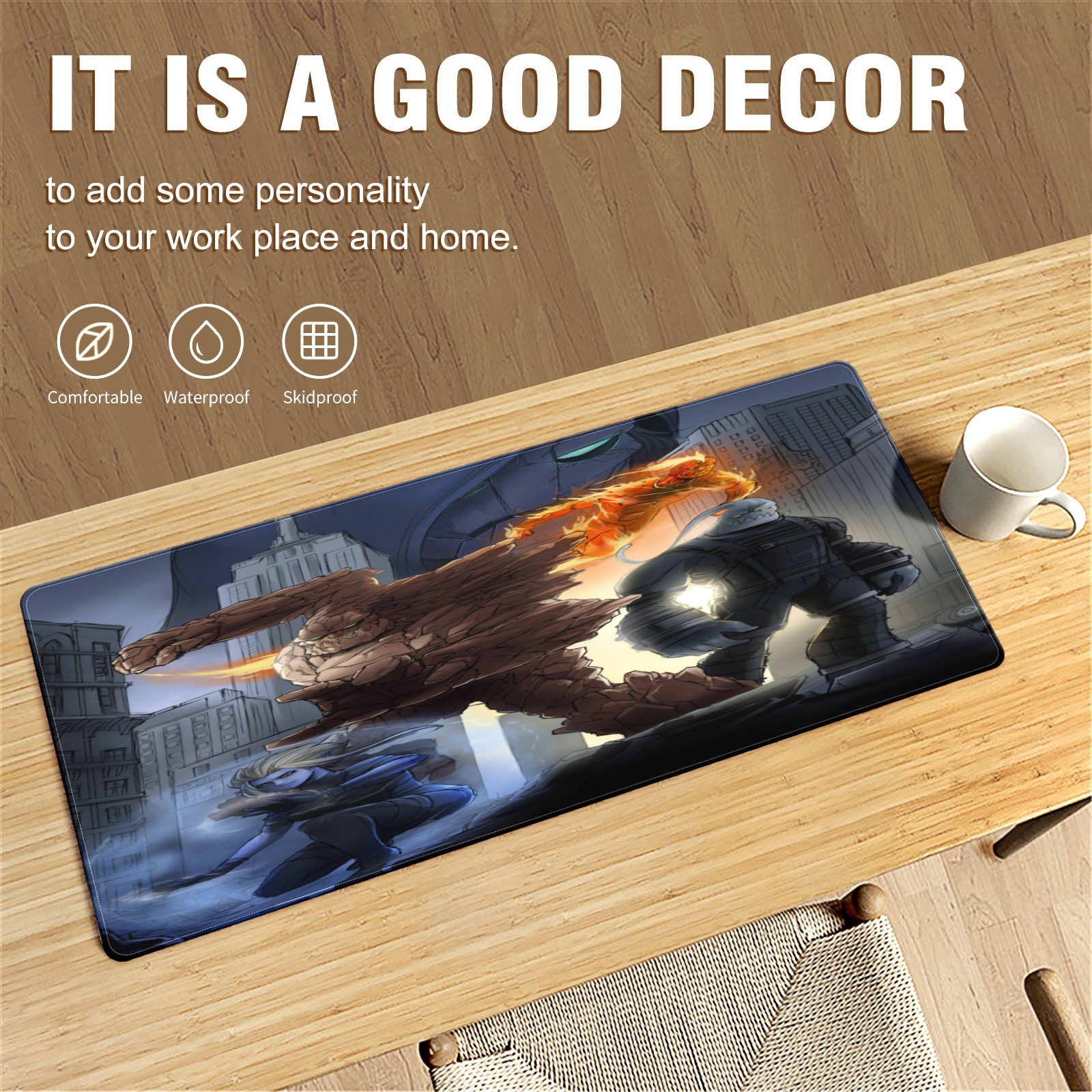 Large Mouse Pad for Desktop, Cute Desk Mat Pad Protector for Work & Gaming, Aesthetic Pretty Anti-Slip Laptop Blotter Cover for Office School Home Supplies, 漫威 (476) , 35.4inx15.7in