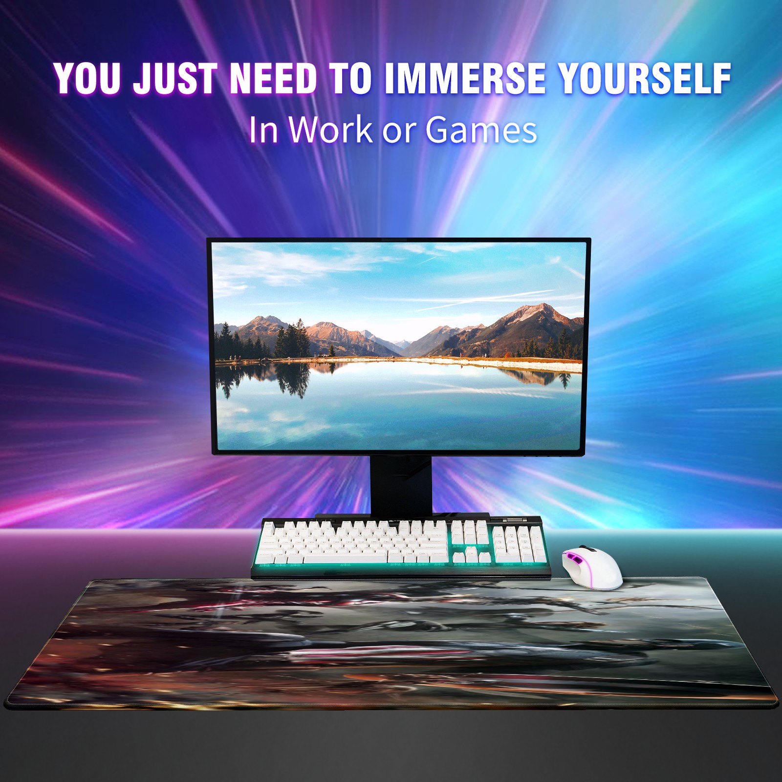 <p>This 35.4” × 15.7” extended desk mat offers ample space for your keyboard, mouse and essentials, working as a smooth work/writing pad while protecting your desktop from scratches.</p><p>With stylish artistic patterns, it adds personality to your home office, study or gaming setup. The high-density woven surface ensures precise, smooth mouse tracking for work and gaming.</p><p>Featuring an anti-slip natural rubber base for firm grip and stability, the mat is soft, elastic and odorless. Reinforced stitched edges prevent fraying and curling for long-lasting durability.</p>