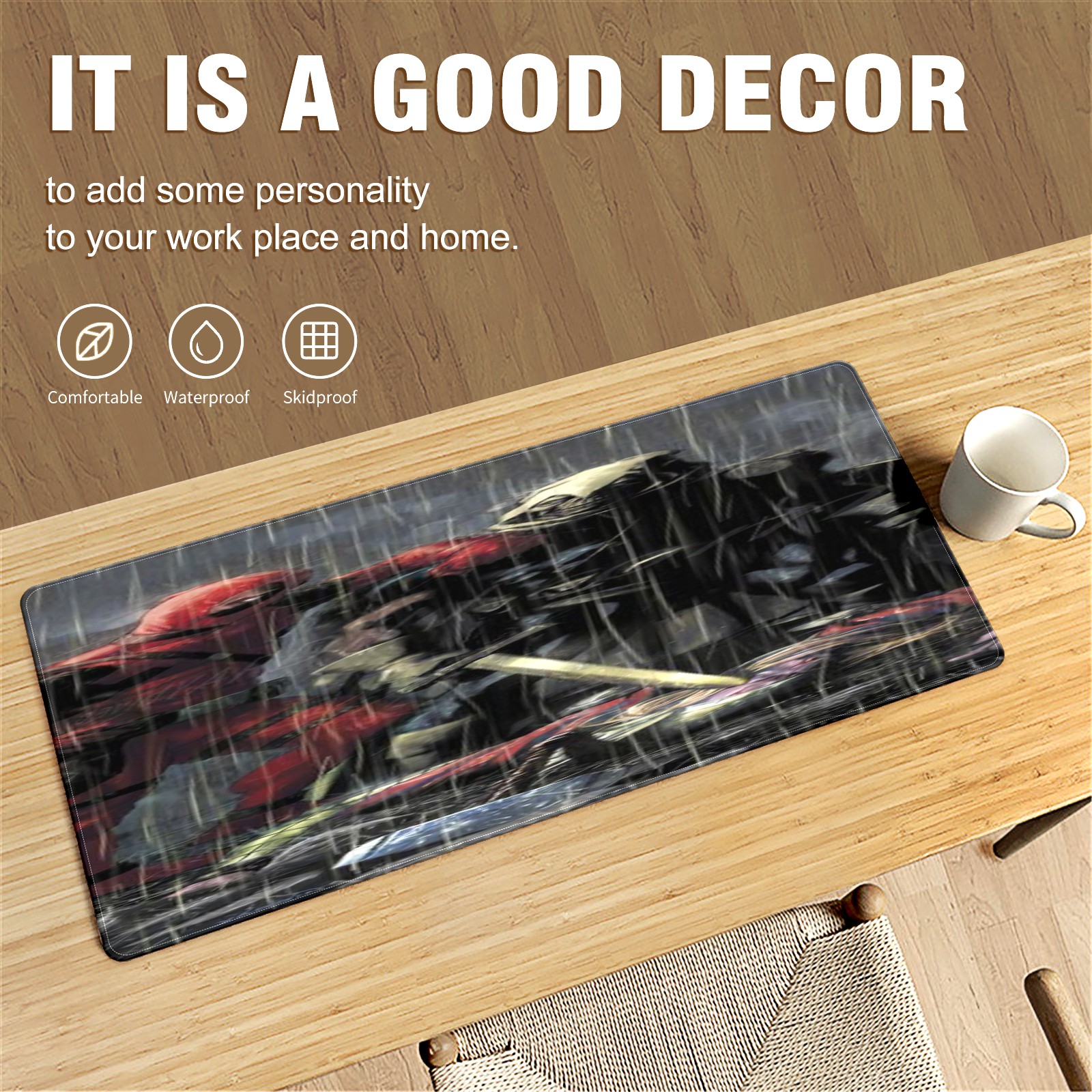 • <p>This 35.4” × 15.7” extended desk mat offers ample space for your keyboard, mouse and essentials, working as a smooth work/writing pad while protecting your desktop from scratches.</p><p>With stylish artistic patterns, it adds personality to your home office, study or gaming setup. The high-density woven surface ensures precise, smooth mouse tracking for work and gaming.</p><p>Featuring an anti-slip natural rubber base for firm grip and stability, the mat is soft, elastic and odorless. Reinforced stitched edges prevent fraying and curling for long-lasting durability.</p>