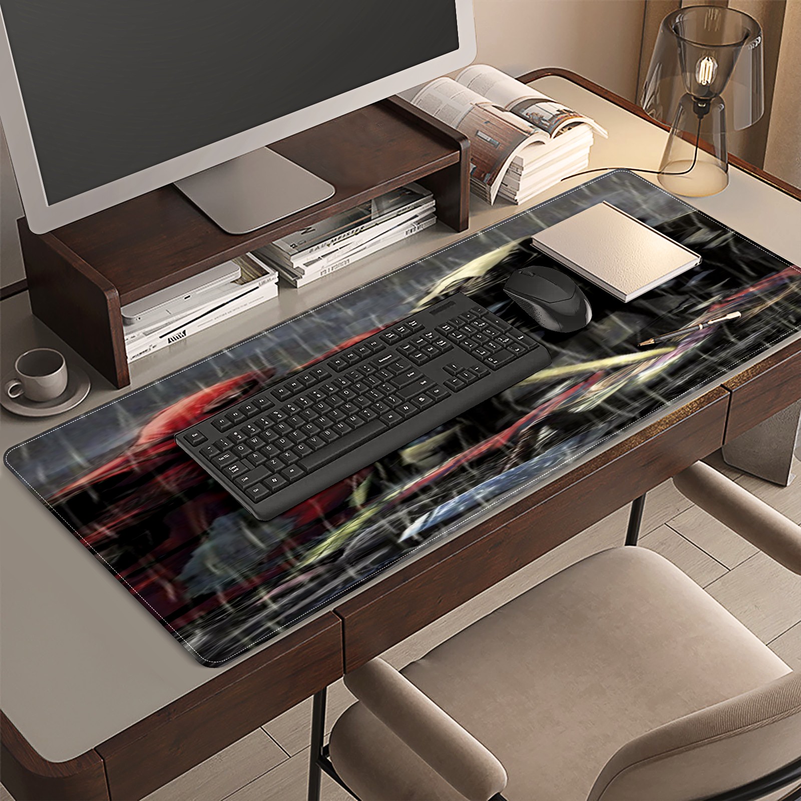 <p>This 35.4” × 15.7” extended desk mat offers ample space for your keyboard, mouse and essentials, working as a smooth work/writing pad while protecting your desktop from scratches.</p><p>With stylish artistic patterns, it adds personality to your home office, study or gaming setup. The high-density woven surface ensures precise, smooth mouse tracking for work and gaming.</p><p>Featuring an anti-slip natural rubber base for firm grip and stability, the mat is soft, elastic and odorless. Reinforced stitched edges prevent fraying and curling for long-lasting durability.</p>