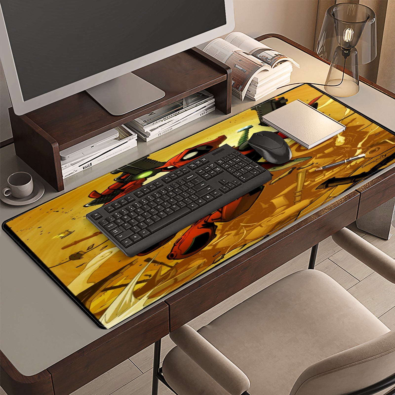 <p>This 35.4” × 15.7” extended desk mat offers ample space for your keyboard, mouse and essentials, working as a smooth work/writing pad while protecting your desktop from scratches.</p><p>With stylish artistic patterns, it adds personality to your home office, study or gaming setup. The high-density woven surface ensures precise, smooth mouse tracking for work and gaming.</p><p>Featuring an anti-slip natural rubber base for firm grip and stability, the mat is soft, elastic and odorless. Reinforced stitched edges prevent fraying and curling for long-lasting durability.</p>