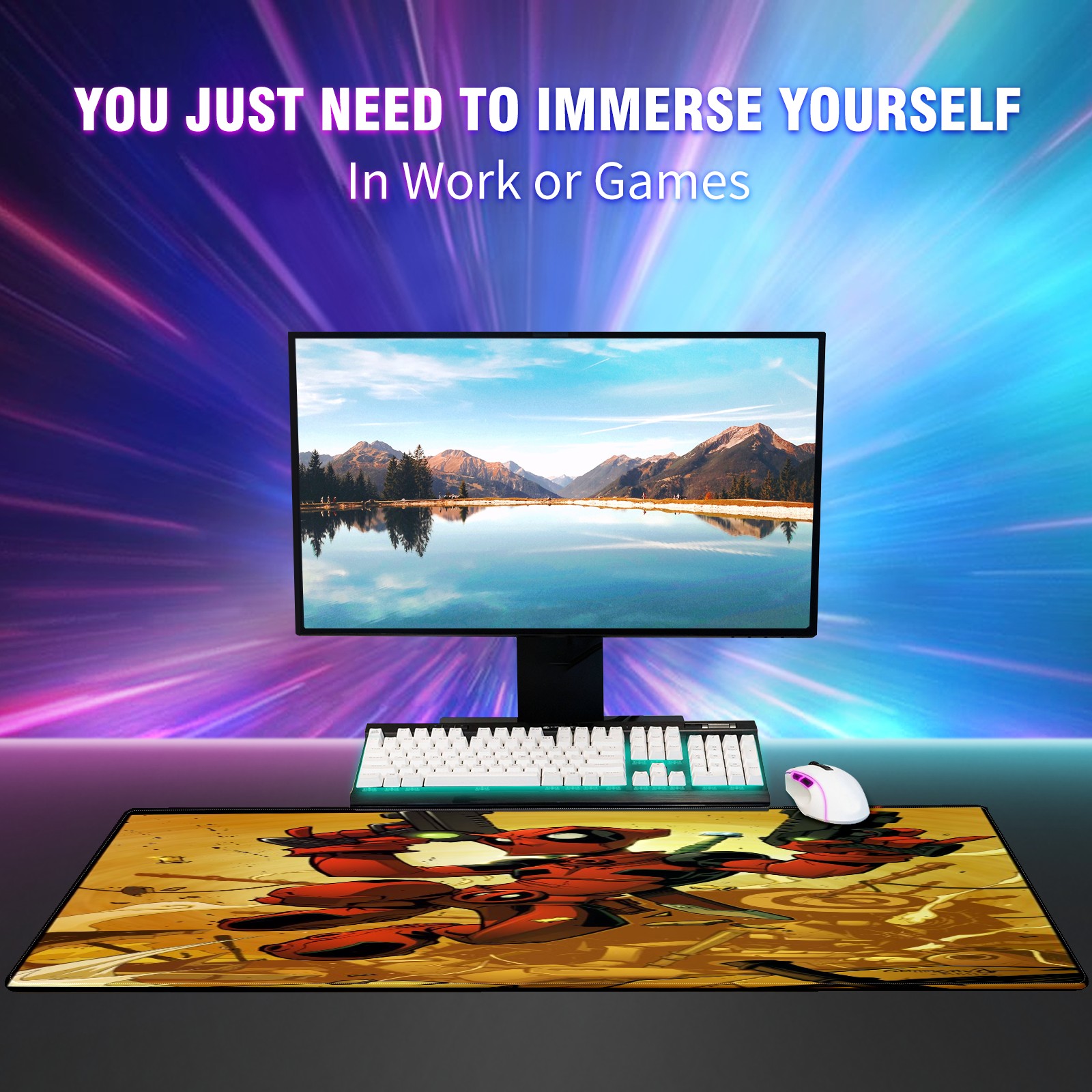 Large Mouse Pad for Desktop, Cute Desk Mat Pad Protector for Work & Gaming, Aesthetic Pretty Anti-Slip Laptop Blotter Cover for Office School Home Supplies, 漫威 (459) , 35.4inx15.7in