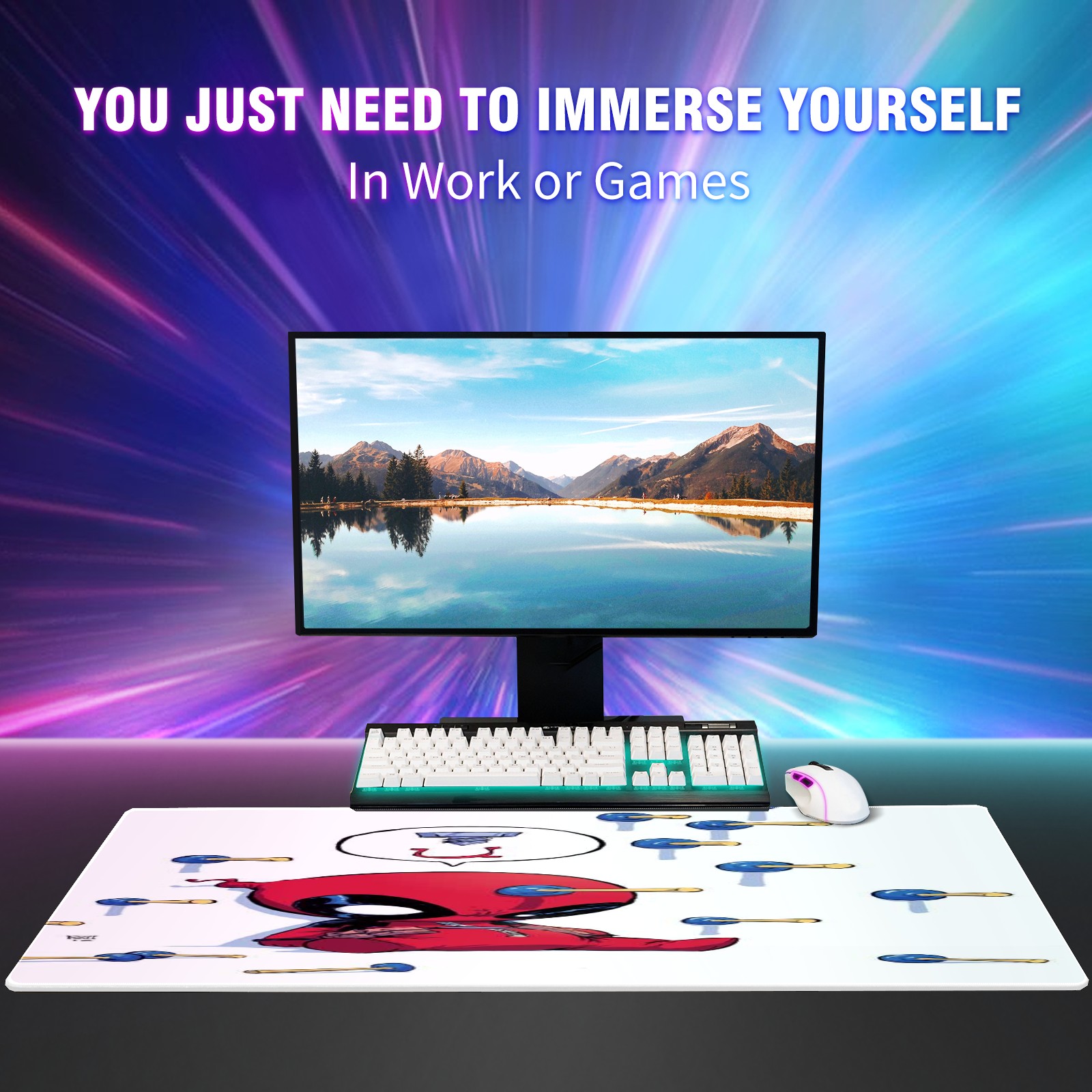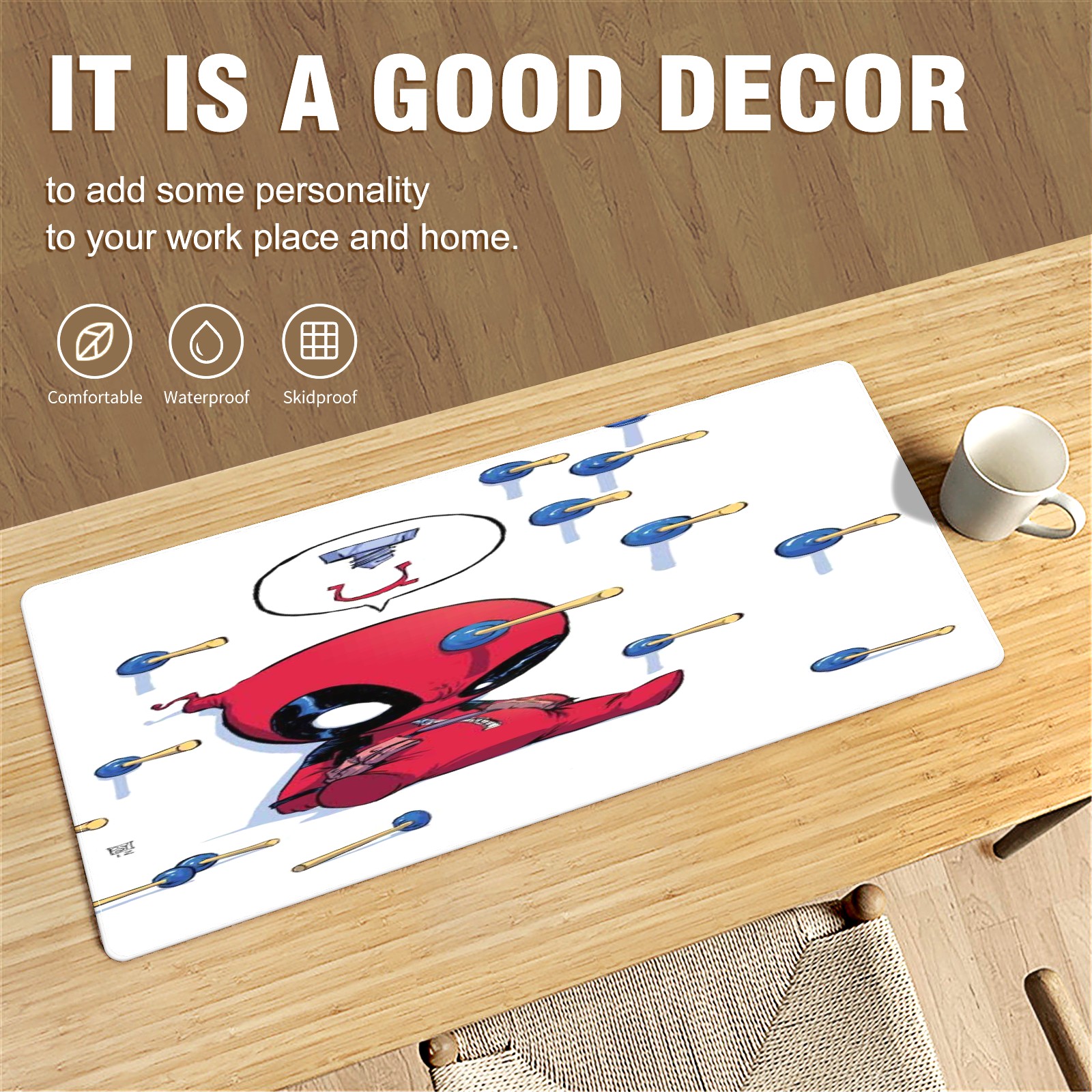 Large Mouse Pad for Desktop, Cute Desk Mat Pad Protector for Work & Gaming, Aesthetic Pretty Anti-Slip Laptop Blotter Cover for Office School Home Supplies, 漫威 (434) , 35.4inx15.7in